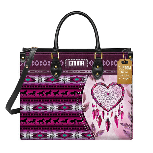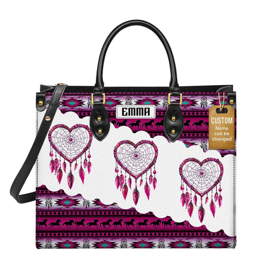 Personalized Leather Handbag for Women - Design Patterns Boho Pink Dreamcatcher