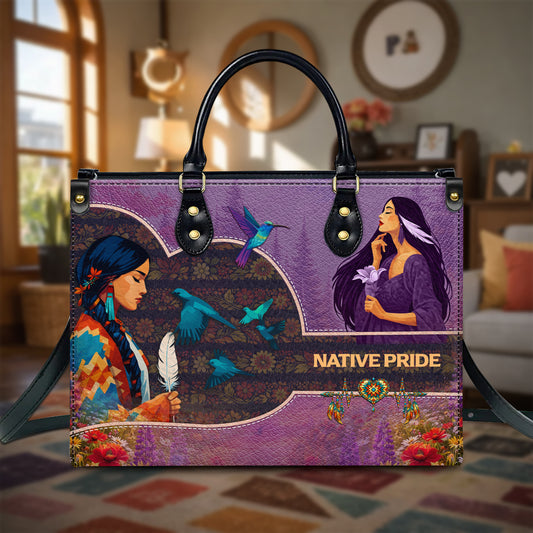 Native Pride Leather Handbag – Native American Art Tote Bag | Indigenous Heritage Gift for Women