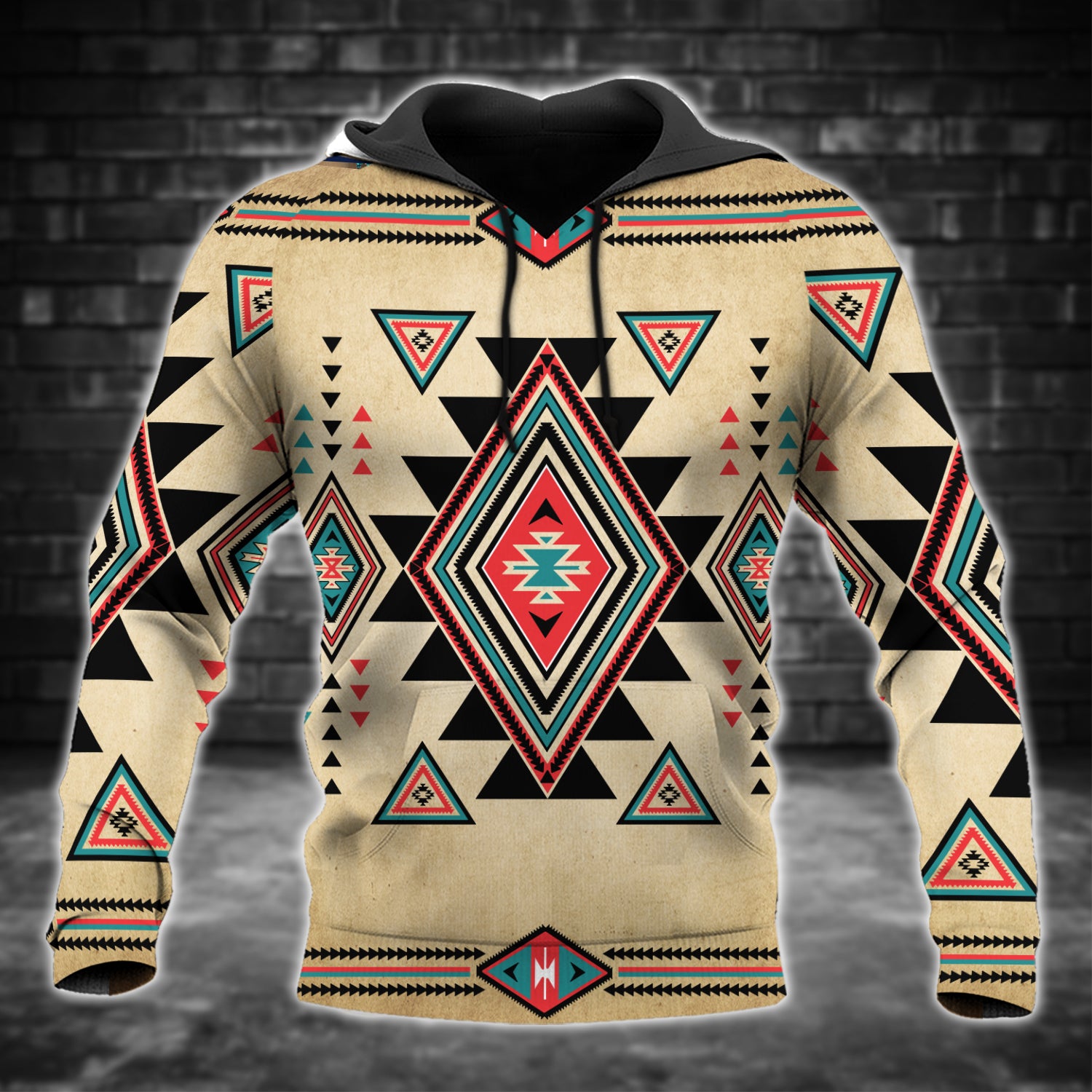 Native Geometric Print Hoodie – Desert Tones & Tribal Vibes