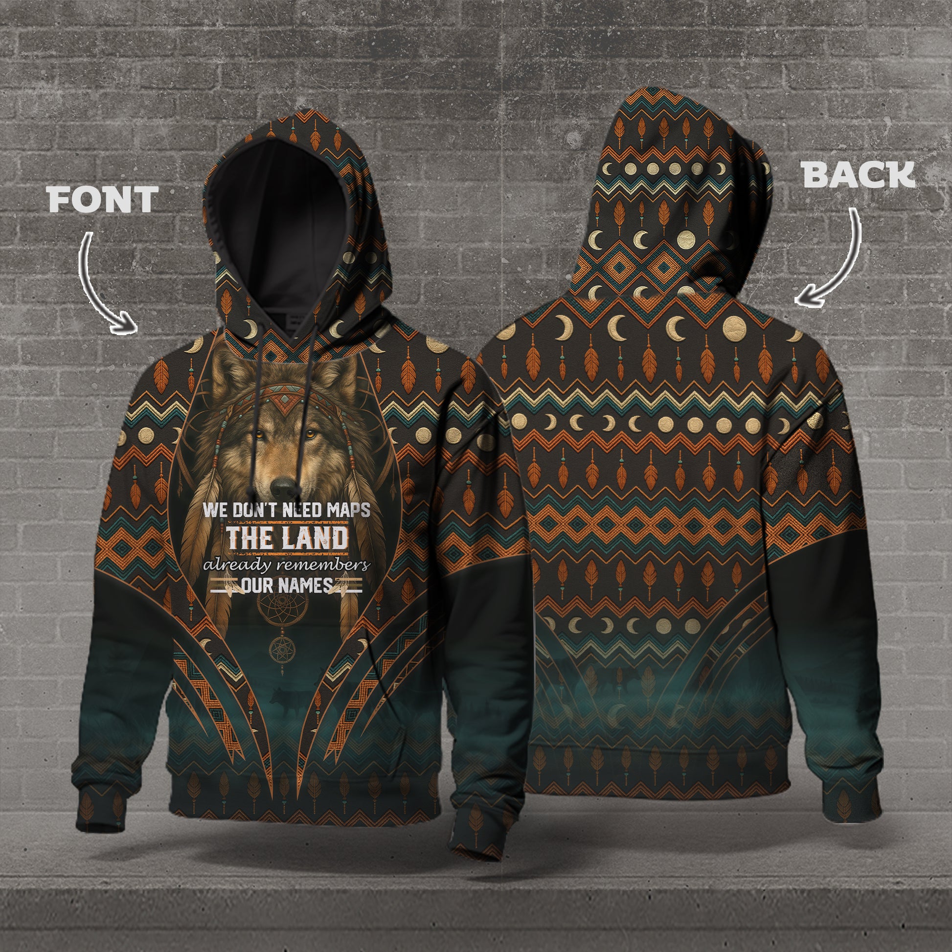 Spirit of the Wolf – Tribal Geometric Design in Dark Green and Copper Tones