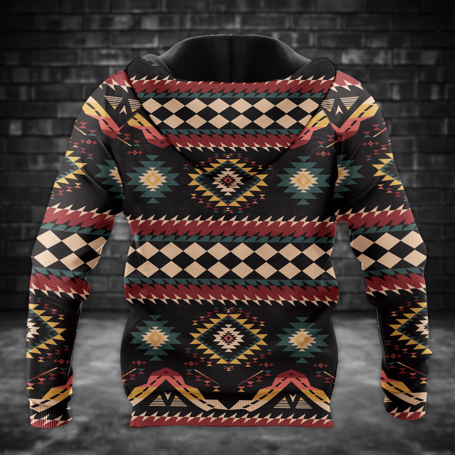 Tribal Feather Hoodie – Bold Red & Geometric Patterns