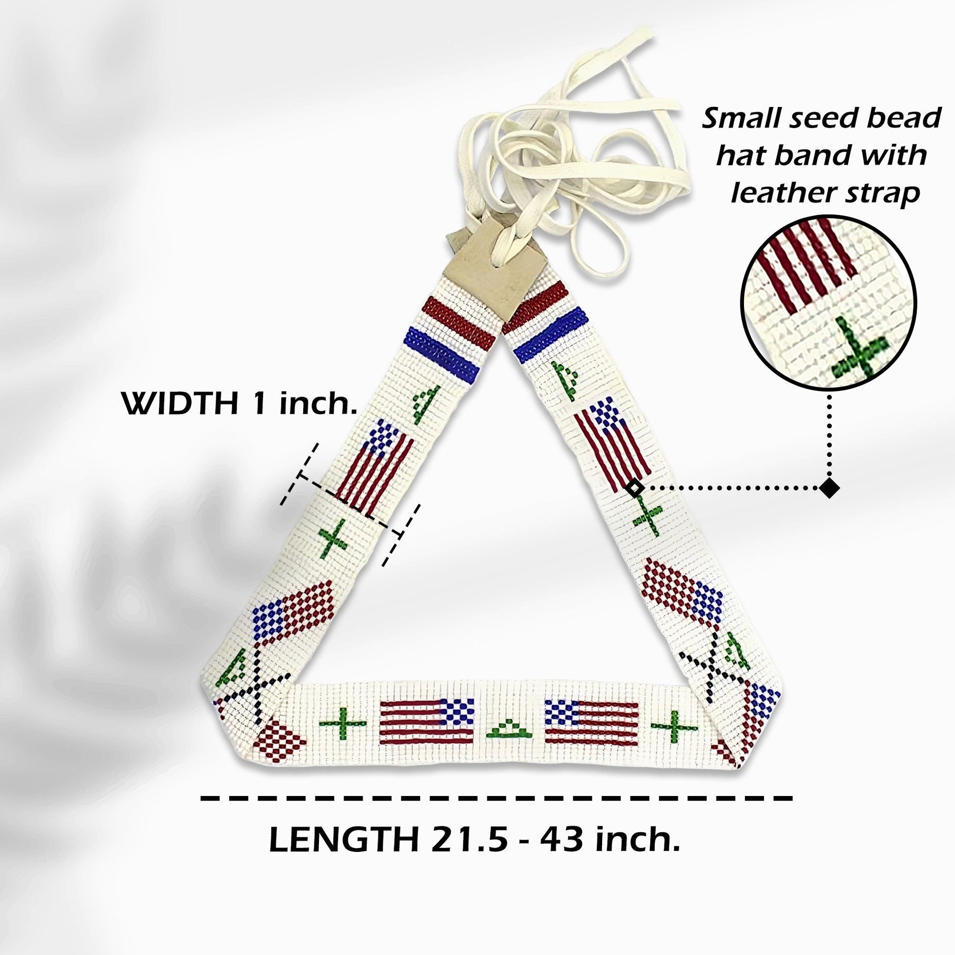 The intricate beadwork captures the essence of Native American symbolism, telling stories of unity, spirituality, and connection to the land. Each bead is thoughtfully threaded, allowing the patterns to come alive with a vibrant fusion of colors and intricate details. This Beaded Hatband isn't just an accessory; it's a representation of the legacy passed down through generations.