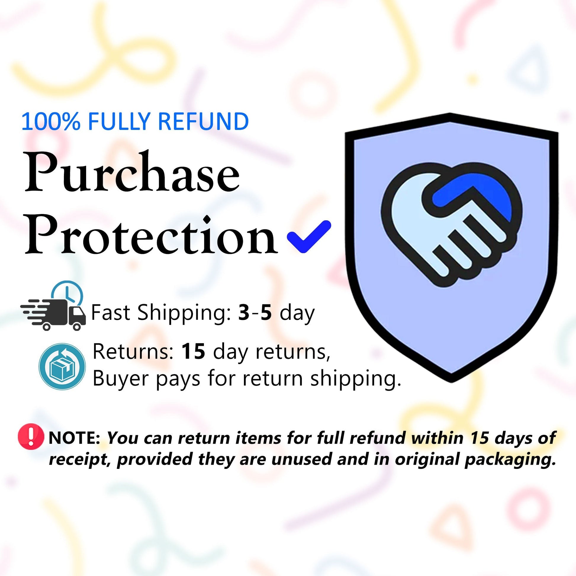 - For Handmade items: Issues must be reported within 7 days of receipt.