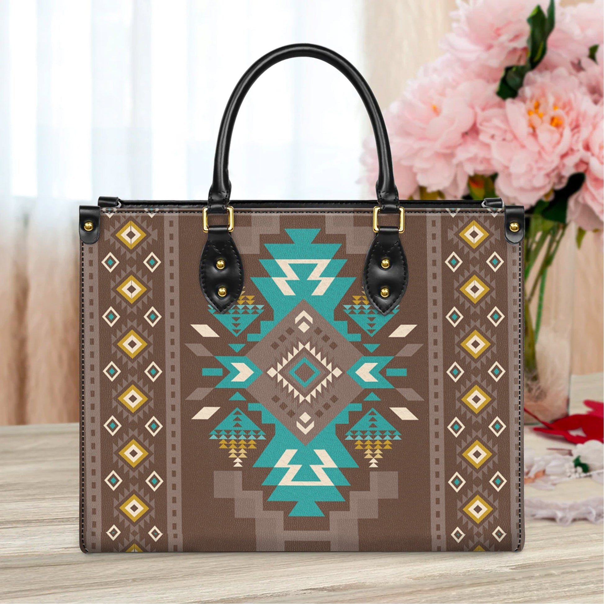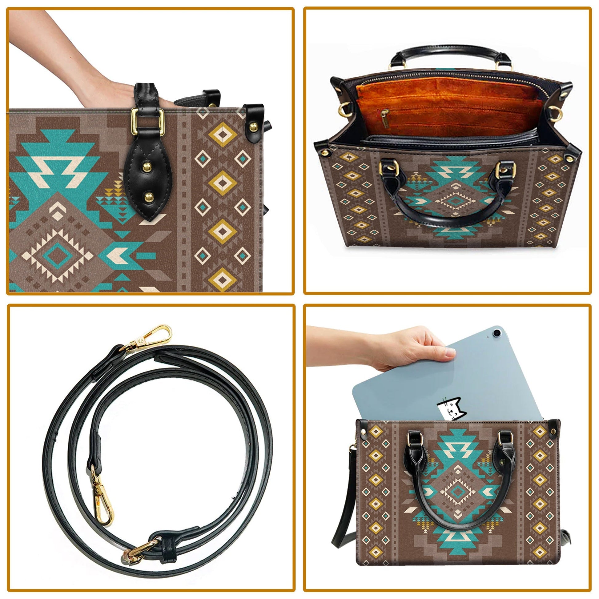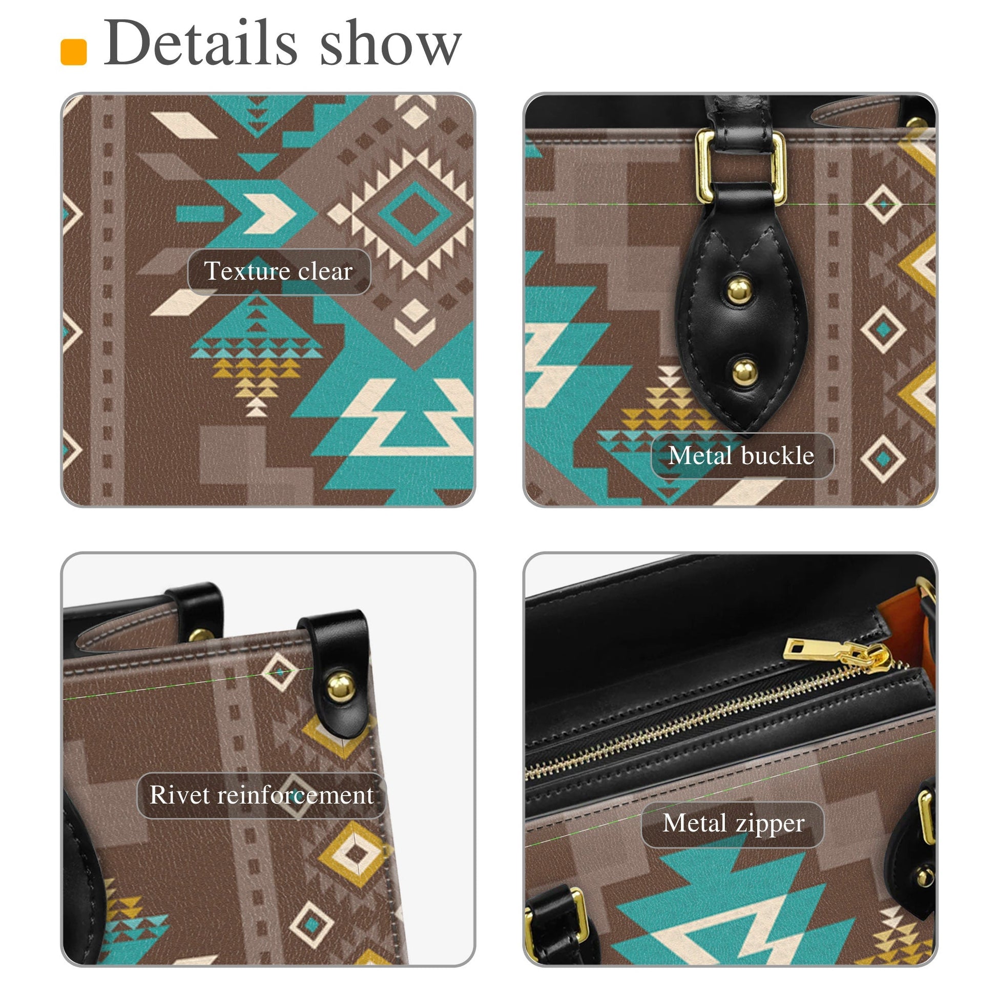 Blue Pattern Brown Bathroom Leather Handbag WCS017