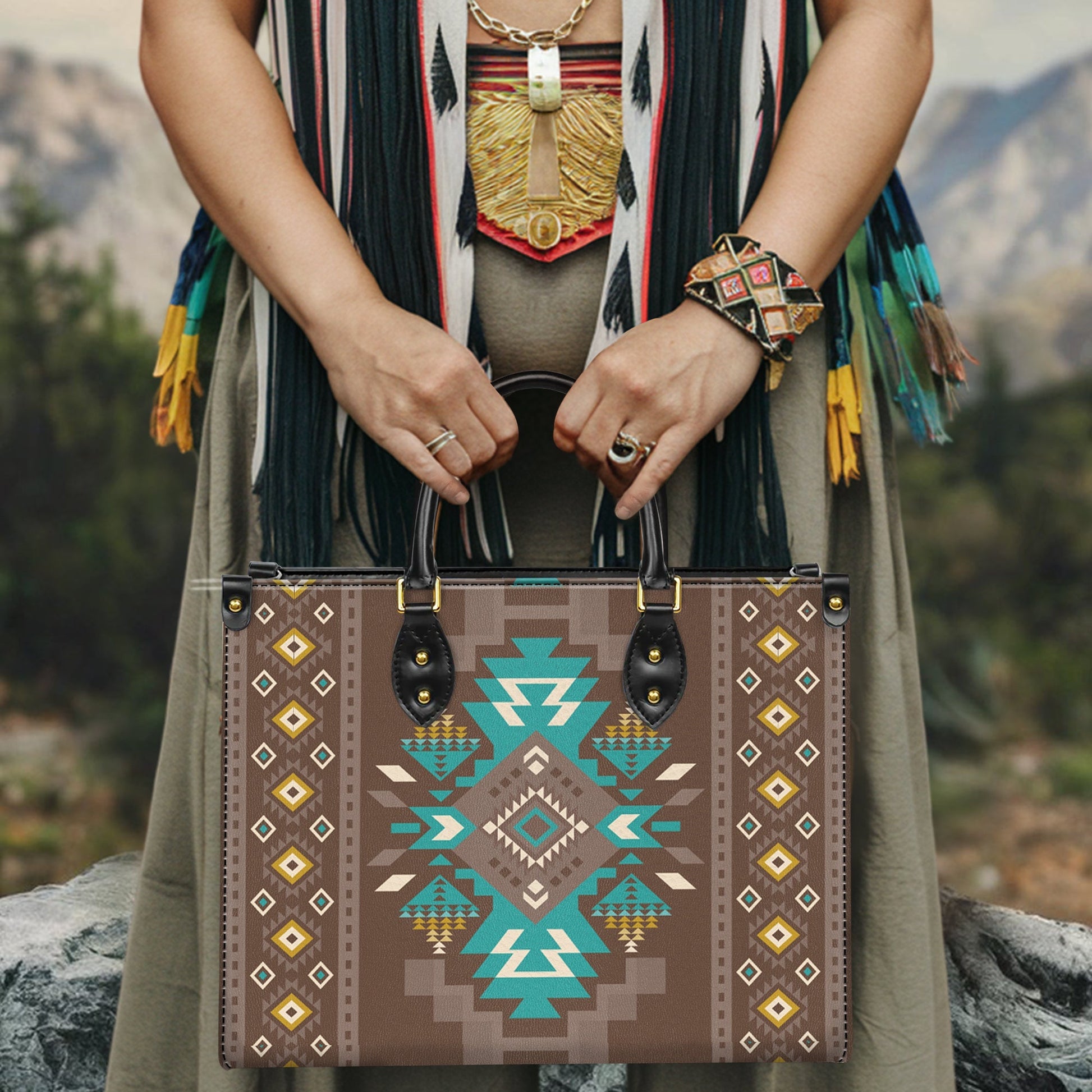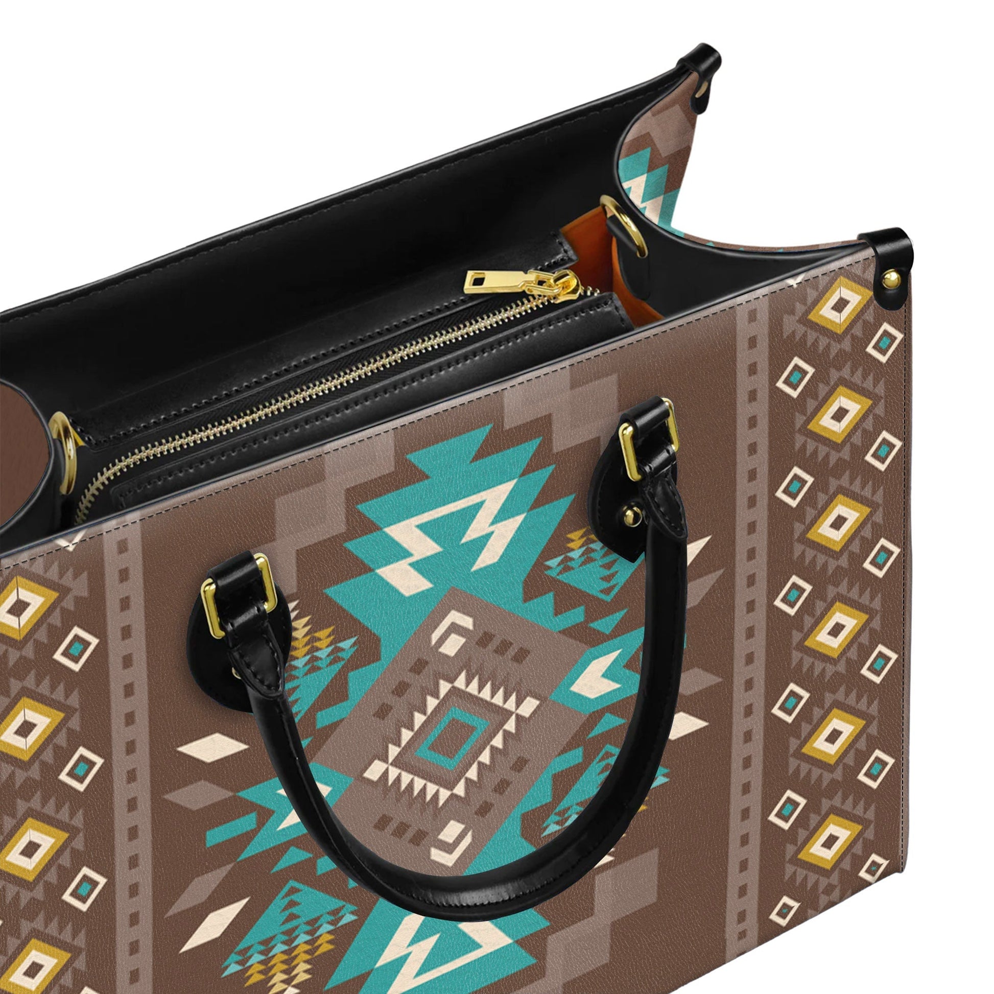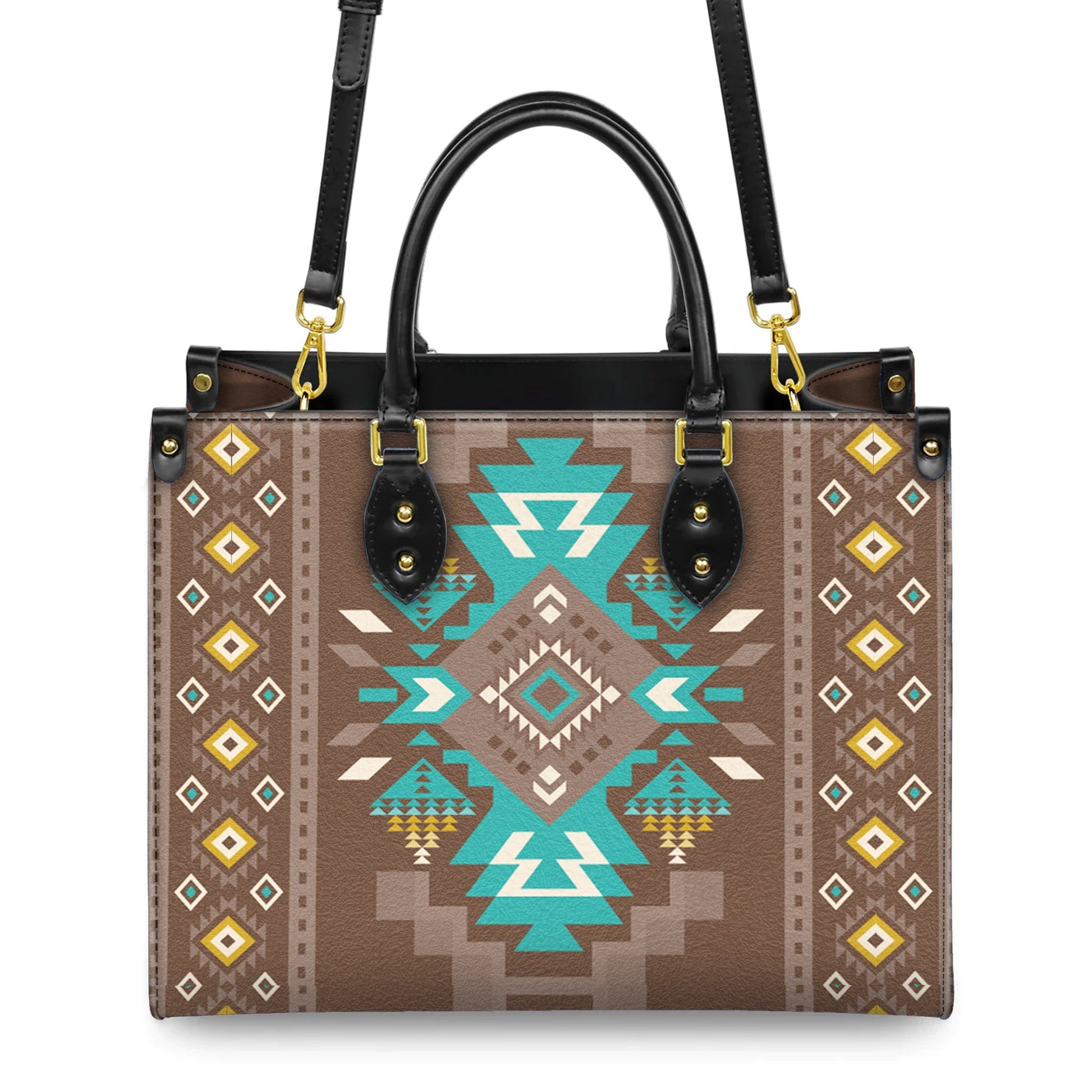 Blue Pattern Brown Bathroom Leather Handbag WCS017