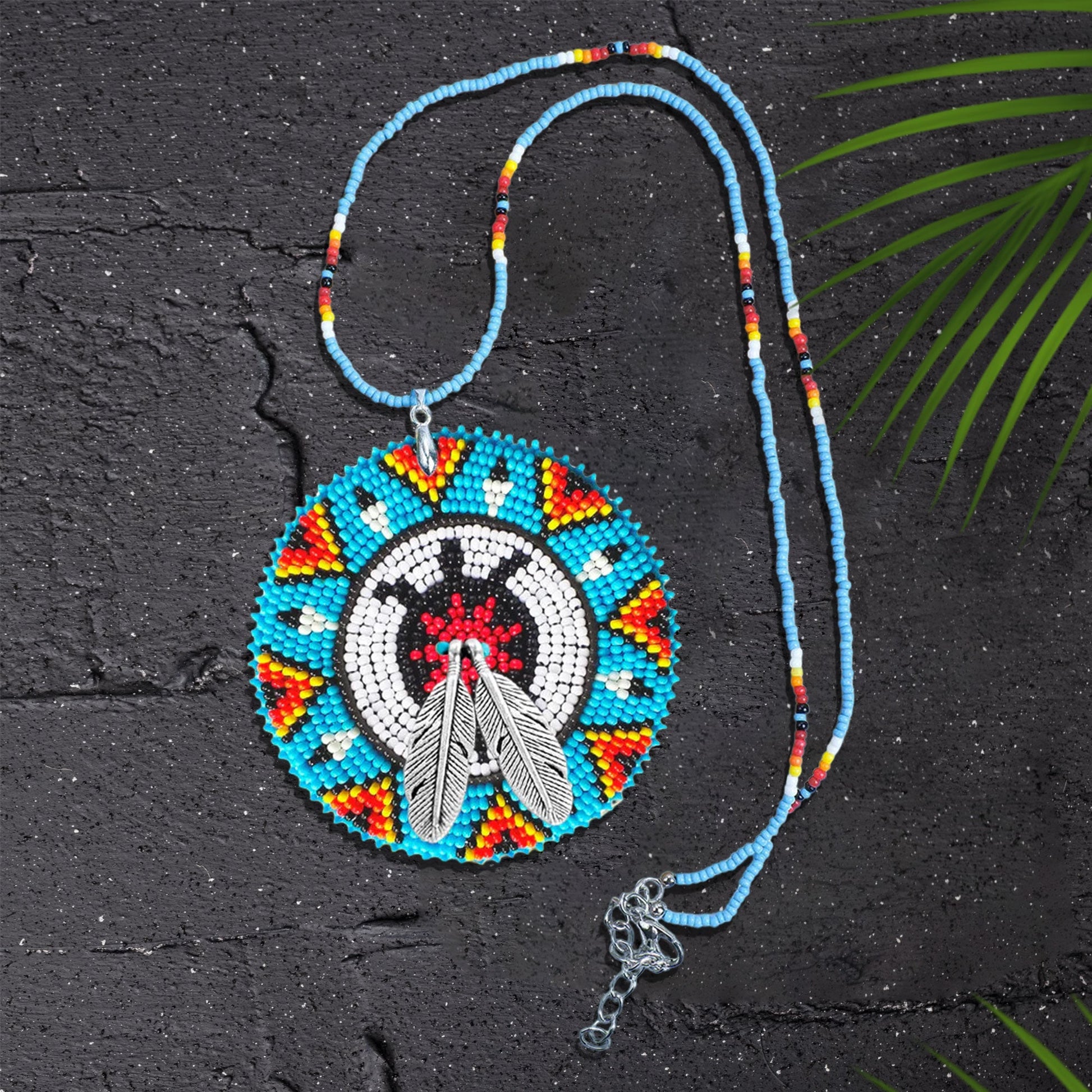 SALE 30% OFF - Blue Turtle Pattern Handmade Beaded Patch Necklace Pendant