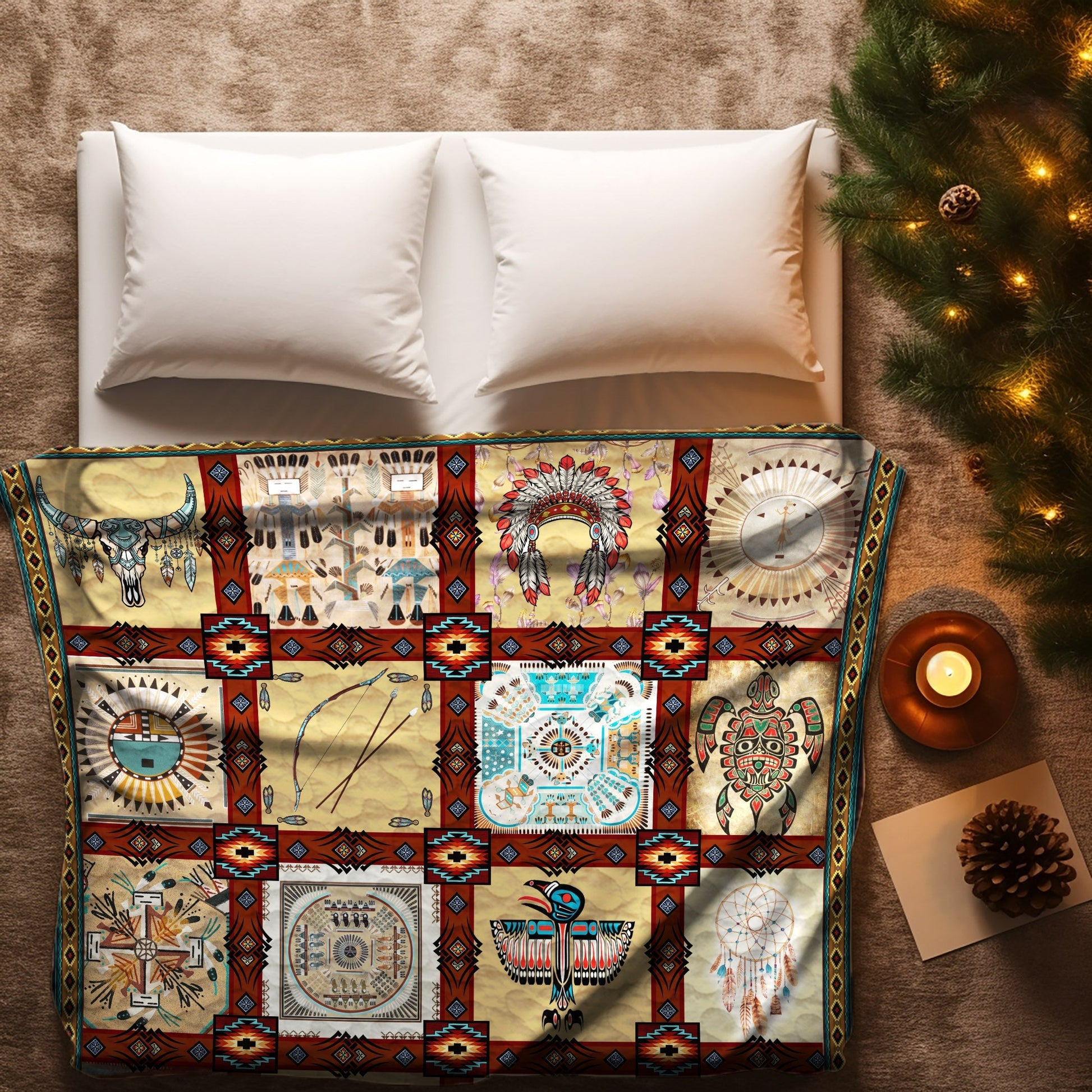 Native American Style Indigenous Cultural Symbols Soft And Warm Fleece Blanket