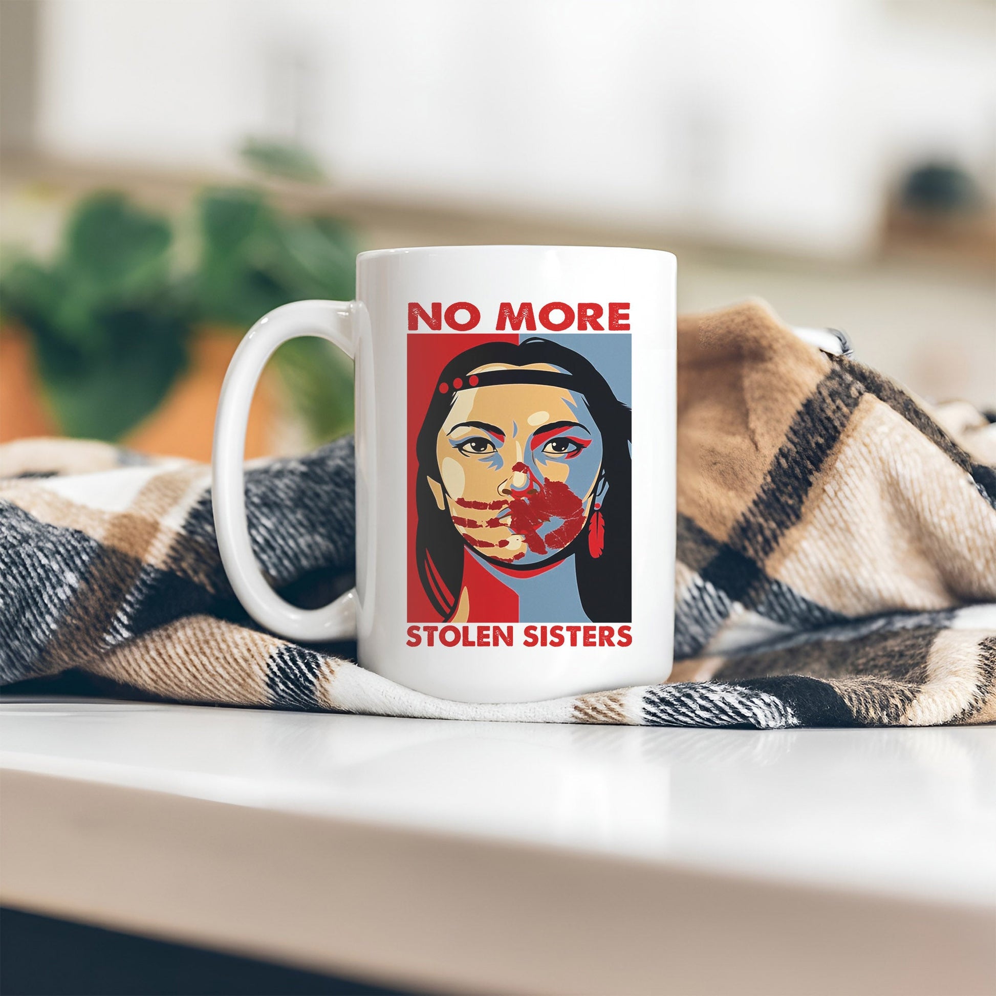 MMIW No More Stolen Sisters Red Hand Indigenous Owned Ceramic Mug