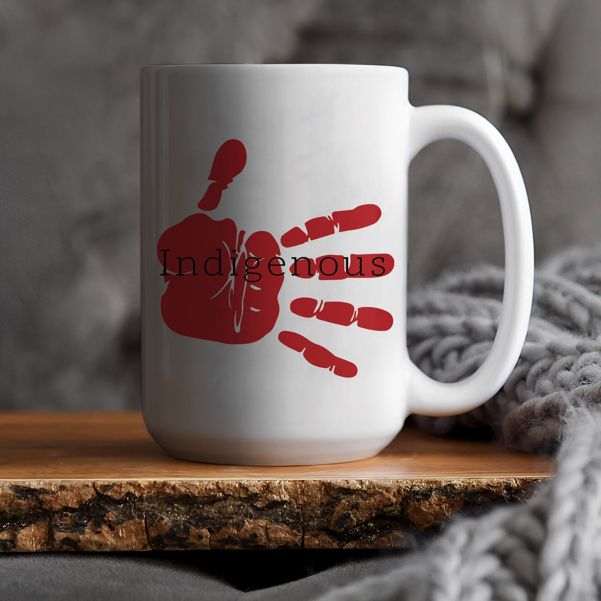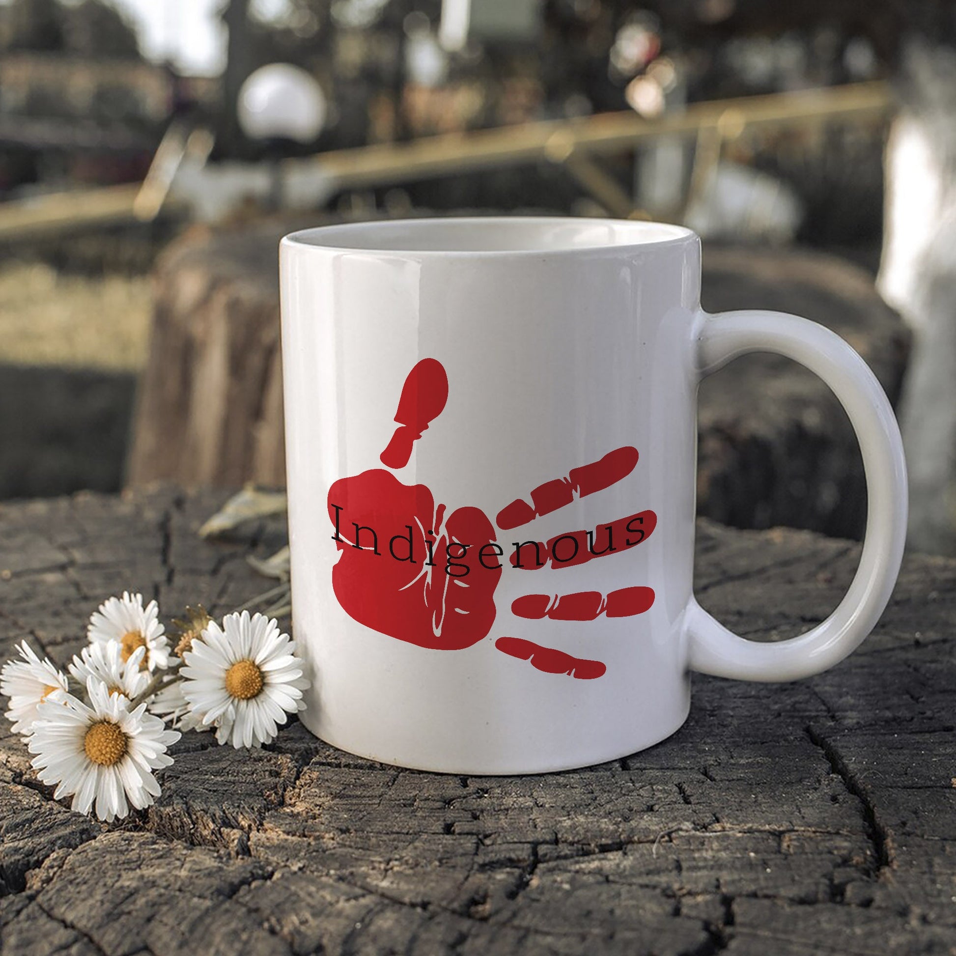 MMIW Indigenous Woman Red Hand White Black Ceramic Coffee Mug