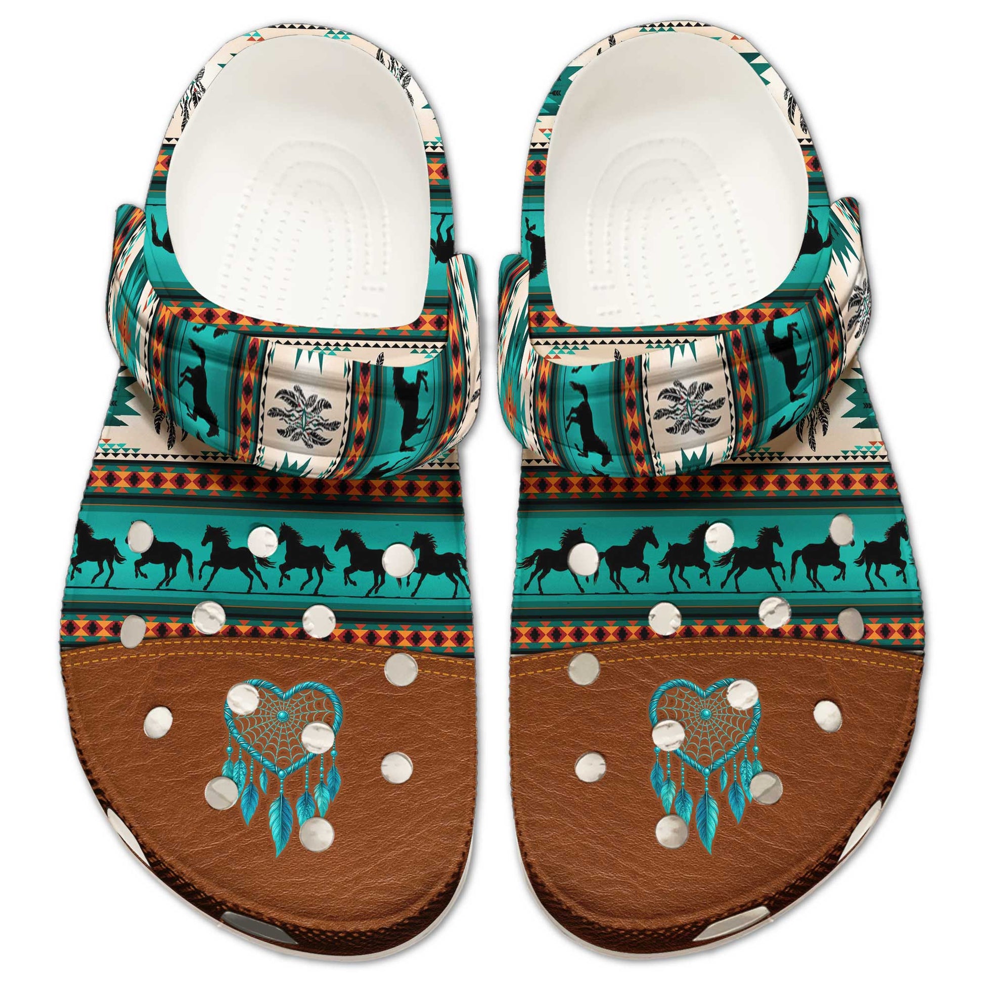 Clogs – Tribal Green, Galloping Horses & Dreamcatcher Motif