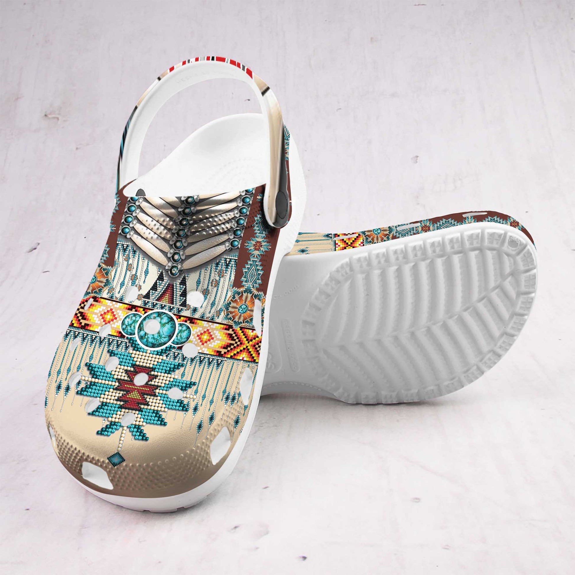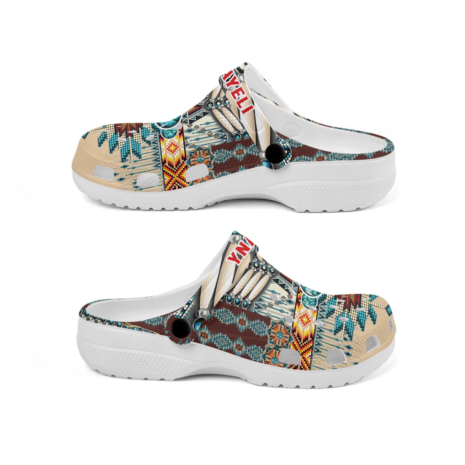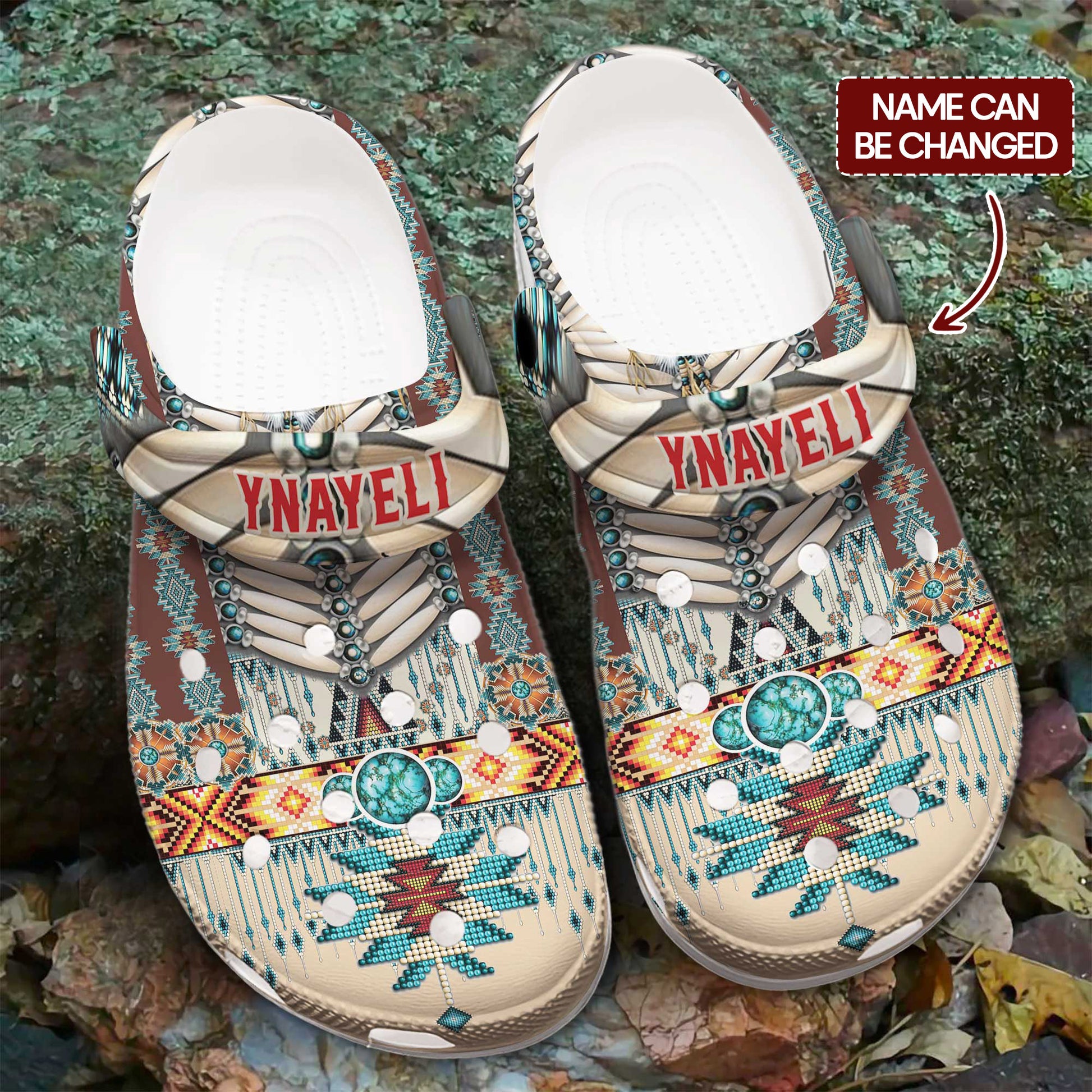 Custom Name Clogs – Rustic Boho Style with Turquoise Stone & Traditional Patterns