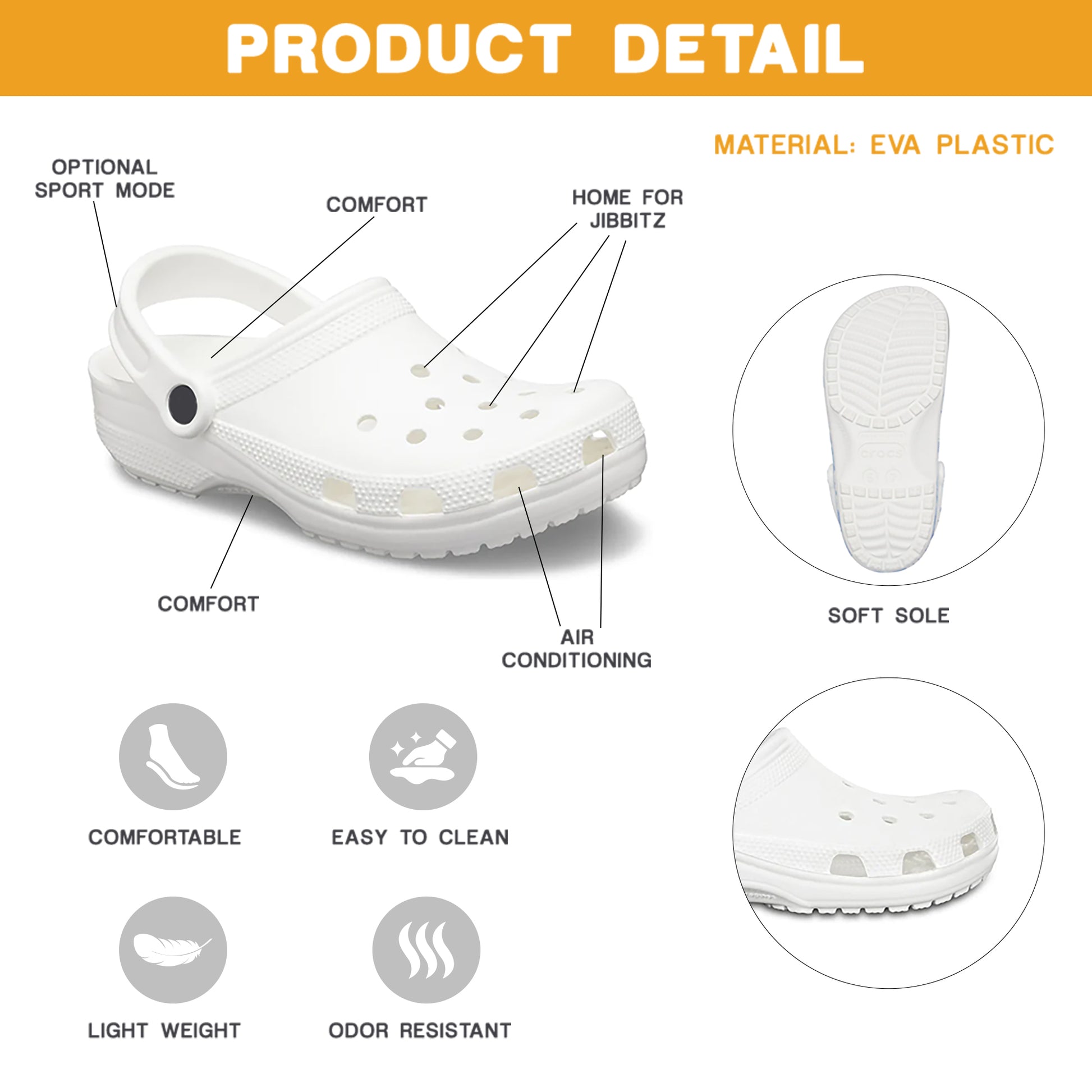 - Fully molded and easy to clean shoes foam construction