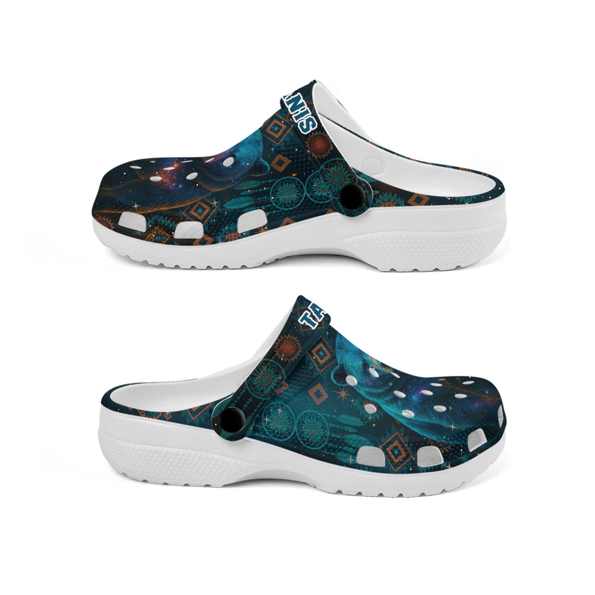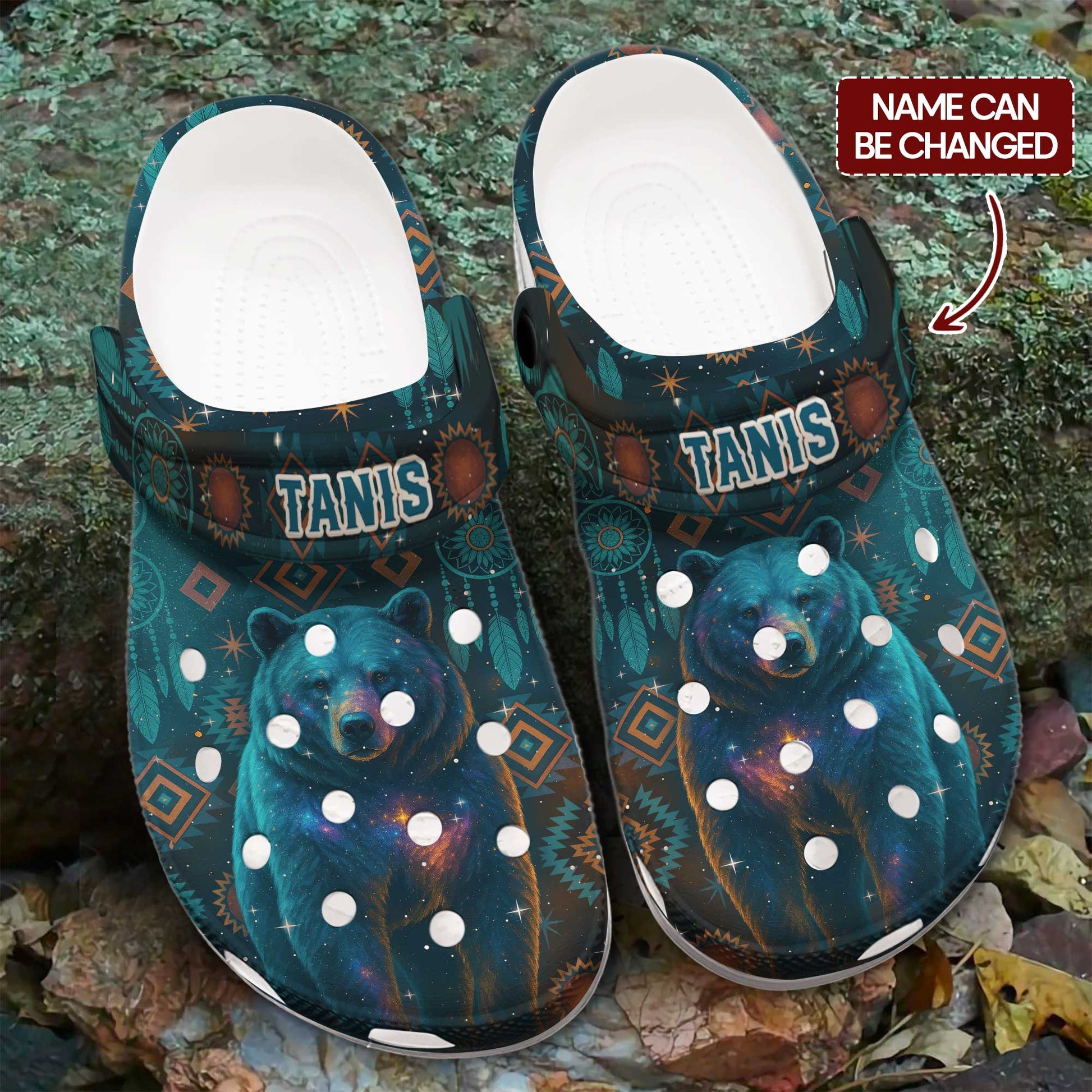 Custom Name Bear Spirit Clogs – Native Tribal Galaxy Design & Meaningful Gift for Family