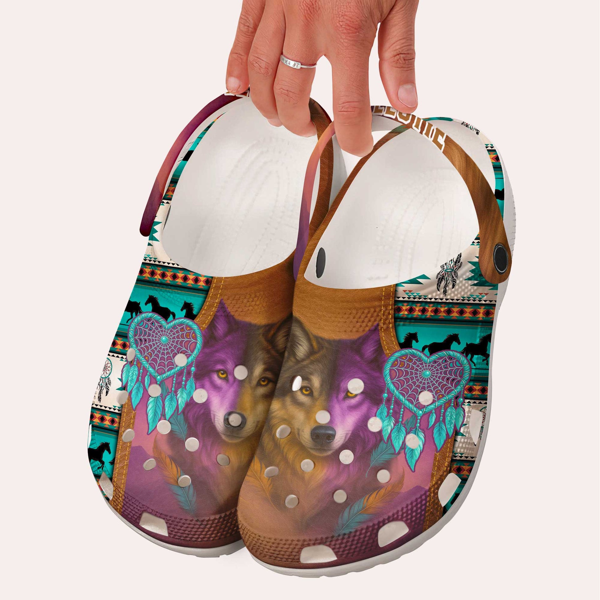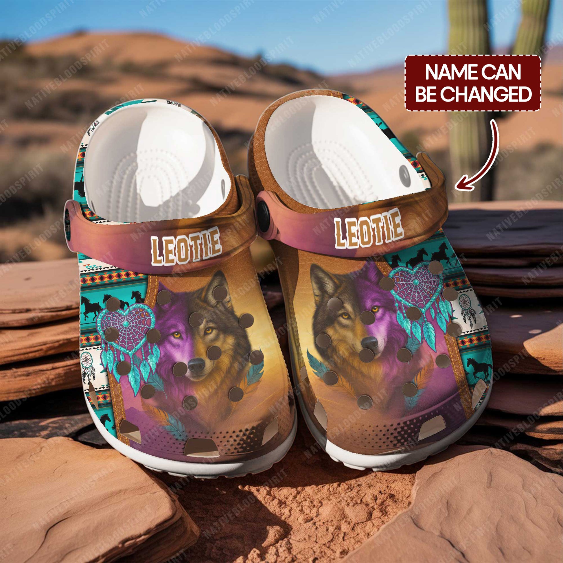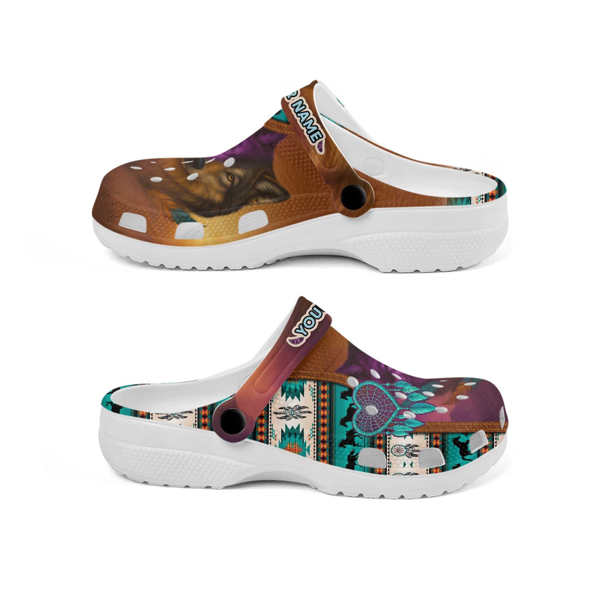 Custom Name Wolf & Dreamcatcher Clogs – A Heartfelt Family Gift with Soul and Spirit