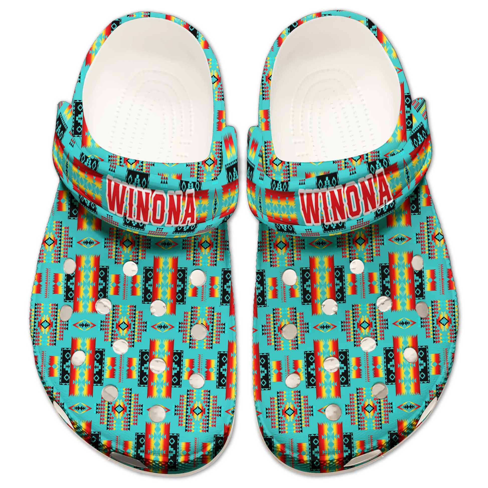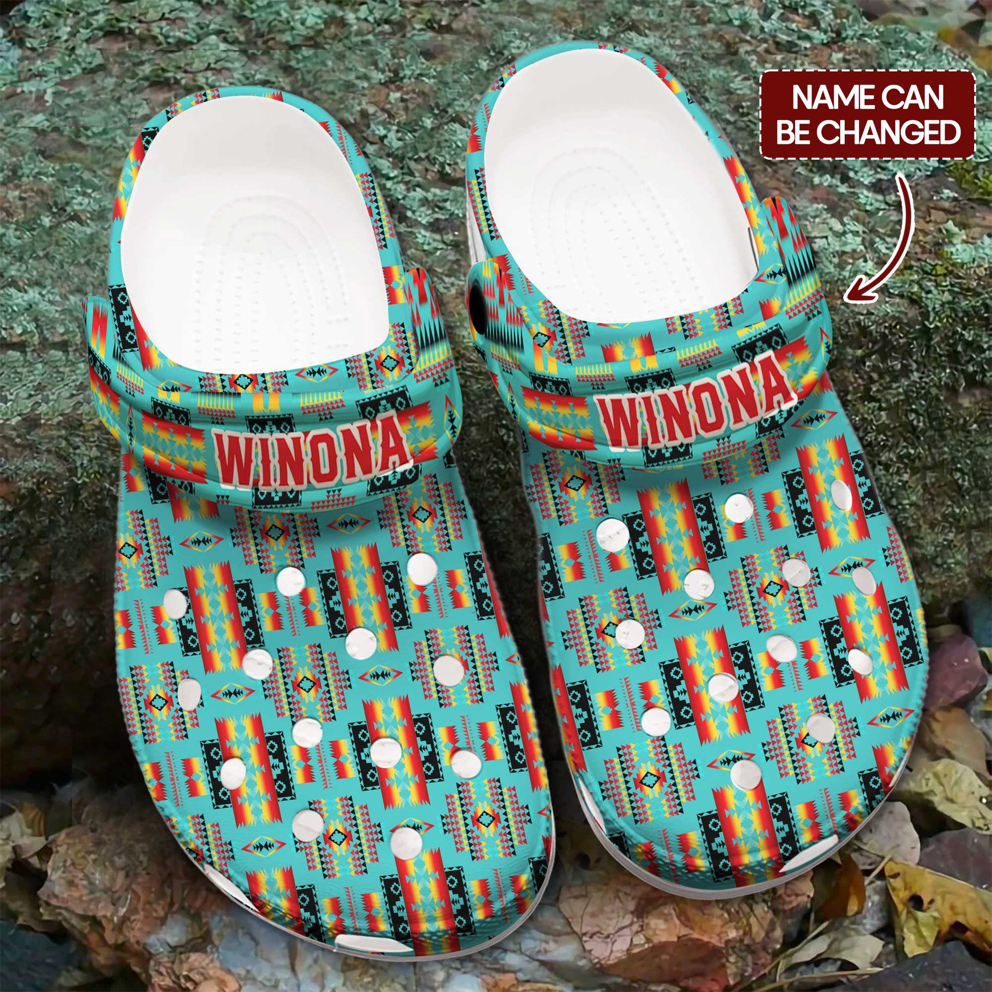 Custom Name Turquoise Tribal Clogs – Vibrant Native-Inspired Gift for the Whole Family