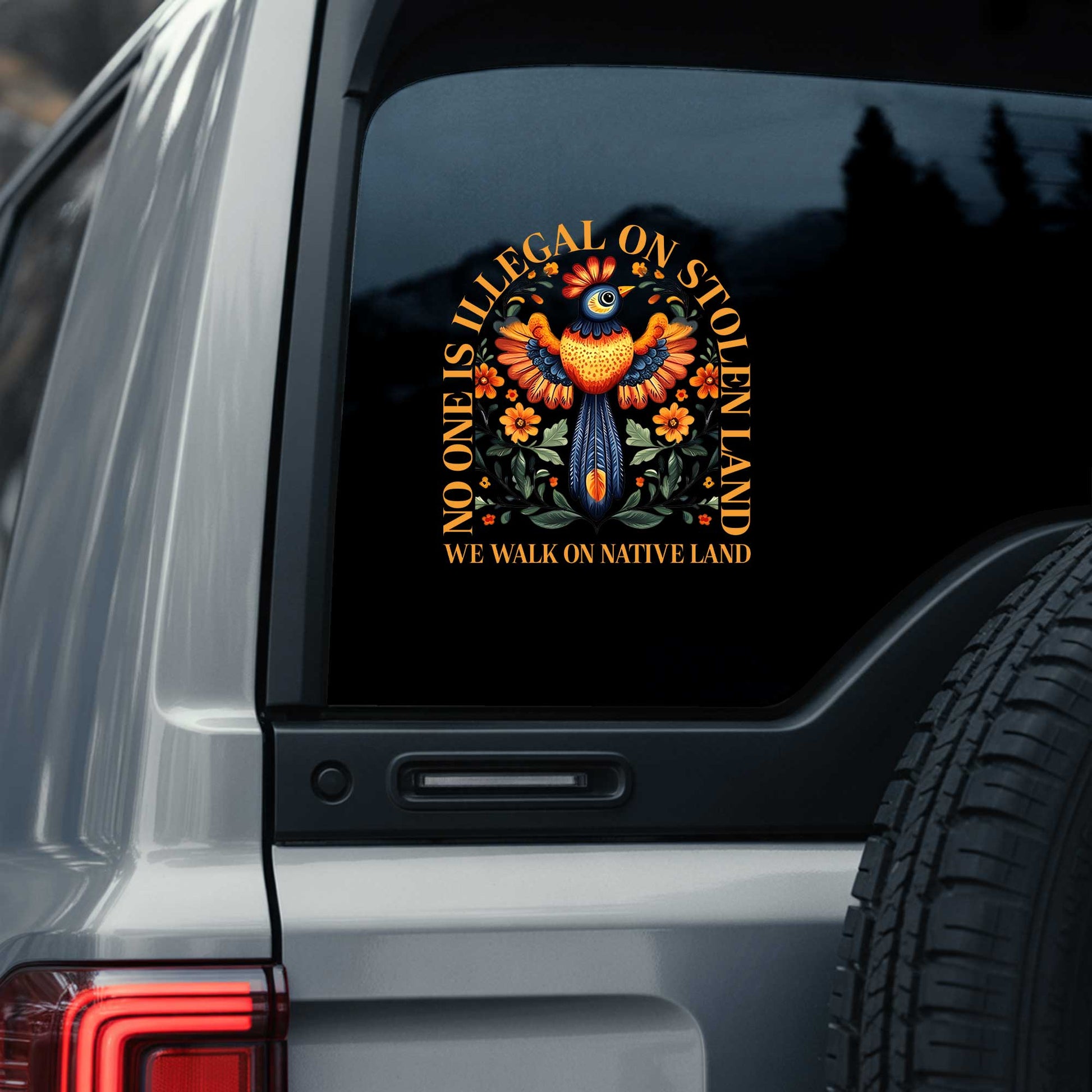 NO ONE IS ILLEGAL ON STOLEN LAND. WE WALK ON NATIVE LAND DECAL Style 2
