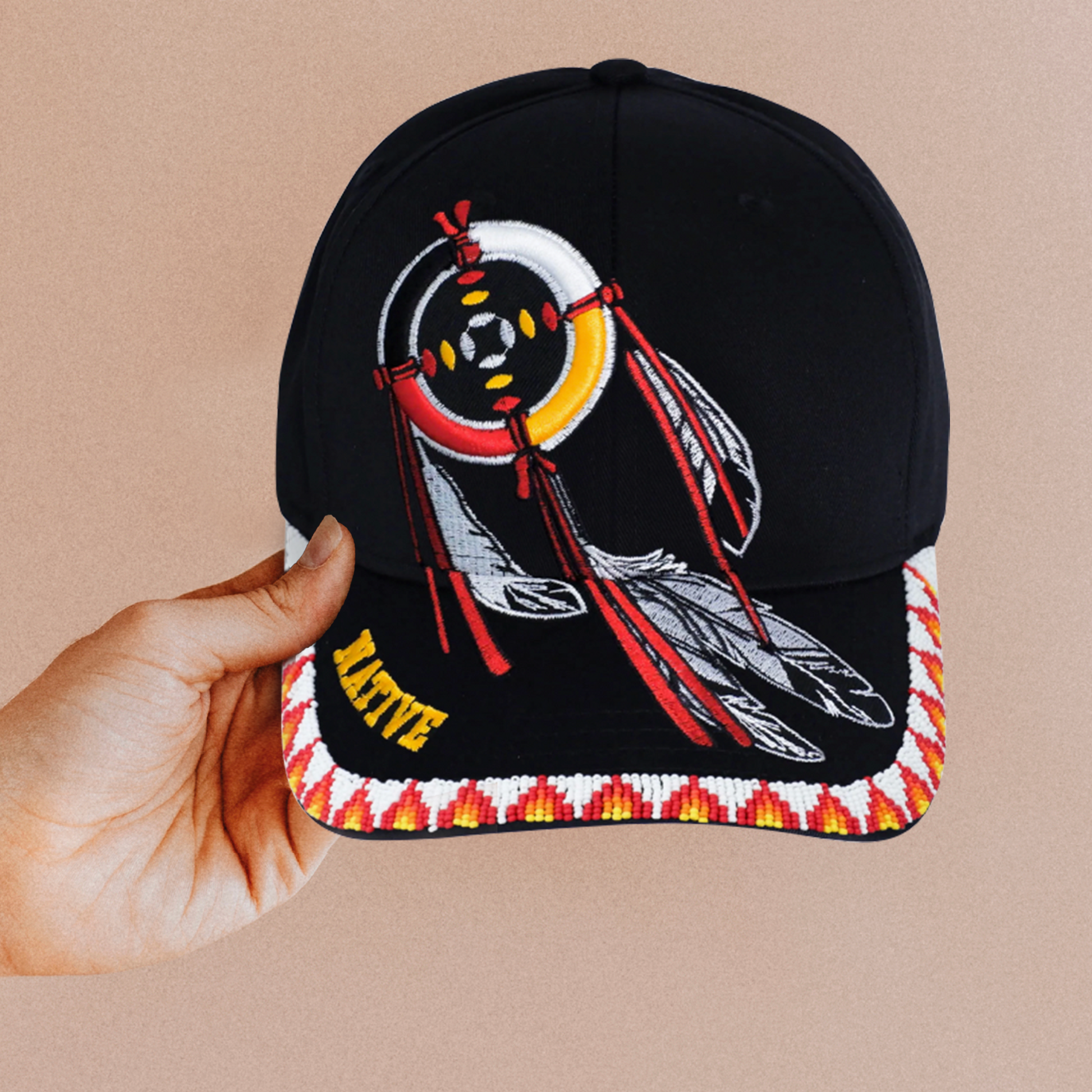 Wearing this Embroidered and Beaded Trim Hat is an homage to the artistry of Indigenous culture and a nod to modern style. Whether worn casually or on special occasions, this hat exemplifies the seamless integration of heritage and contemporary fashion.