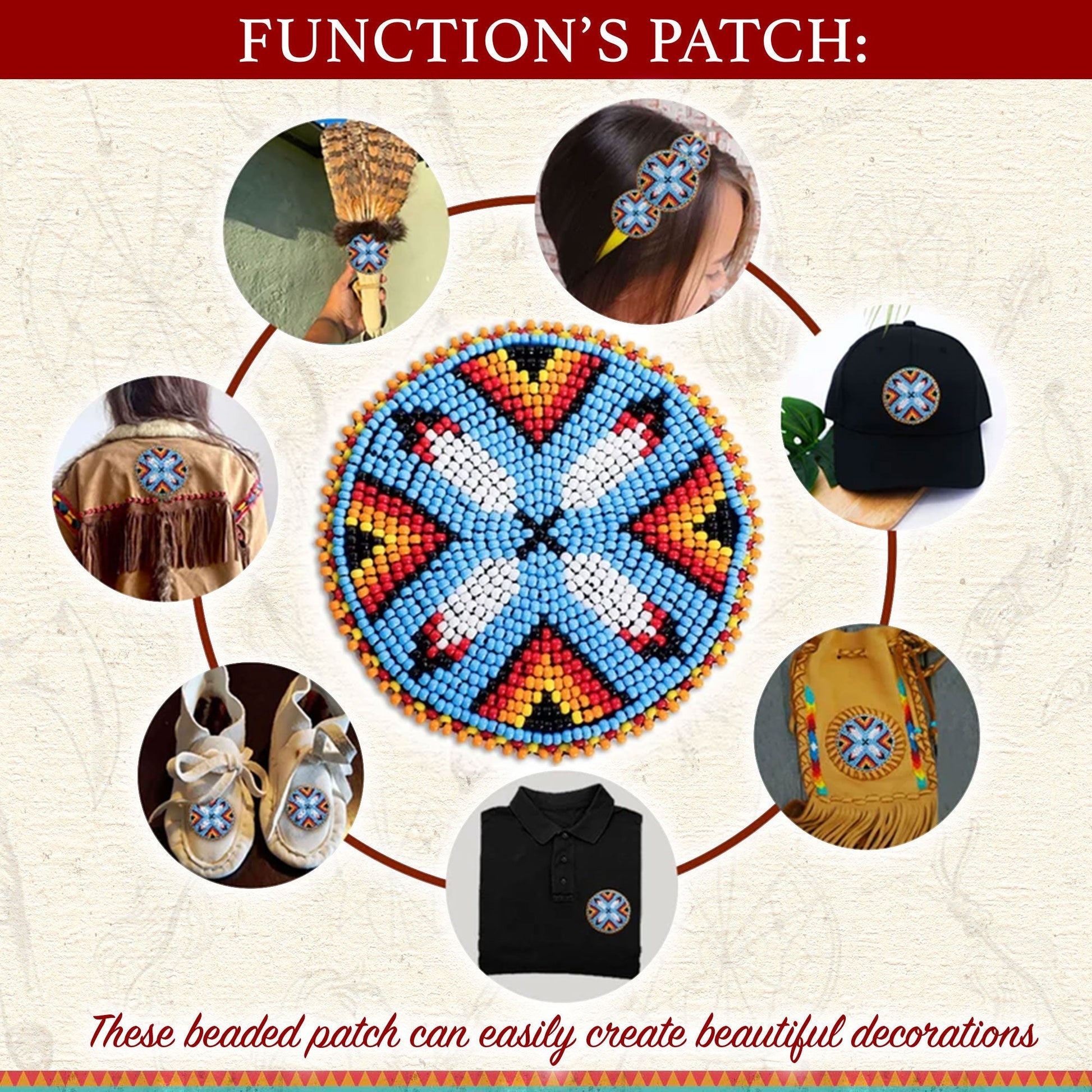 This beaded patch is more than an accessory, it's a story woven with care and respect for tradition. As you hold it in your hand, you hold a piece of history and a glimpse into the artistic expression of a resilient culture. Whether displayed proudly on regalia, clothing, or sacred items, this beaded patch serves as a reminder of the beauty and depth of Native American culture.