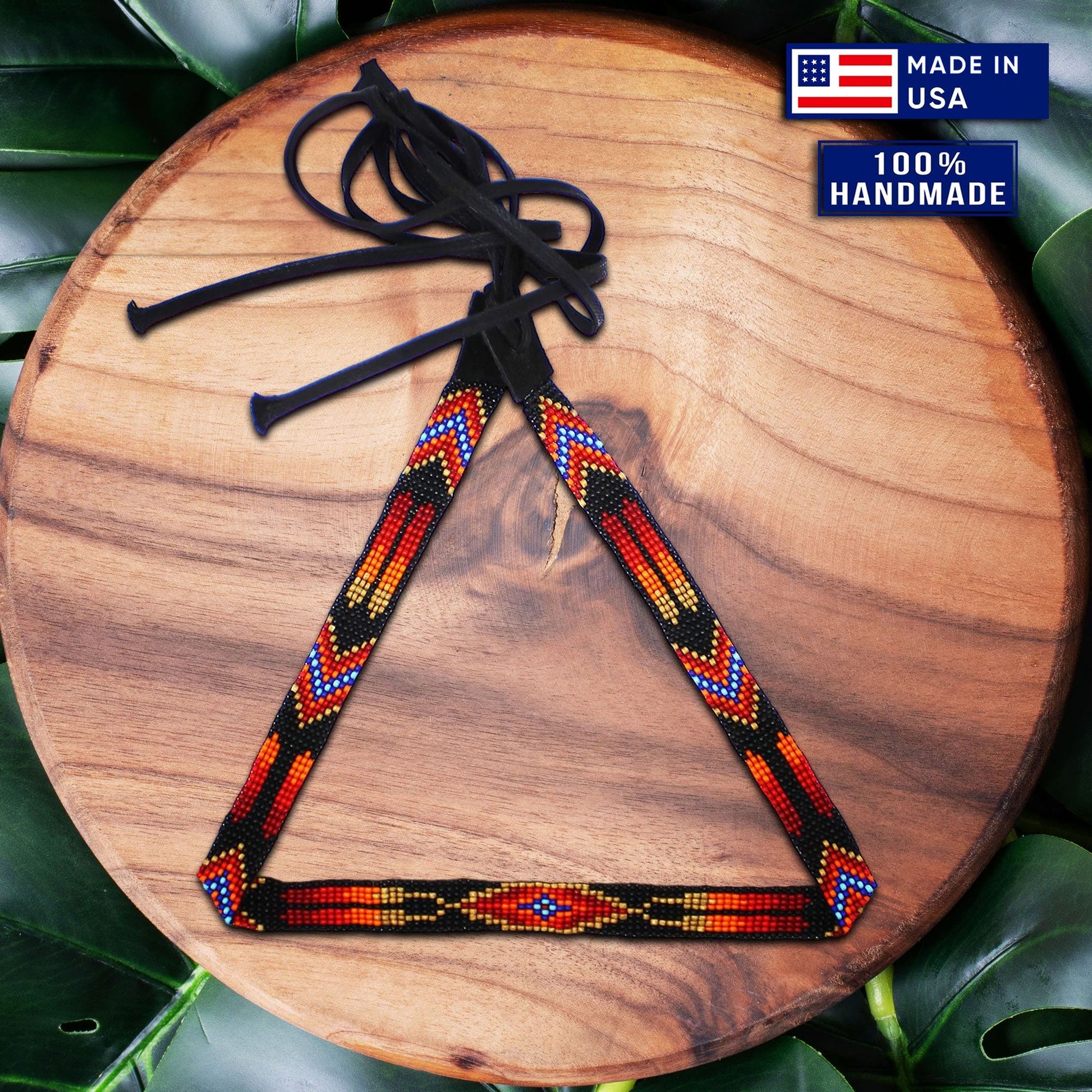 The intricate beadwork captures the essence of Native American symbolism, telling stories of unity, spirituality, and connection to the land. Each bead is thoughtfully threaded, allowing the patterns to come alive with a vibrant fusion of colors and intricate details. This Beaded Hatband isn't just an accessory; it's a representation of the legacy passed down through generations.