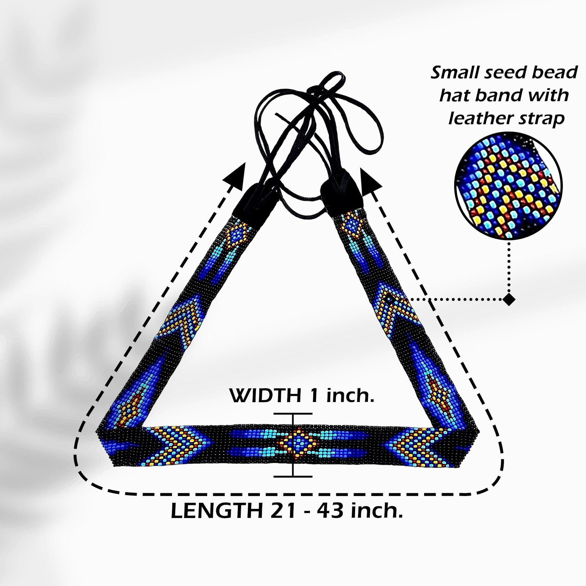 The intricate beadwork captures the essence of Native American symbolism, telling stories of unity, spirituality, and connection to the land. Each bead is thoughtfully threaded, allowing the patterns to come alive with a vibrant fusion of colors and intricate details. This Beaded Hatband isn't just an accessory; it's a representation of the legacy passed down through generations.