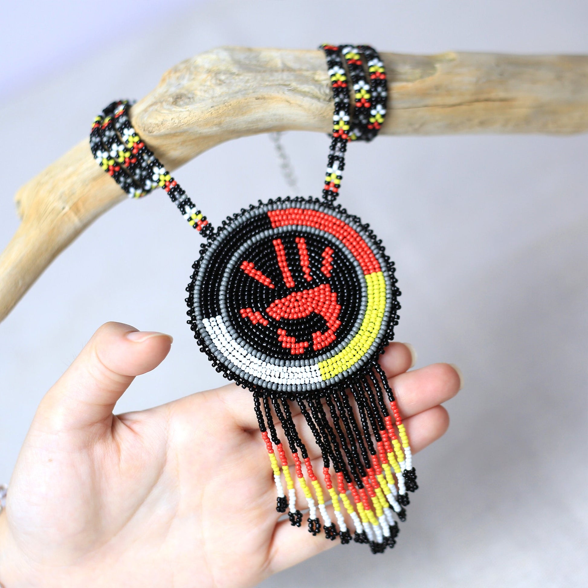 SALE 50% OFF - MMIW Handprint Beaded Choker Necklace Premium Native American Style