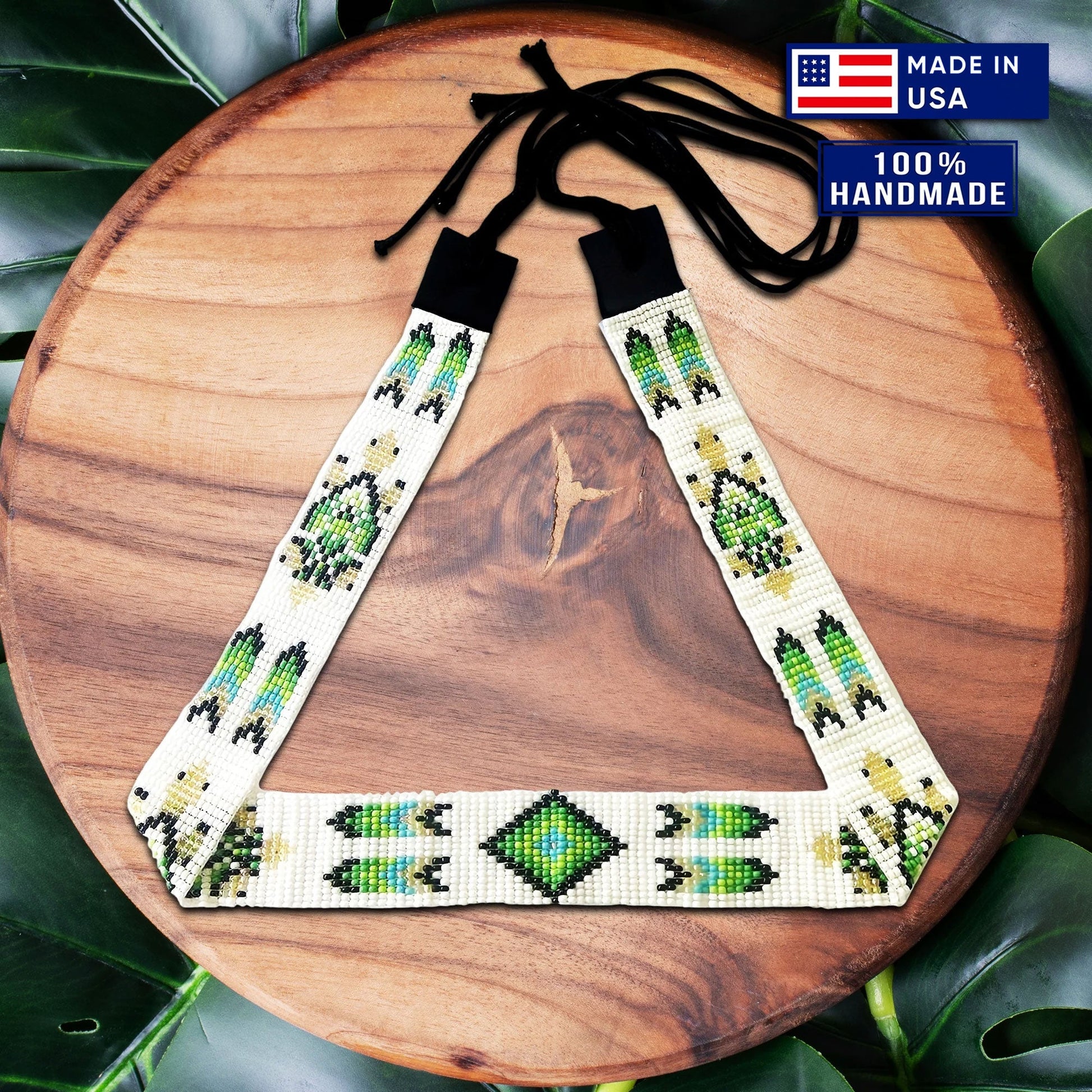 The intricate beadwork captures the essence of Native American symbolism, telling stories of unity, spirituality, and connection to the land. Each bead is thoughtfully threaded, allowing the patterns to come alive with a vibrant fusion of colors and intricate details. This Beaded Hatband isn't just an accessory; it's a representation of the legacy passed down through generations.