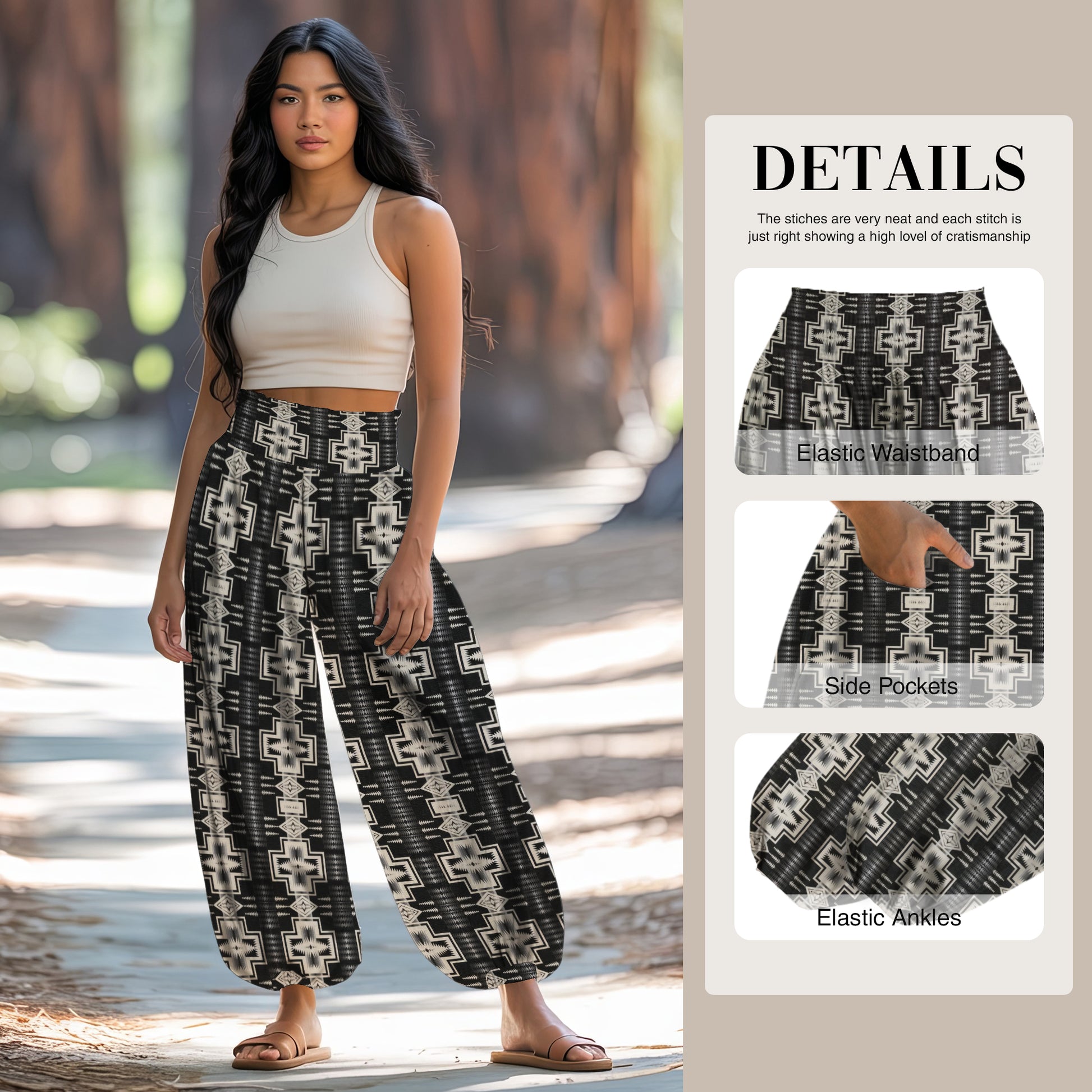 Print Harem Pants – Black & White Yoga Boho Clothes with Pockets