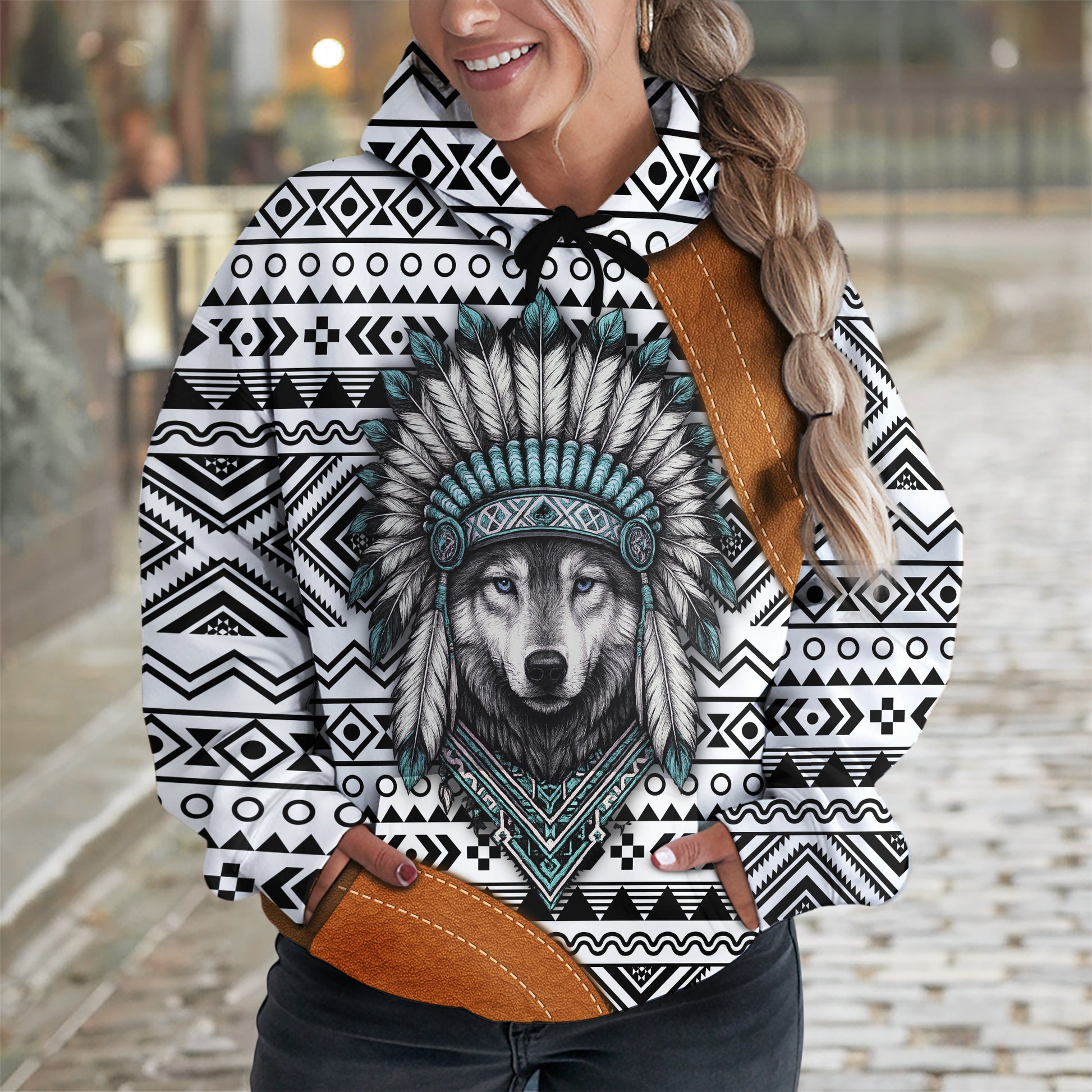 Native Wolf Hoodie – Tribal Pattern & Chief Headdress Design