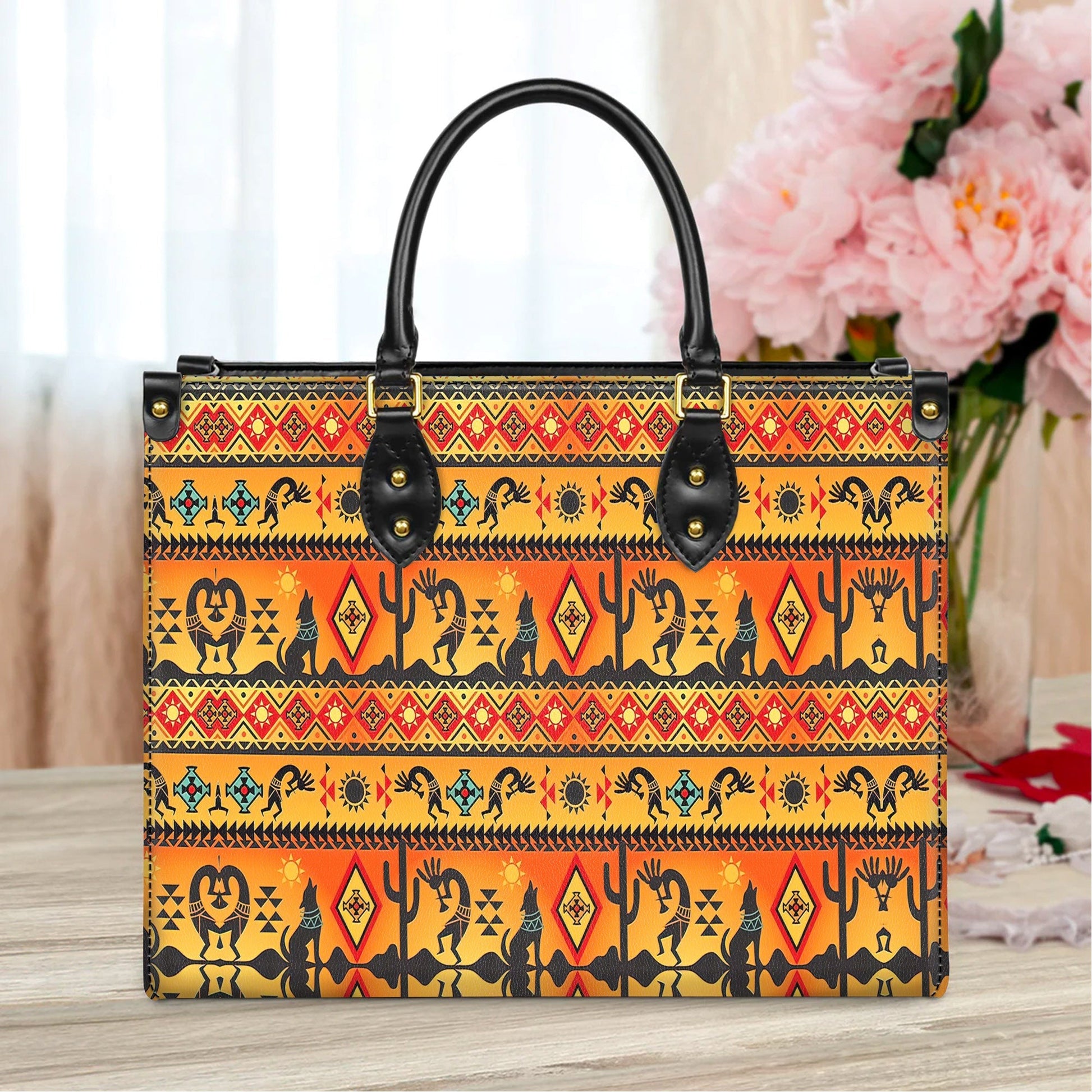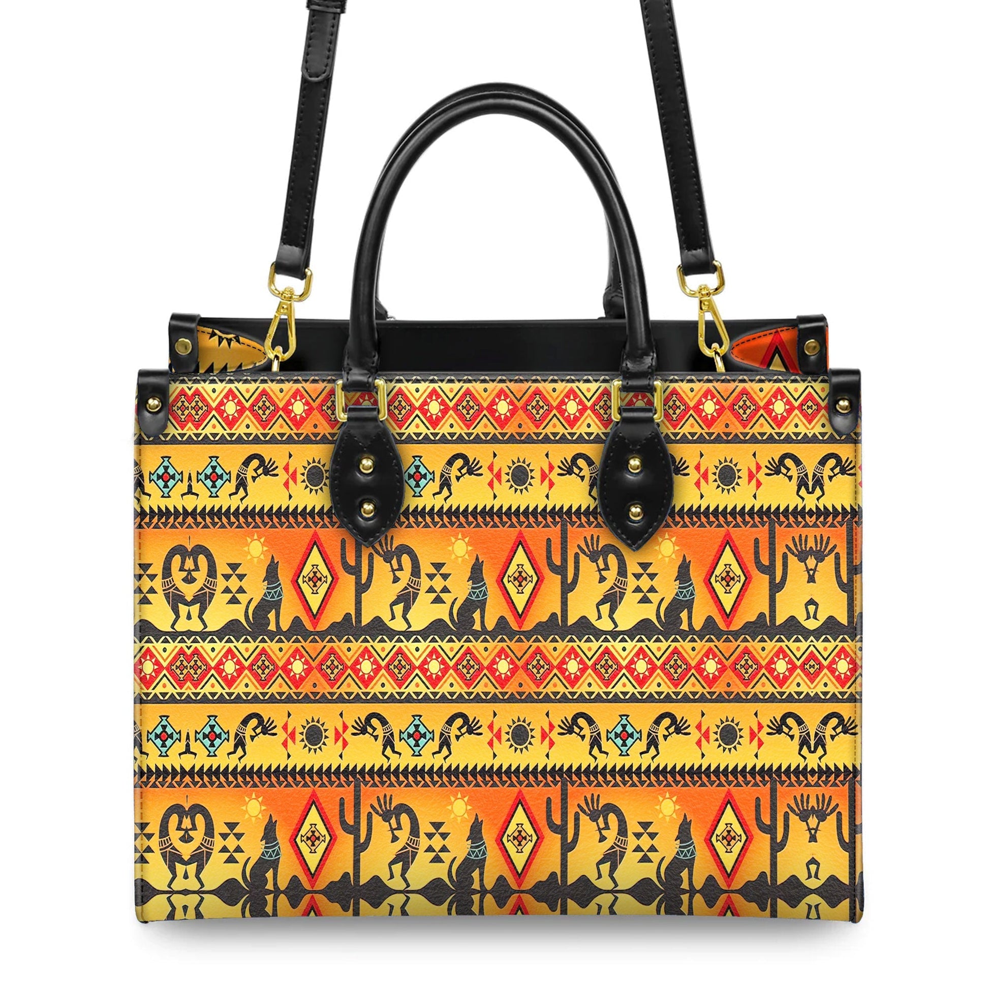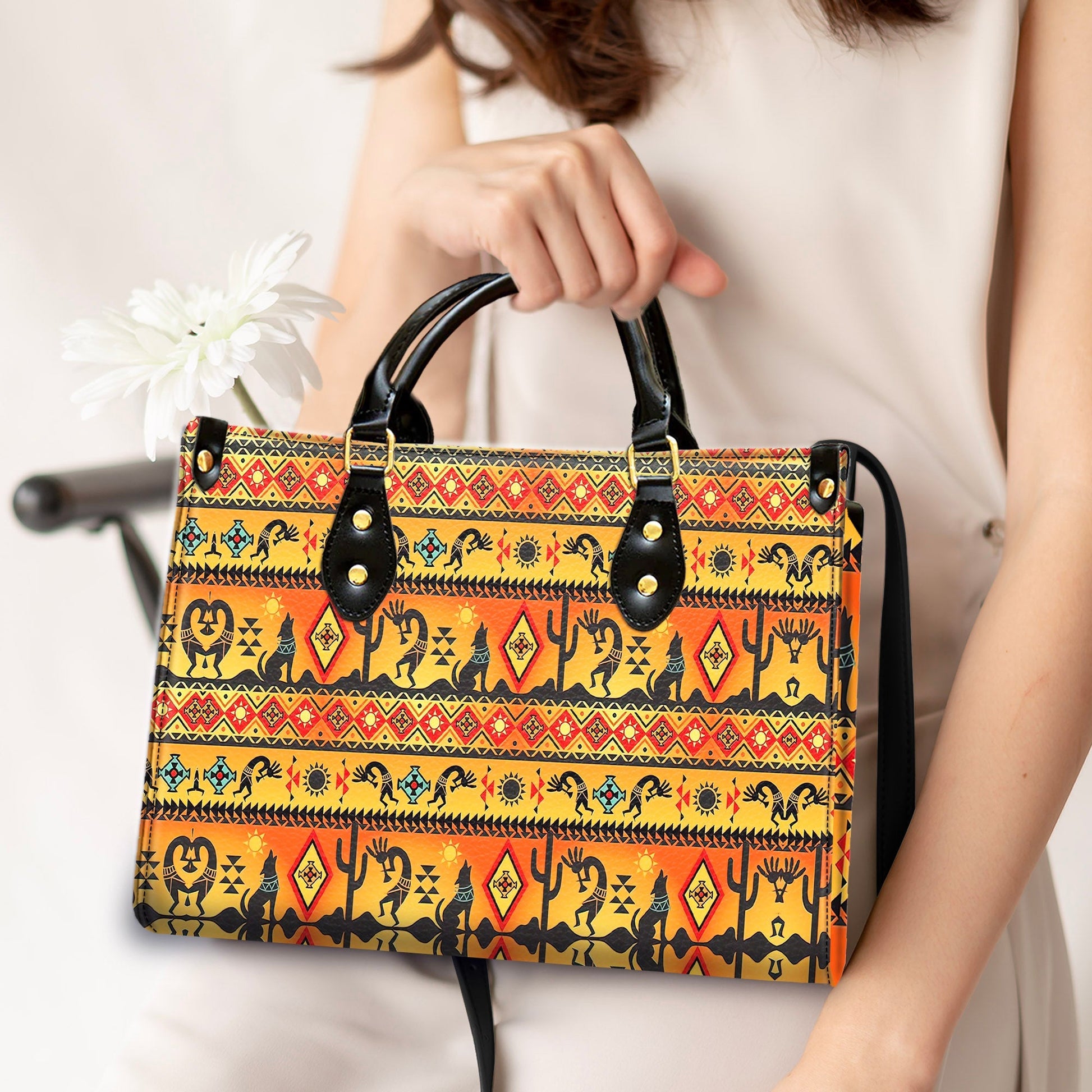 Kokopelli Myth Yellow Native Leather Handbag WCS022