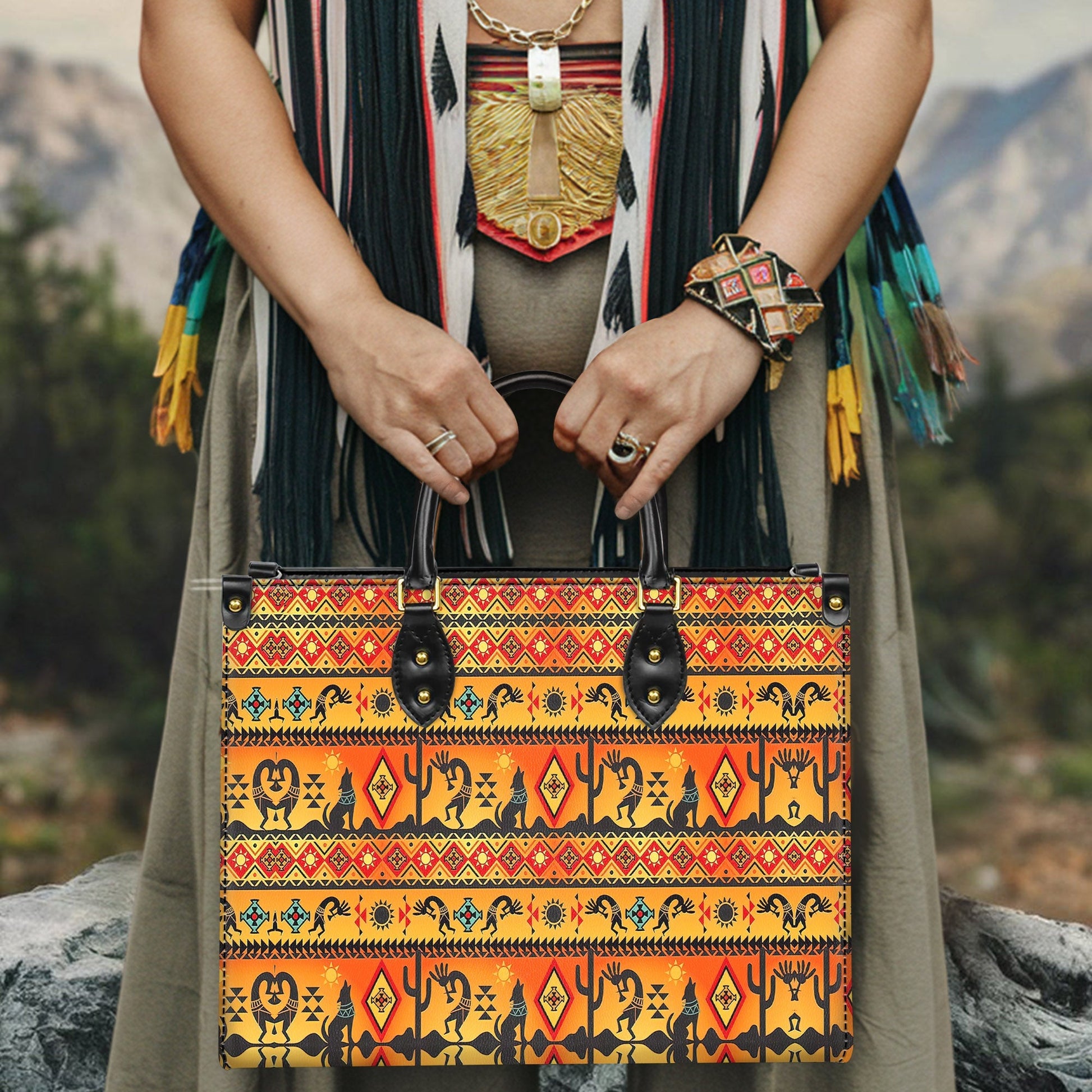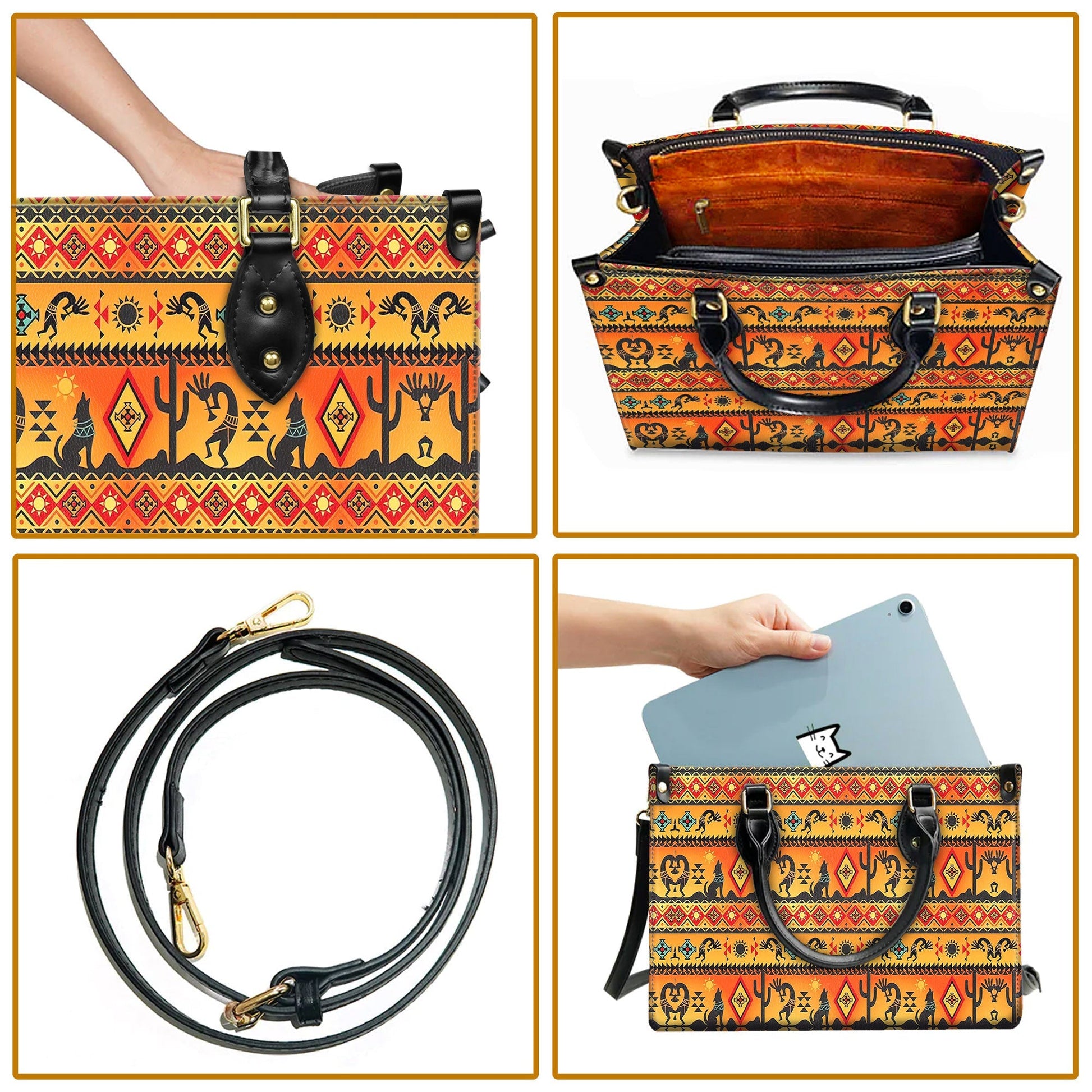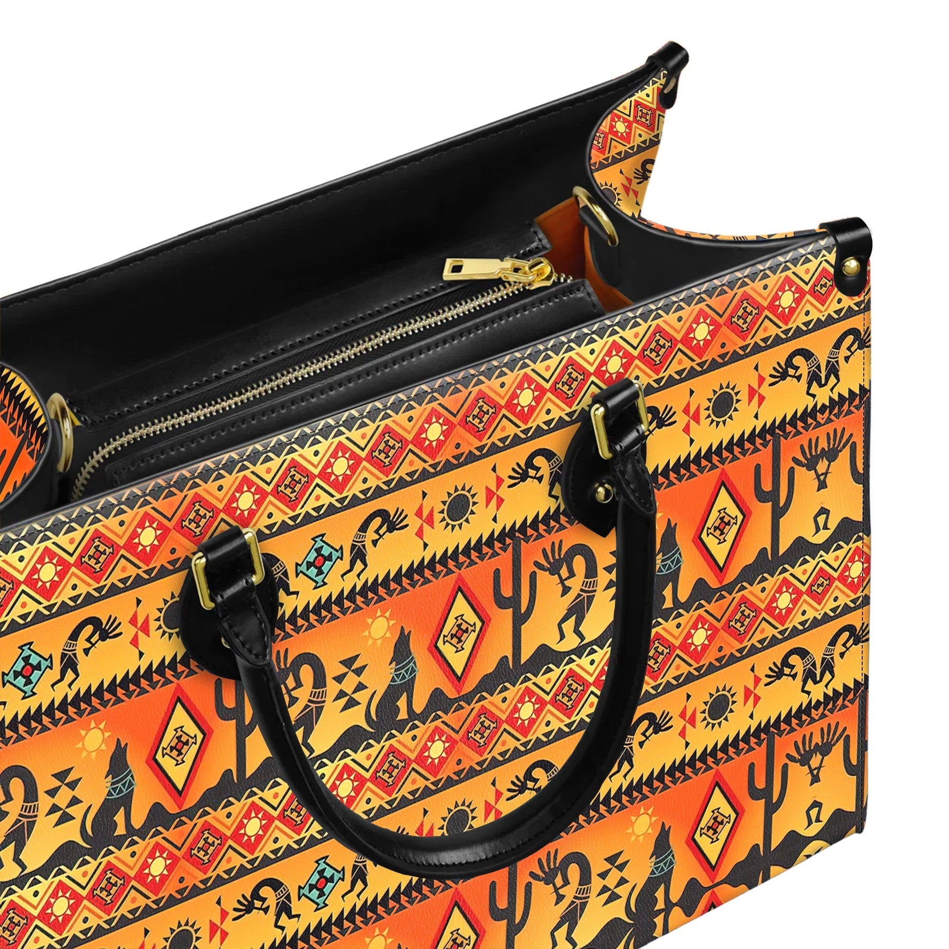 Kokopelli Myth Yellow Native Leather Handbag WCS022