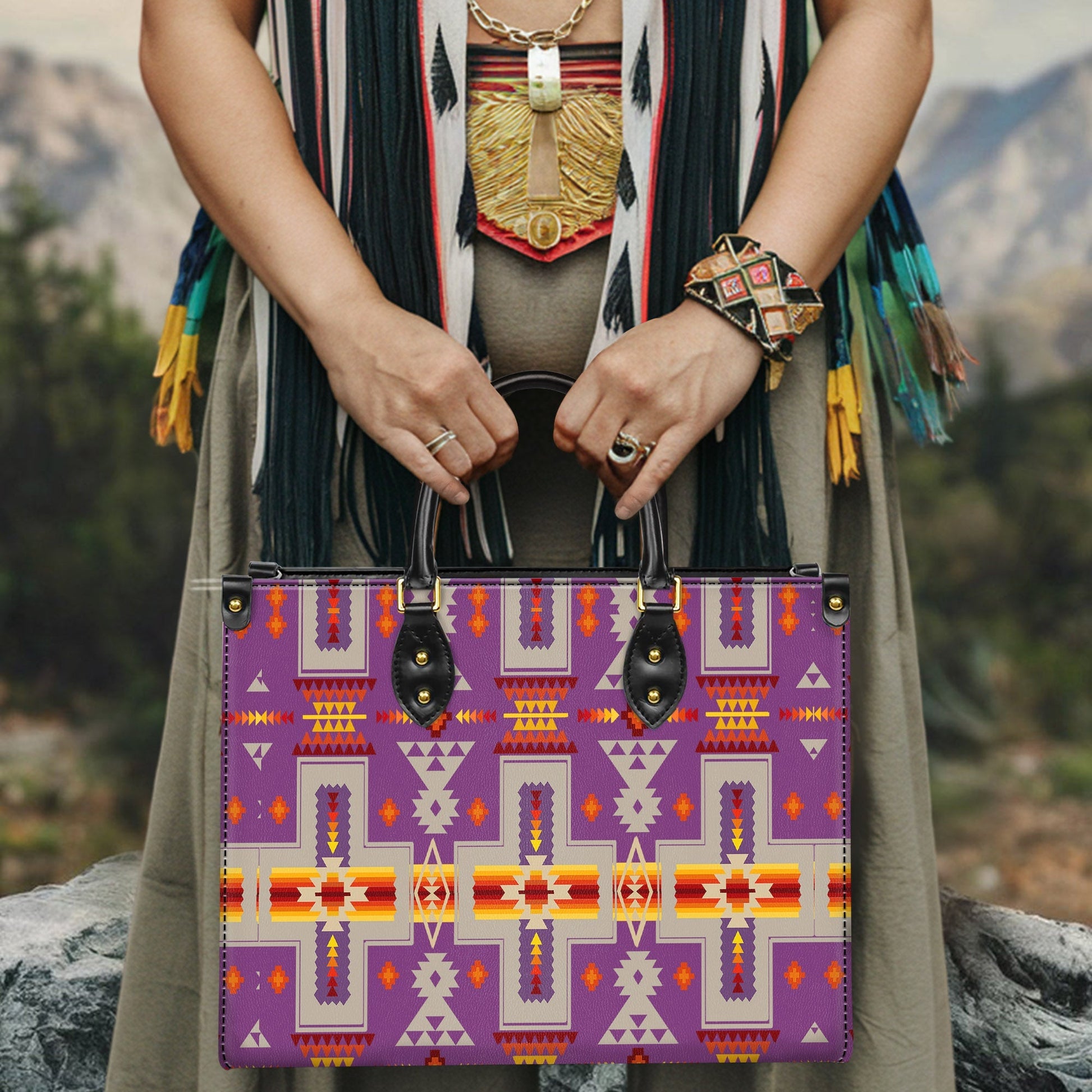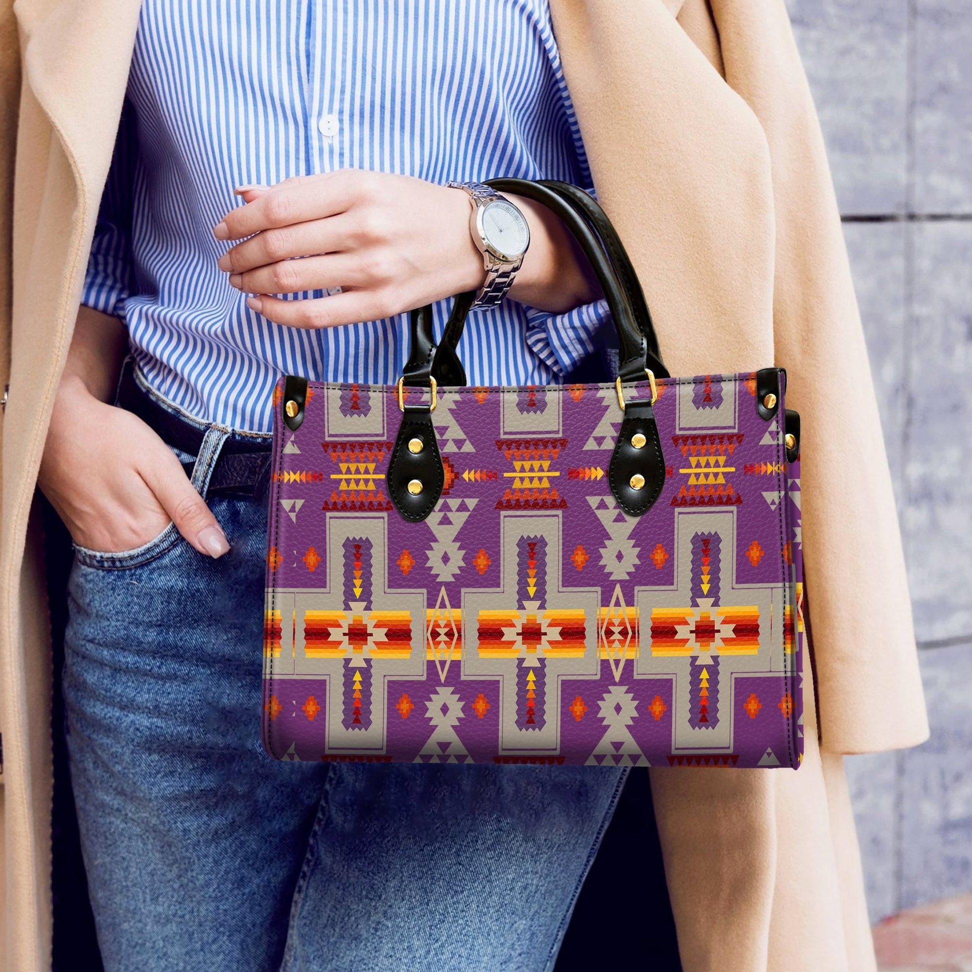 Light Purple Design Native Leather Handbag WCS054