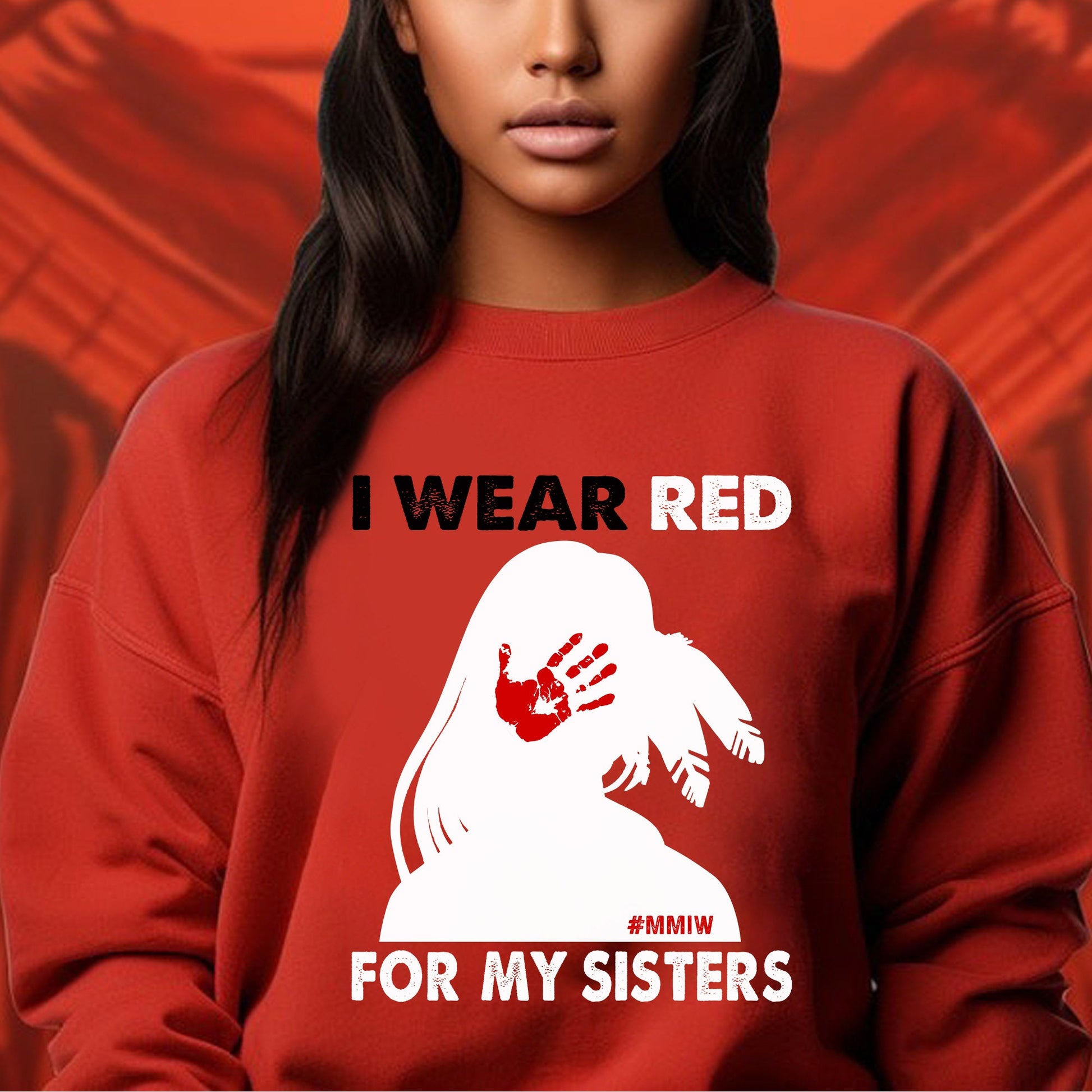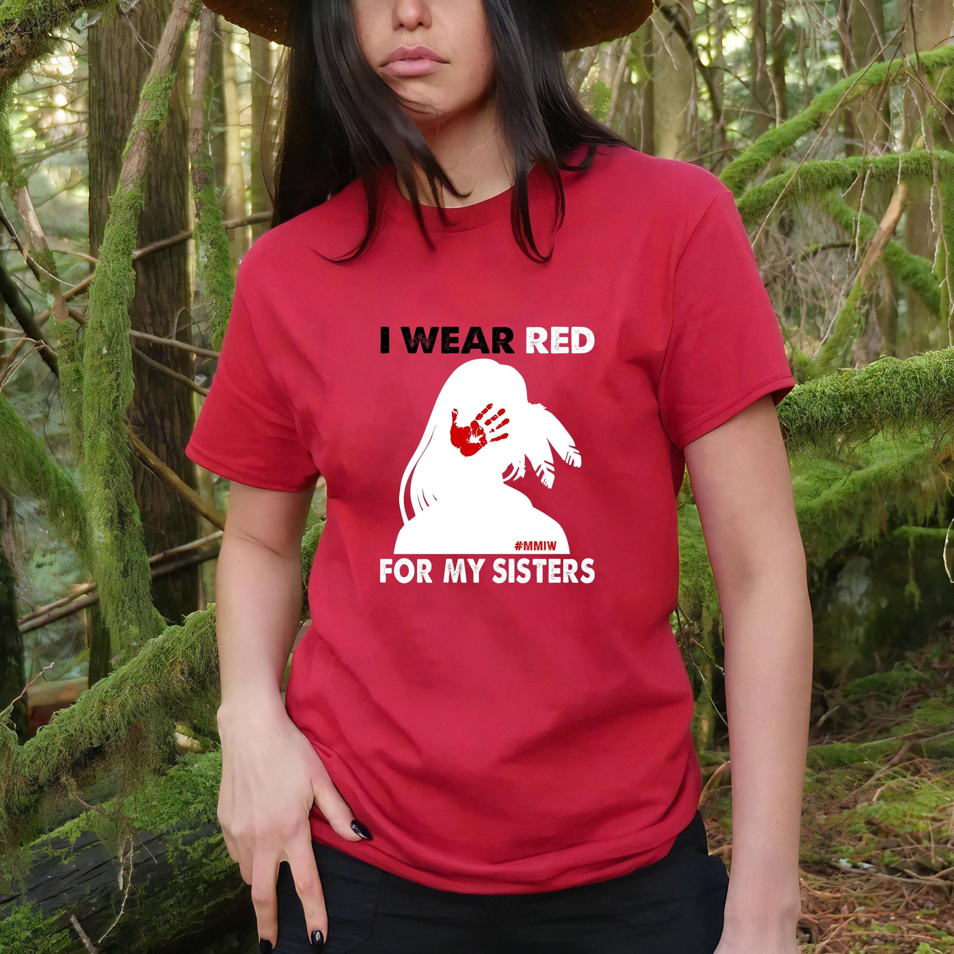 MMIW I Wear Red For My Sister, No More Stolen Sisters Shirts Red Hand Unisex T-Shirt/Hoodie/Sweatshirt