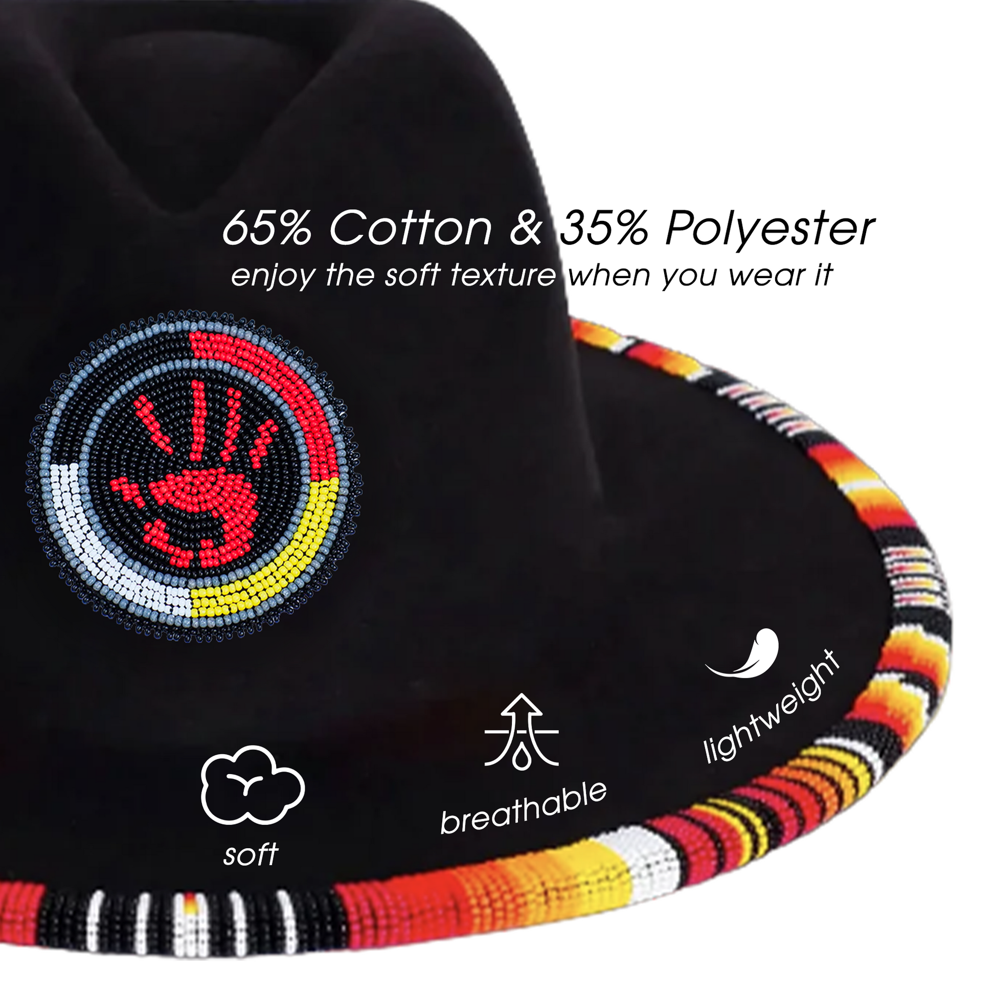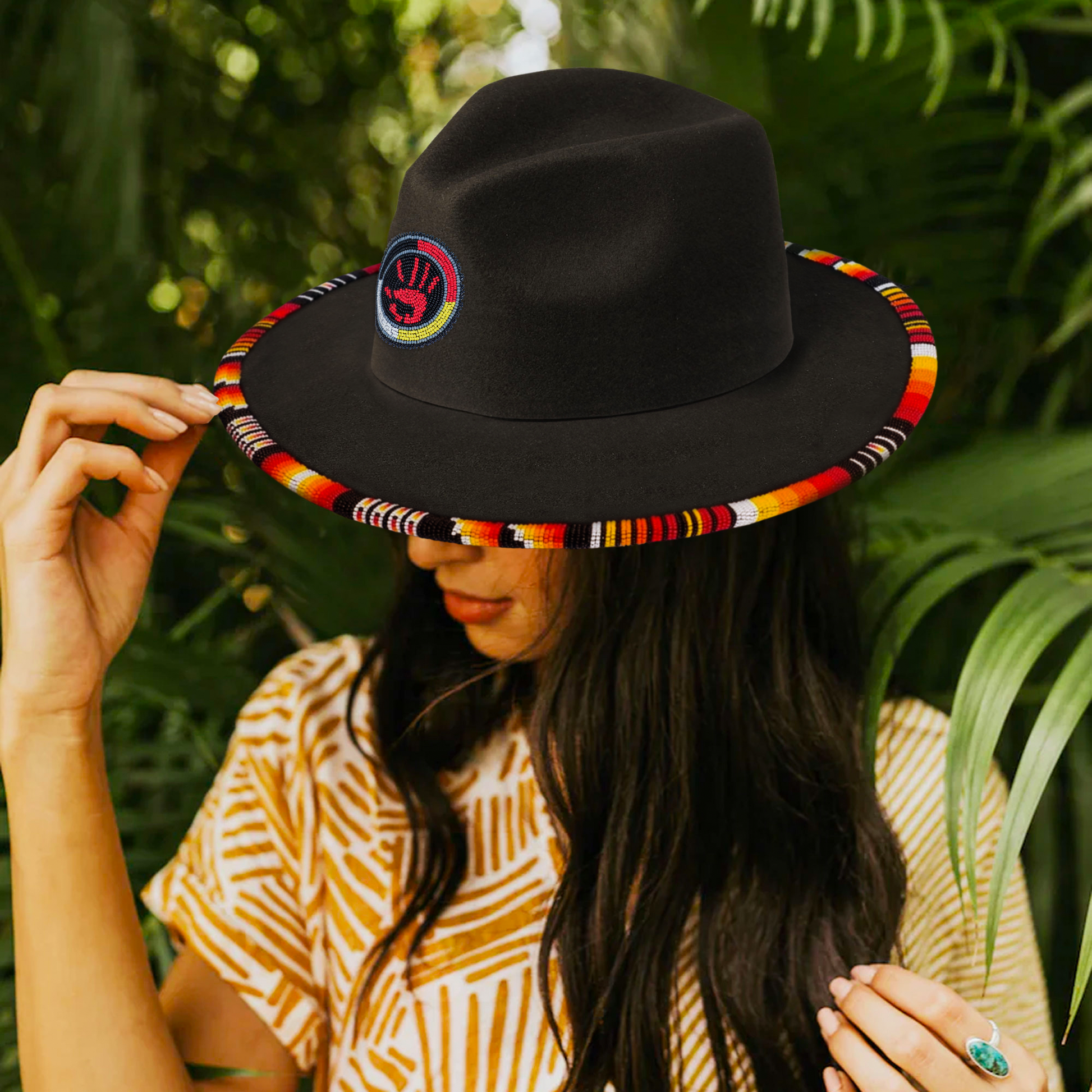 This Beaded Fedora transcends fashion, encapsulating the beauty of indigenous artistry. With the hat's blend of tradition and innovation, you're invited to embrace a legacy that is woven into every bead. Whether you wear it casually or on special occasions, this fedora becomes a declaration of respect, cultural pride, and a tribute to the enduring grace of Native American heritage.