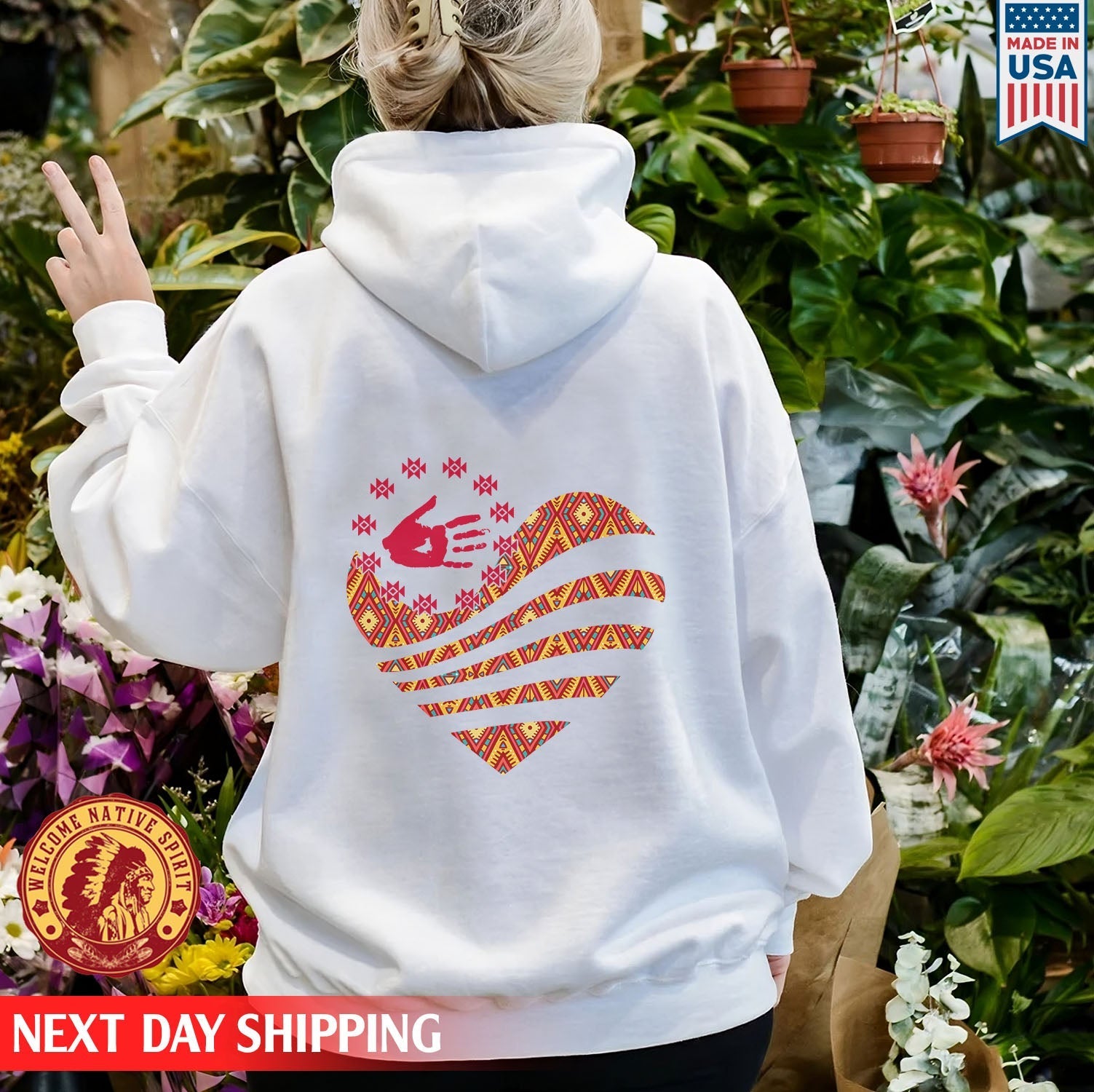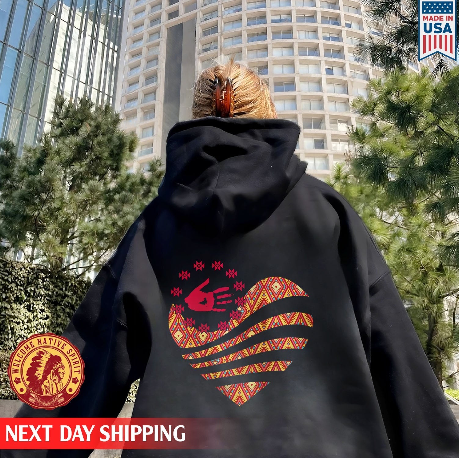 I Wear Red For My Sister Red Hand Together MMIW Heart Unisex Back T-Shirt/Hoodie/Sweatshirt
