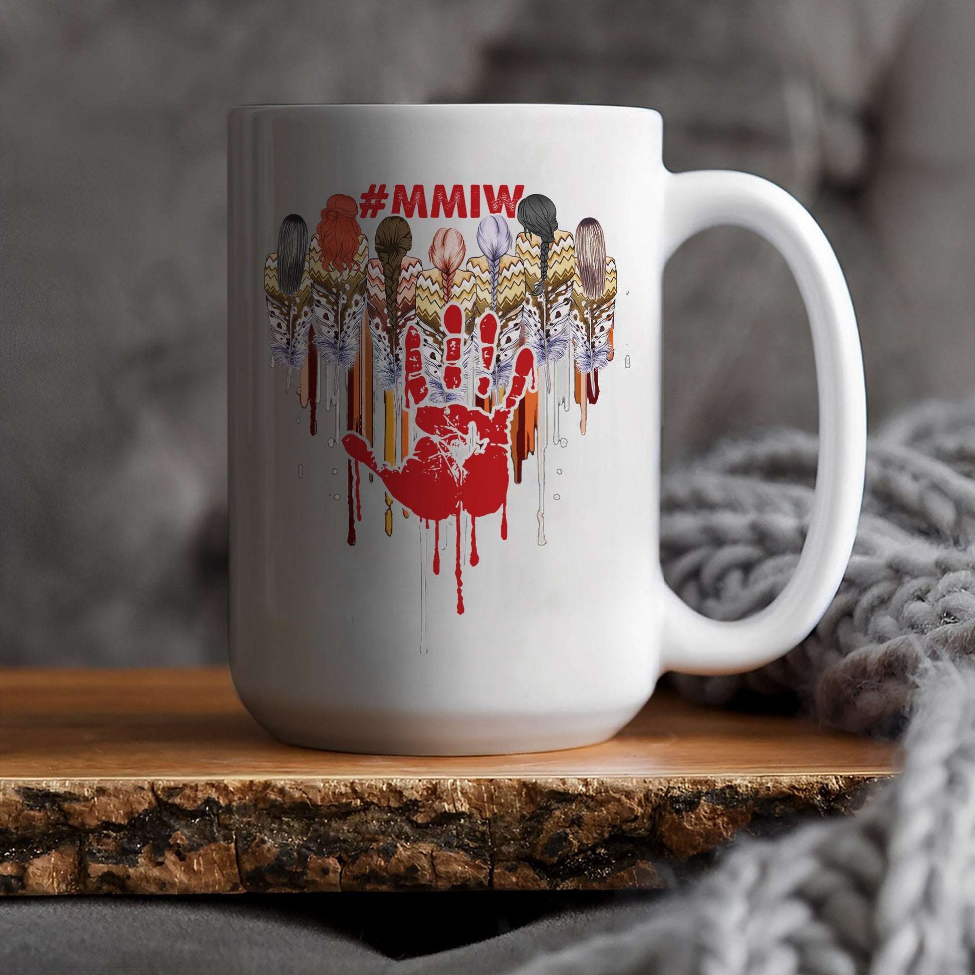 MMIW Women Red Hand Together Feather Heart Ceramic Coffee Mug