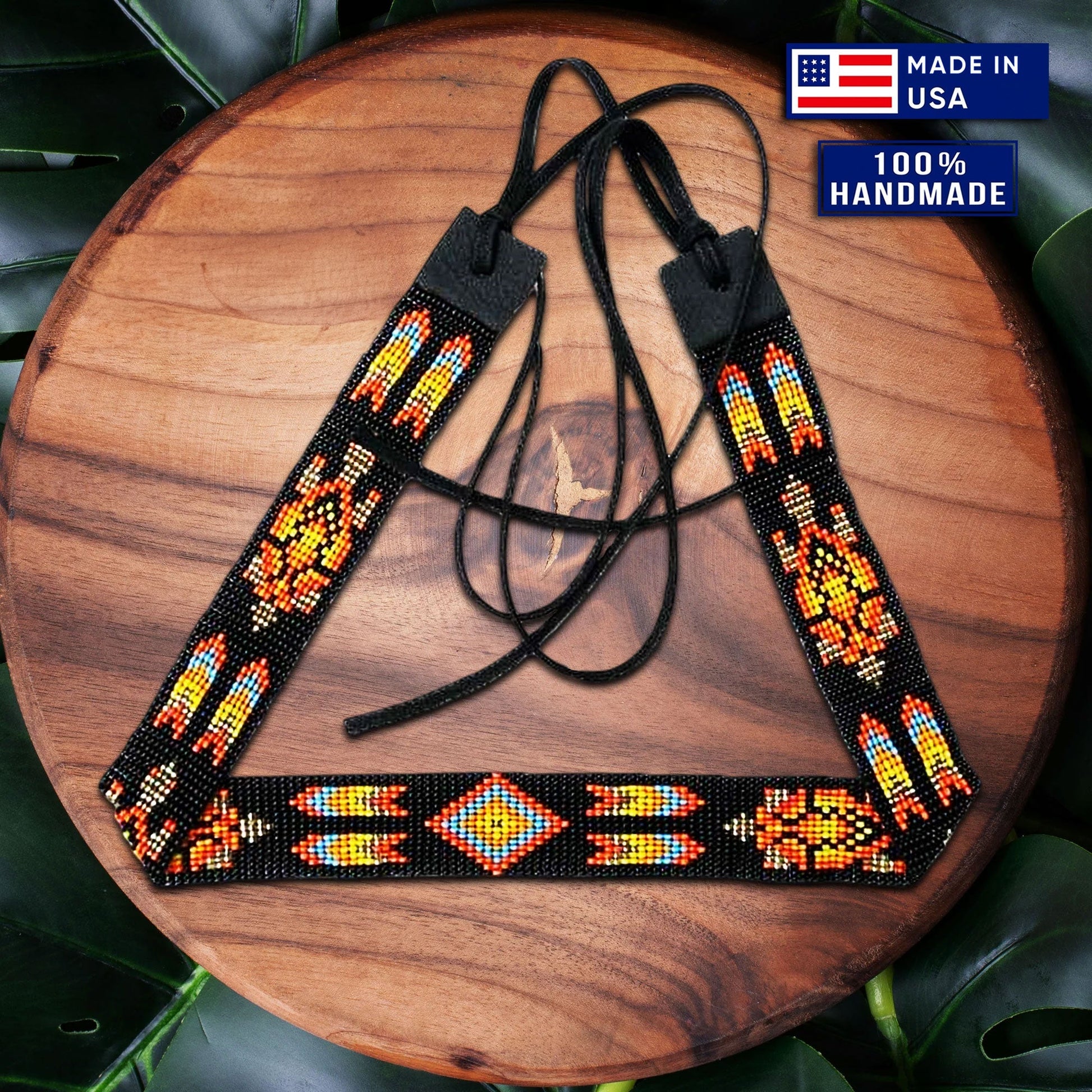 The intricate beadwork captures the essence of Native American symbolism, telling stories of unity, spirituality, and connection to the land. Each bead is thoughtfully threaded, allowing the patterns to come alive with a vibrant fusion of colors and intricate details. This Beaded Hatband isn't just an accessory; it's a representation of the legacy passed down through generations.
