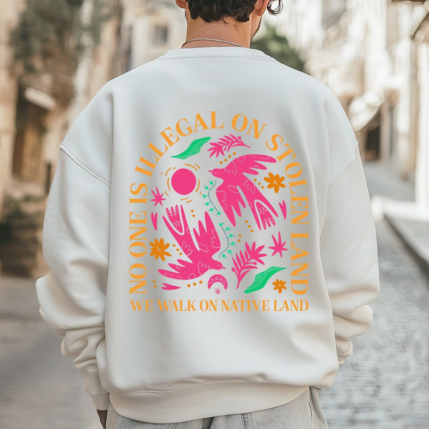NO ONE IS ILLEGAL ON STOLEN LAND. WE WALK ON NATIVE LAND Style 2 - Two Sides