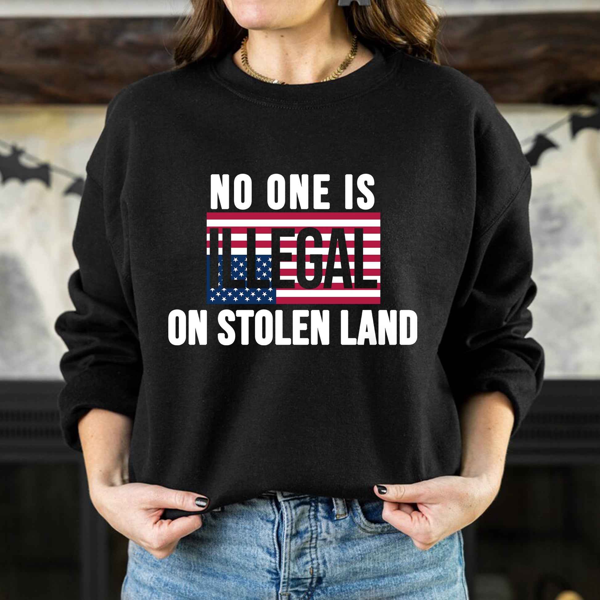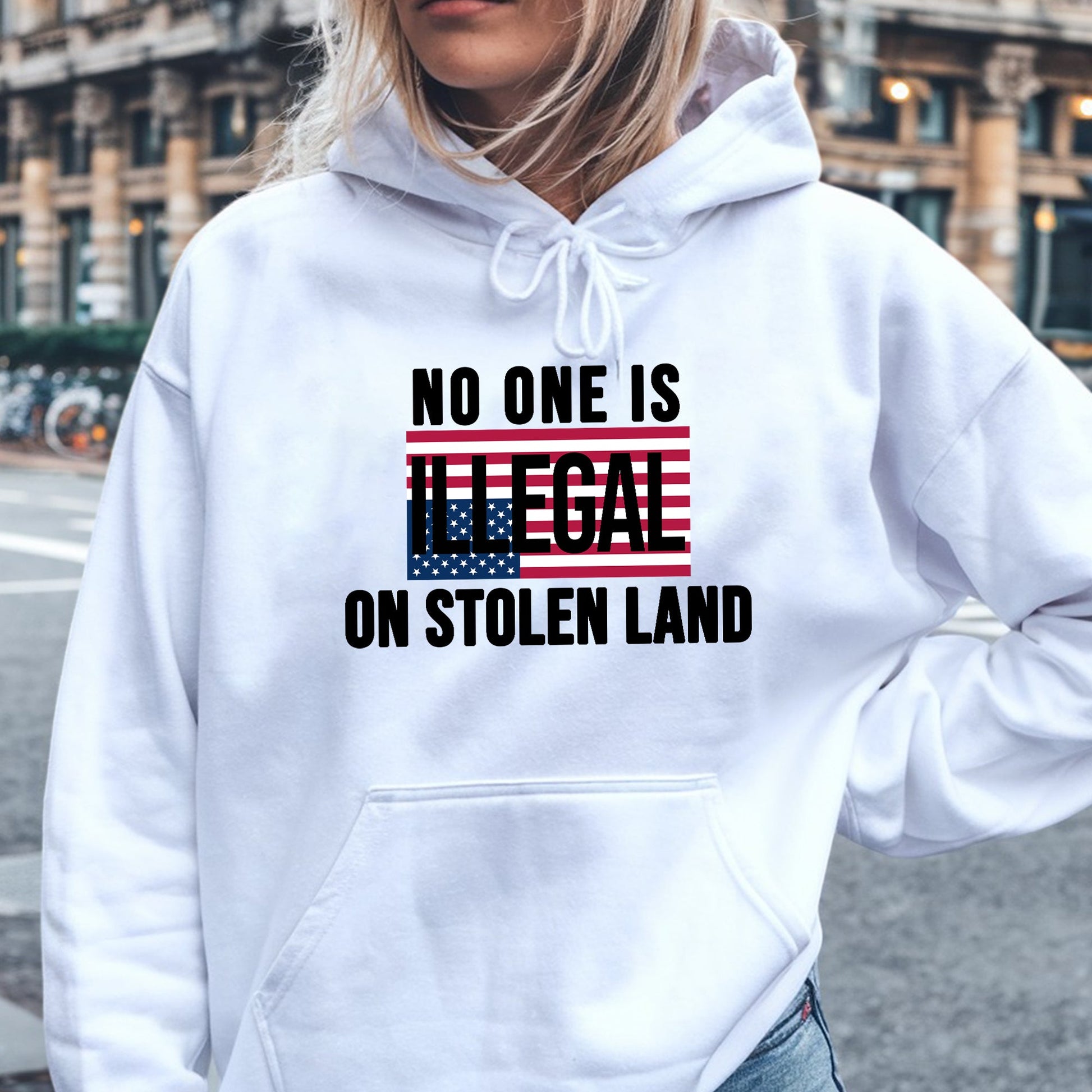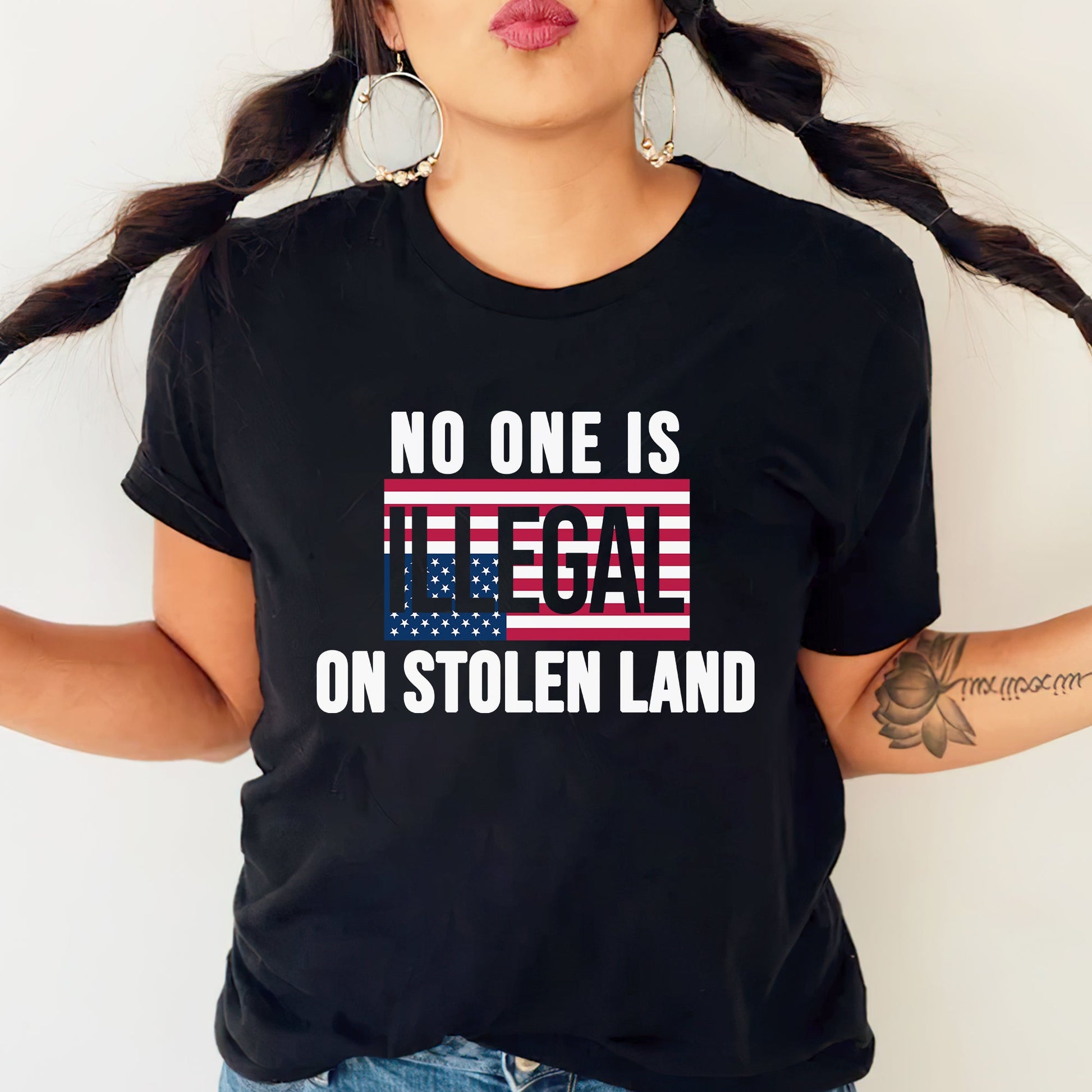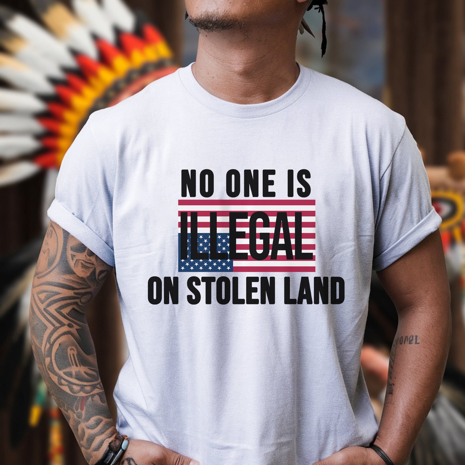 No One Is Illegal On Stolen Land Bold Statement Unisex T-Shirt/T-Shirt V-Neck/Hoodie/Sweatshirt