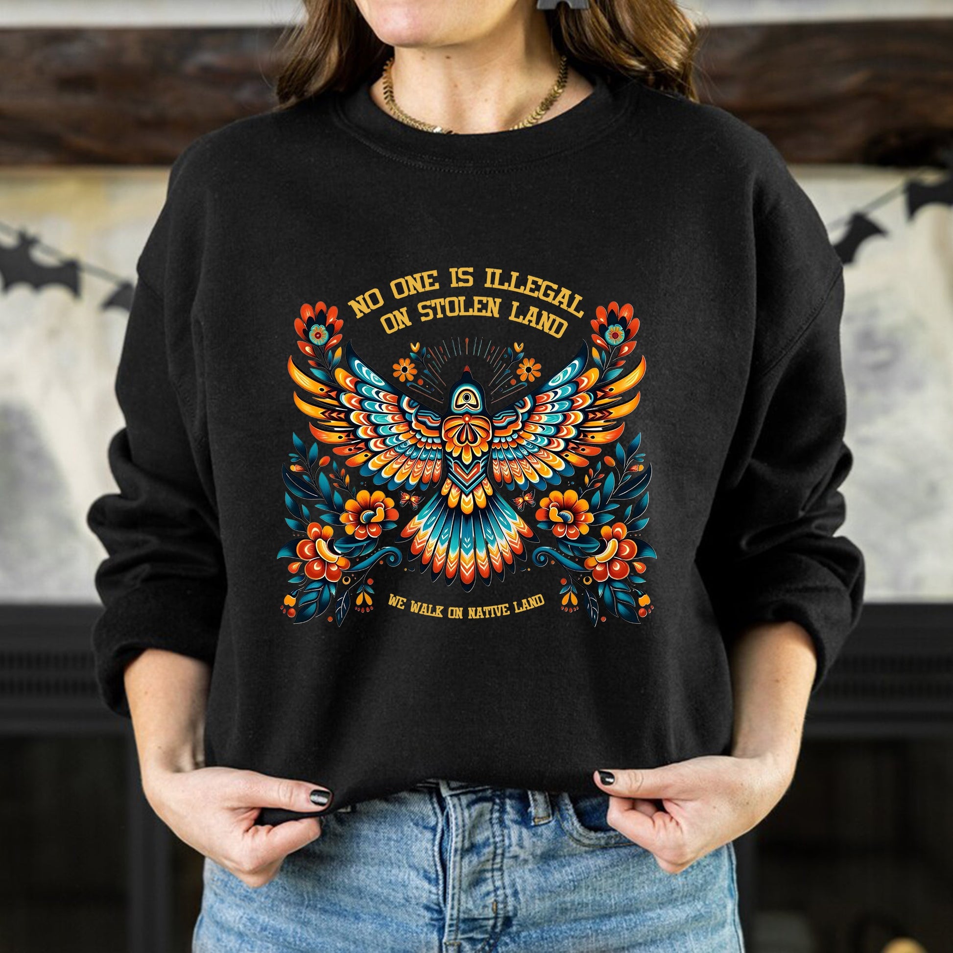 No One Is Illegal On Stolen Land Colorful Eagle Unisex T-Shirt/T-Shirt V-Neck/Hoodie/Sweatshirt
