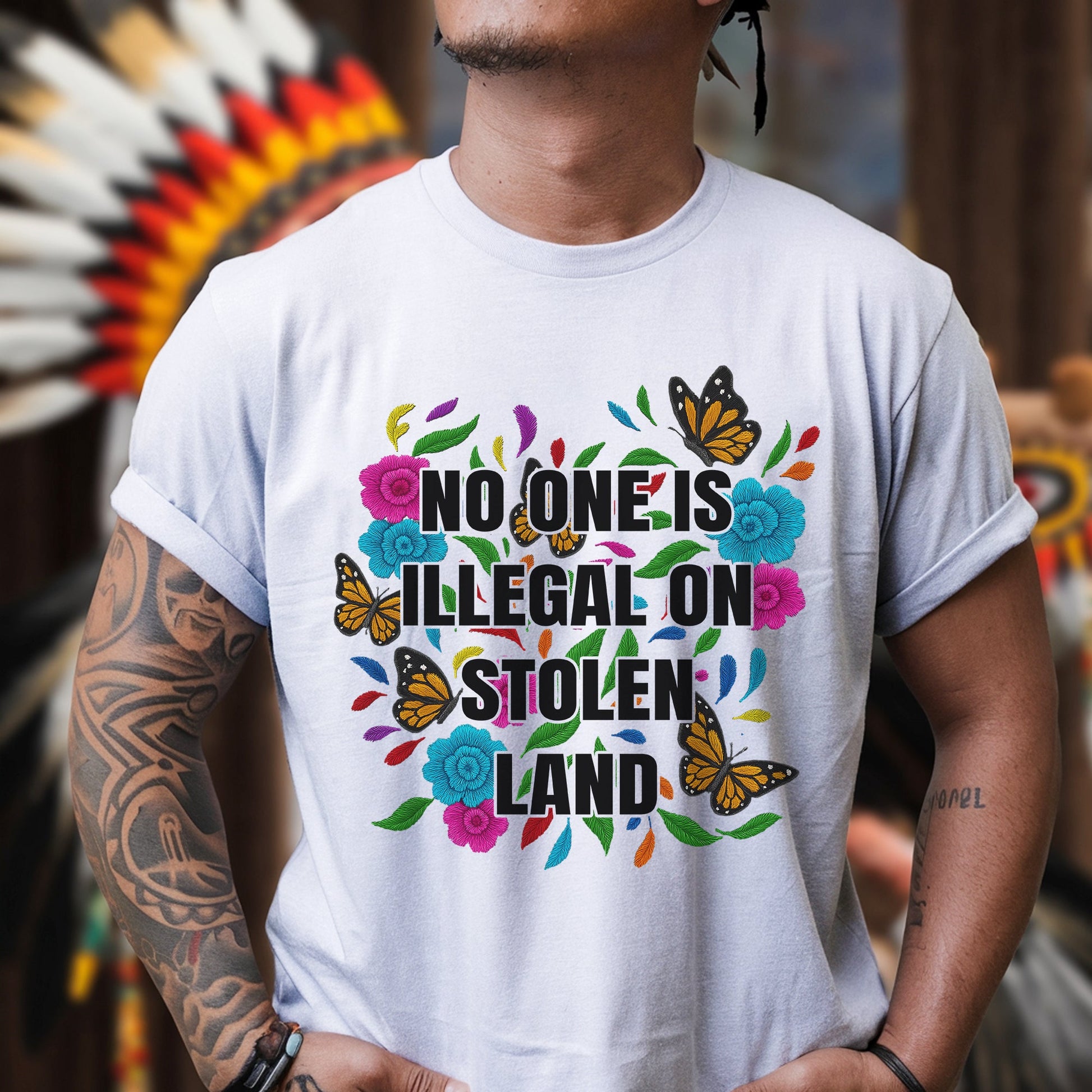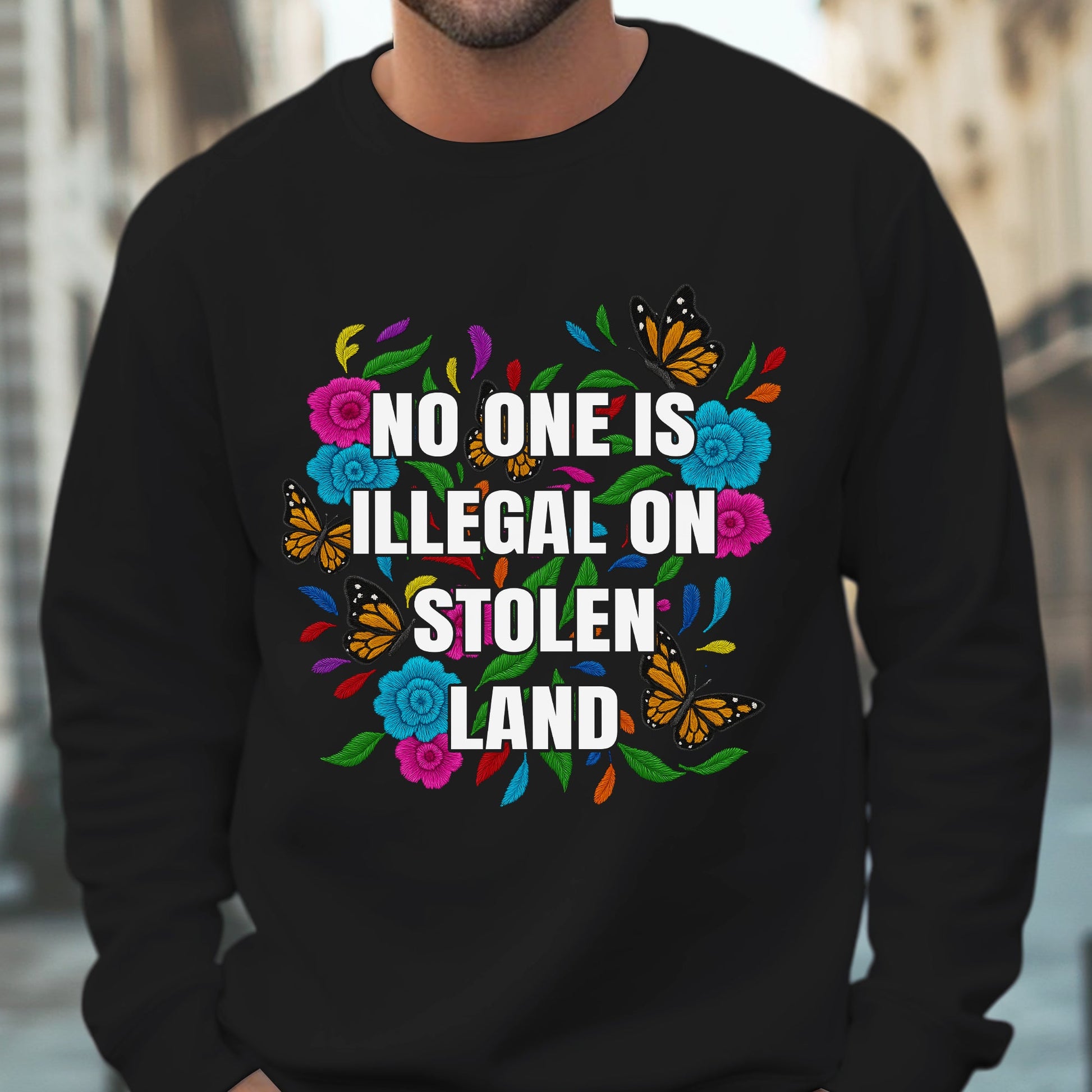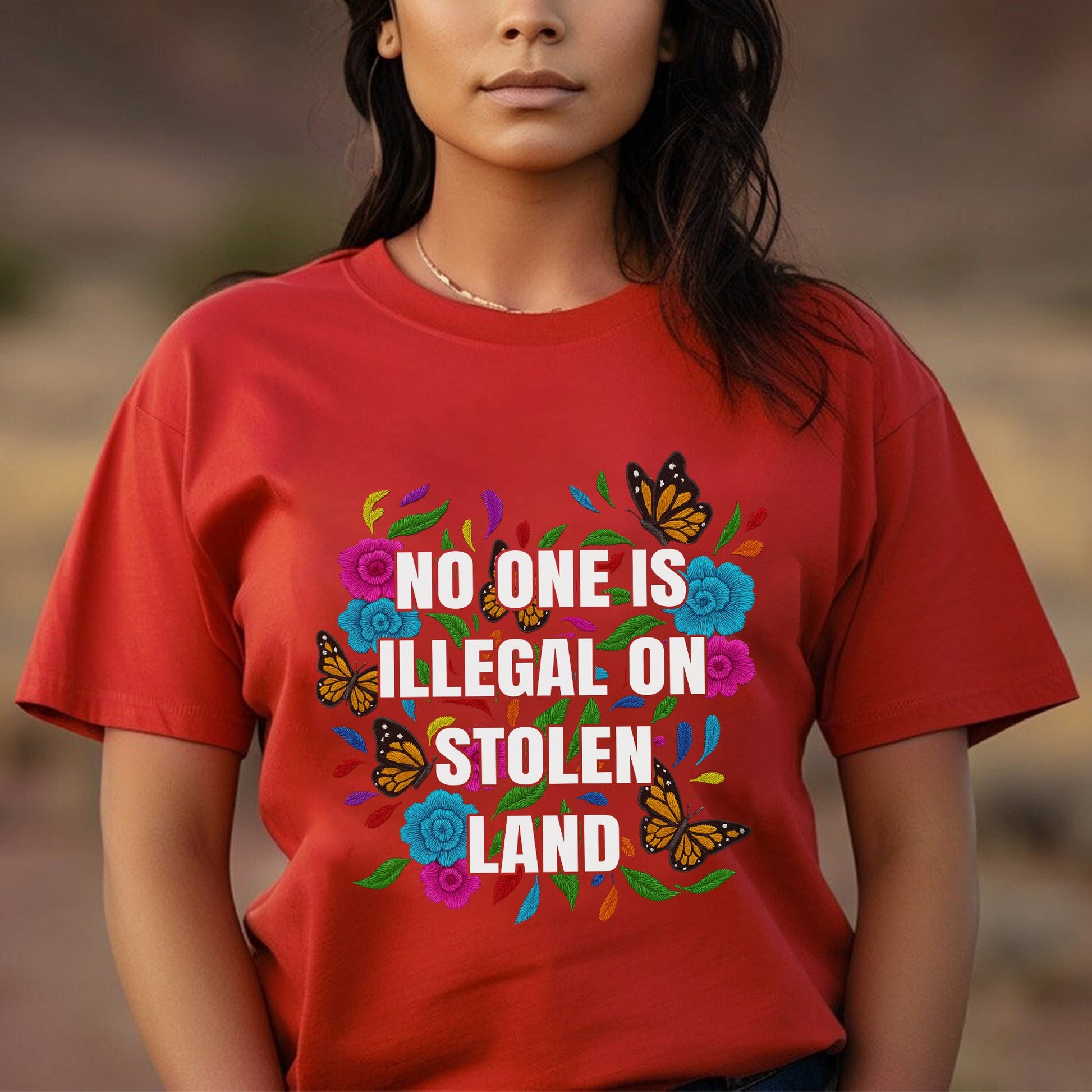 No One Is Illegal On Stolen Land Floral Colorful Monarch Unisex T-Shirt/T-Shirt V-Neck/Hoodie/Sweatshirt