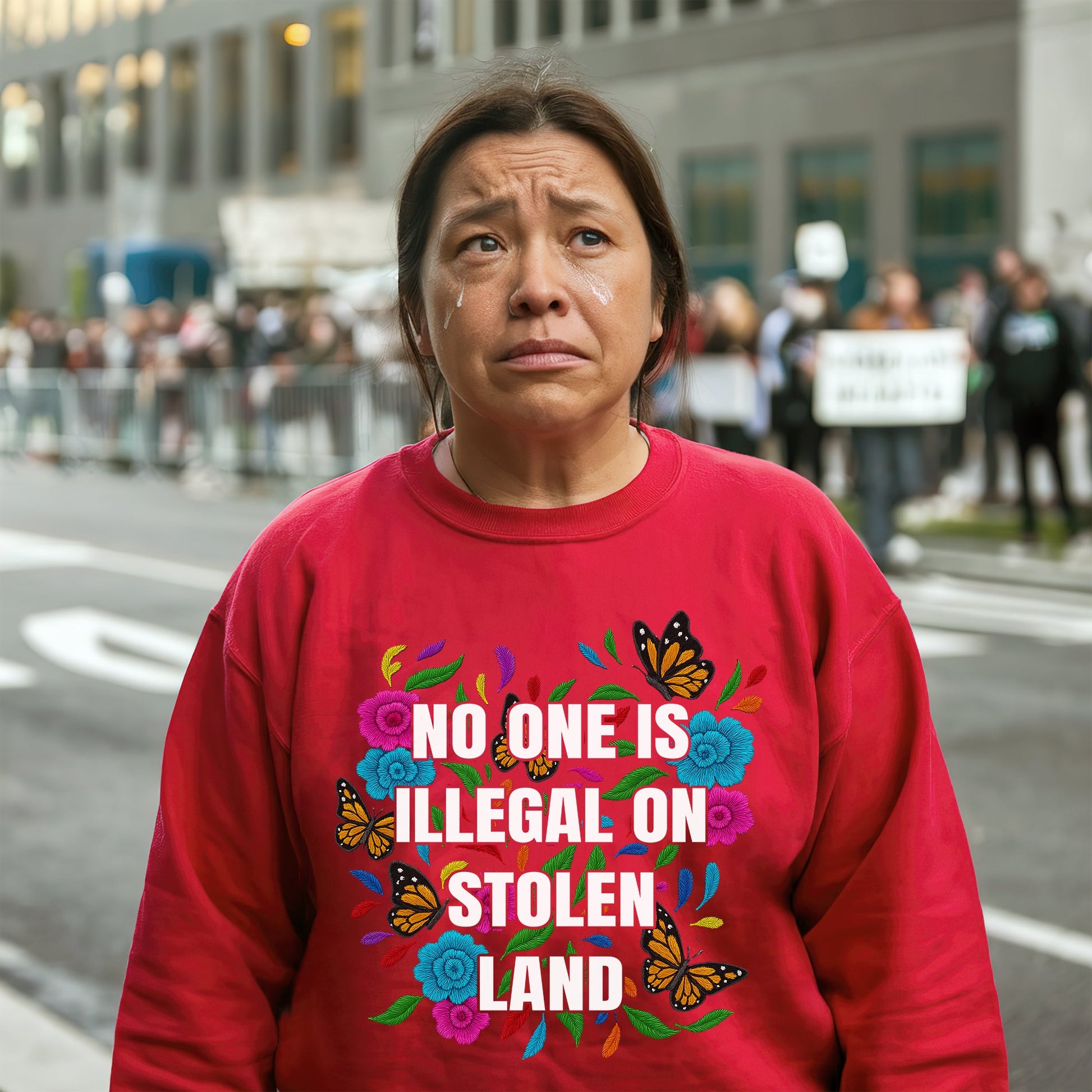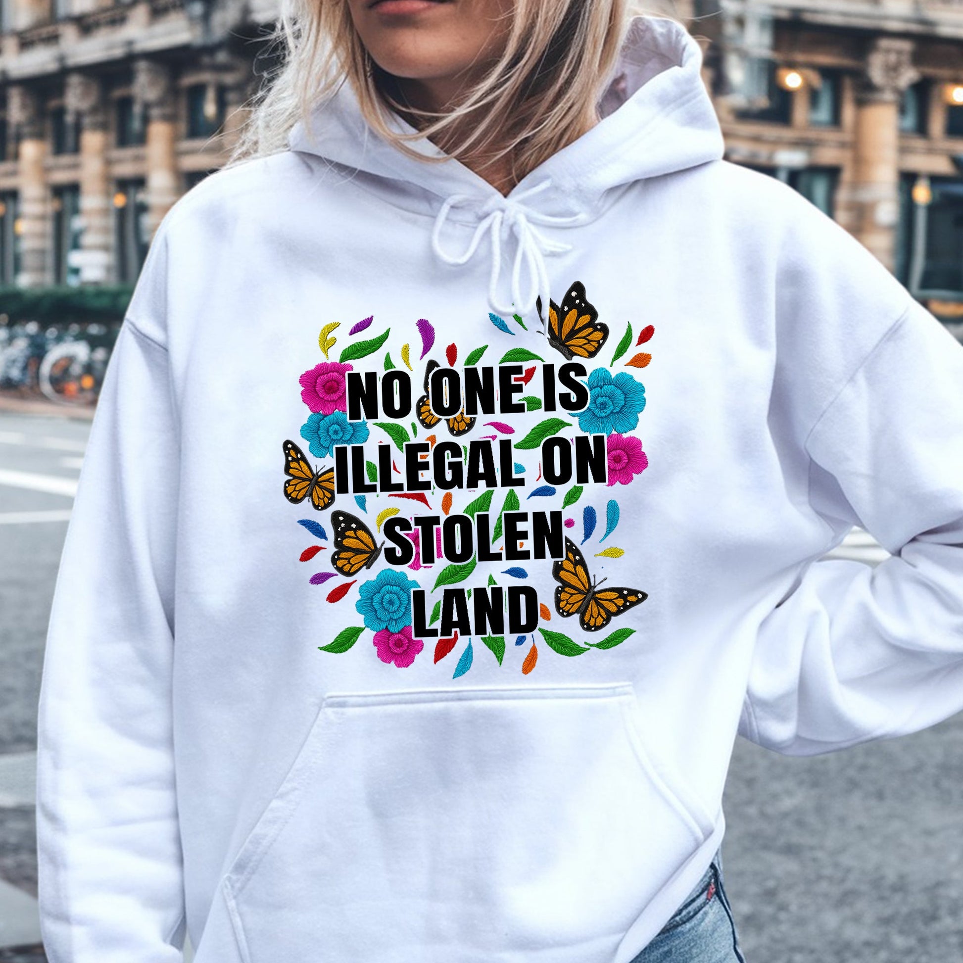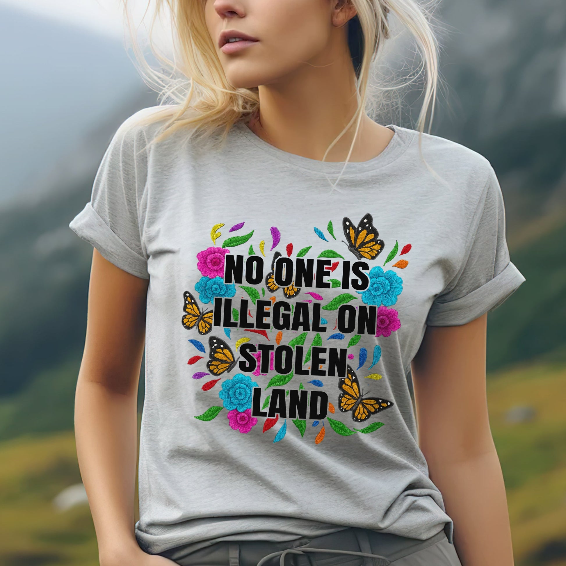 No One Is Illegal On Stolen Land Floral Colorful Monarch Unisex T-Shirt/T-Shirt V-Neck/Hoodie/Sweatshirt