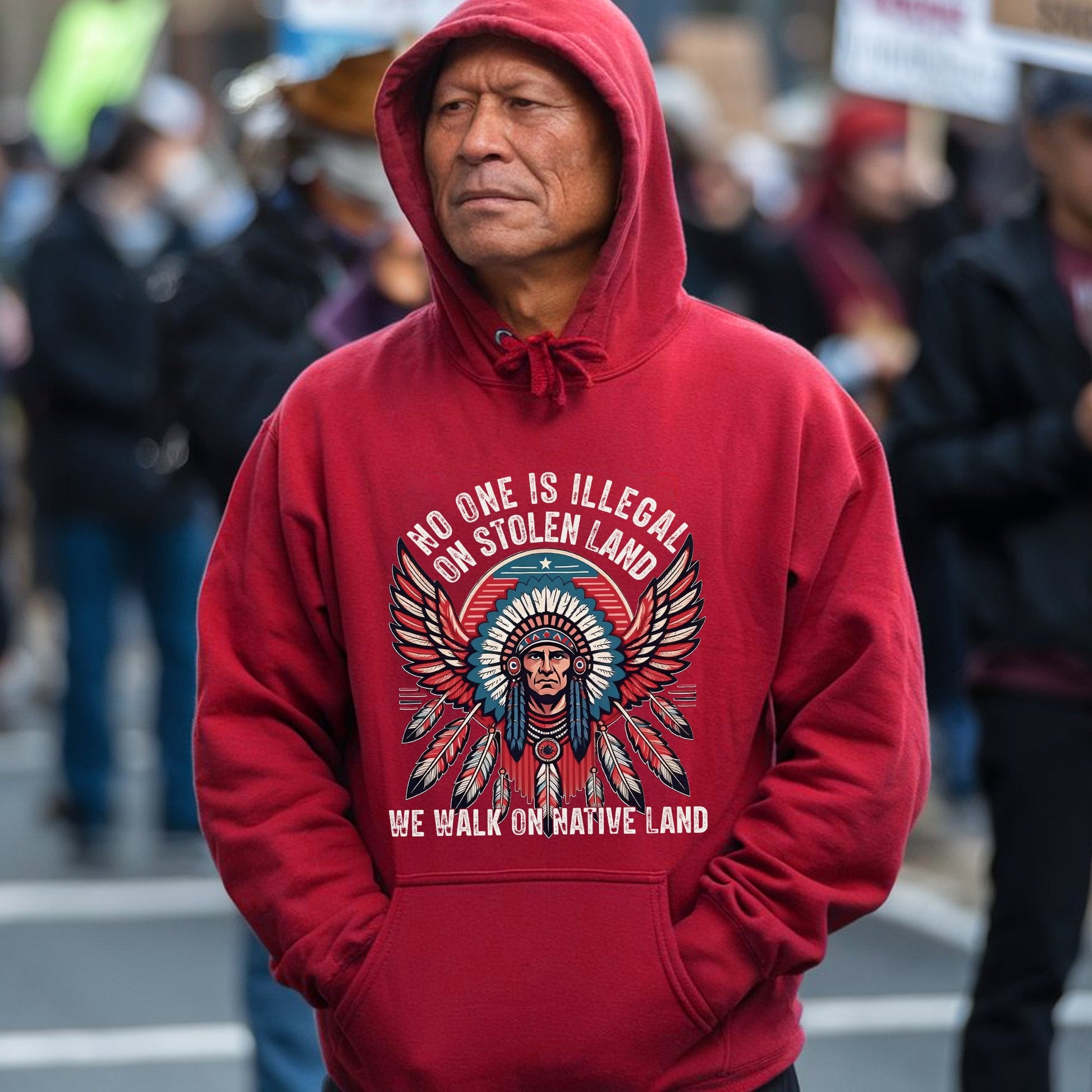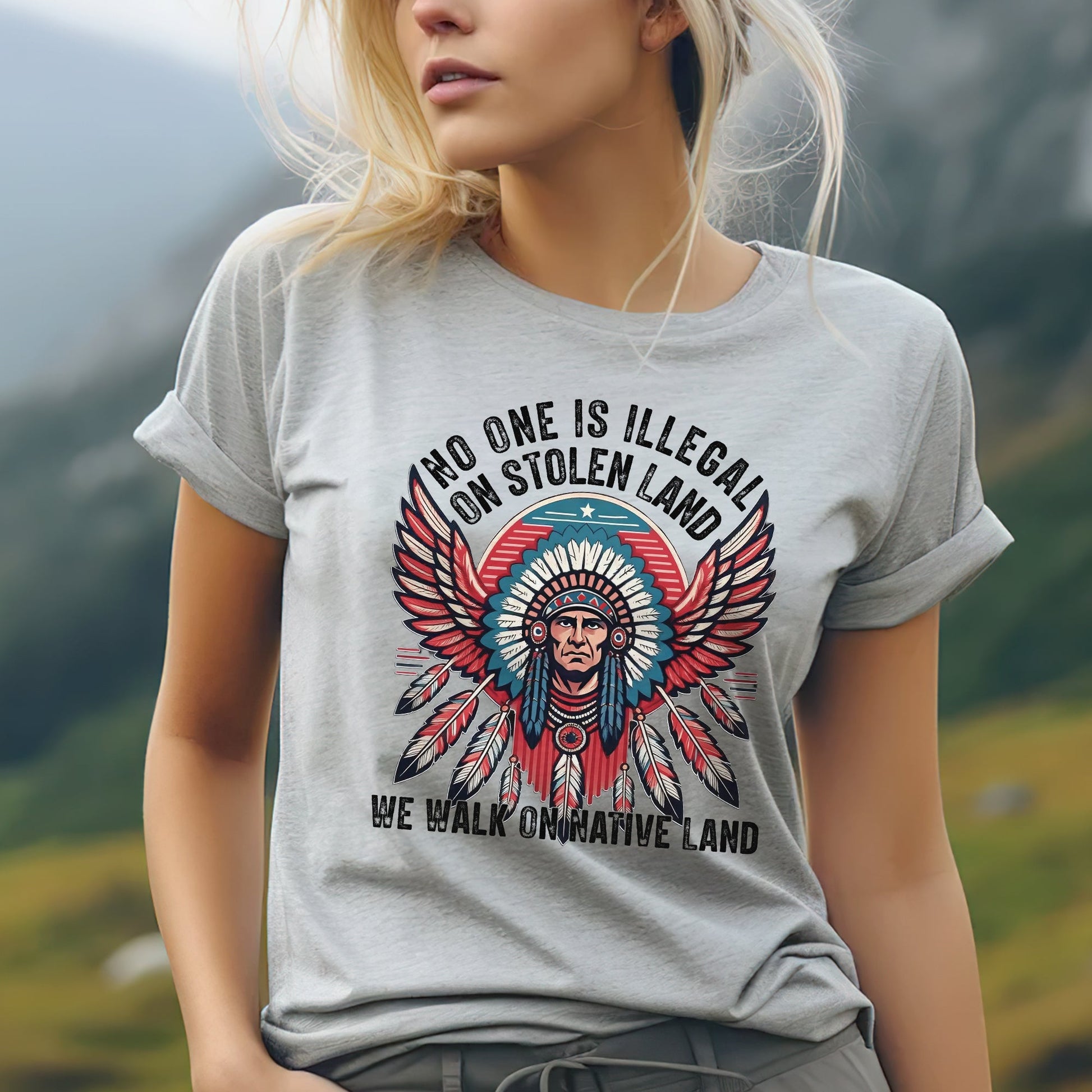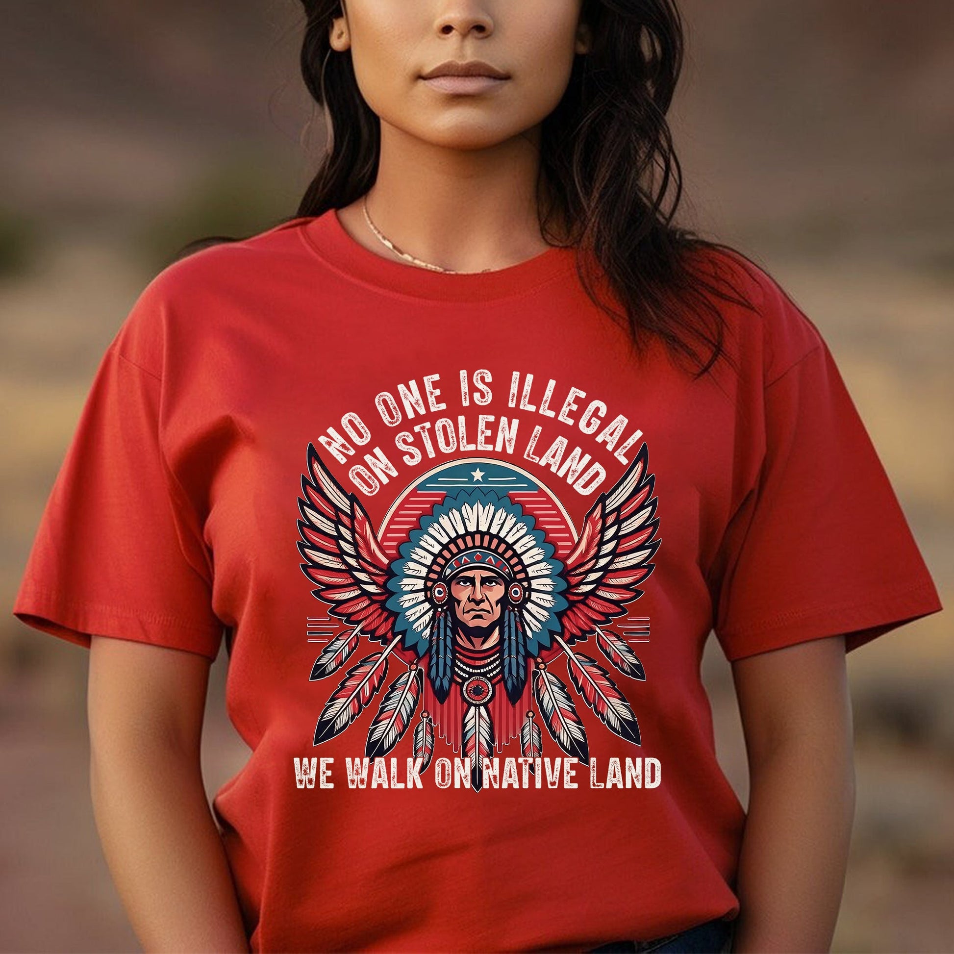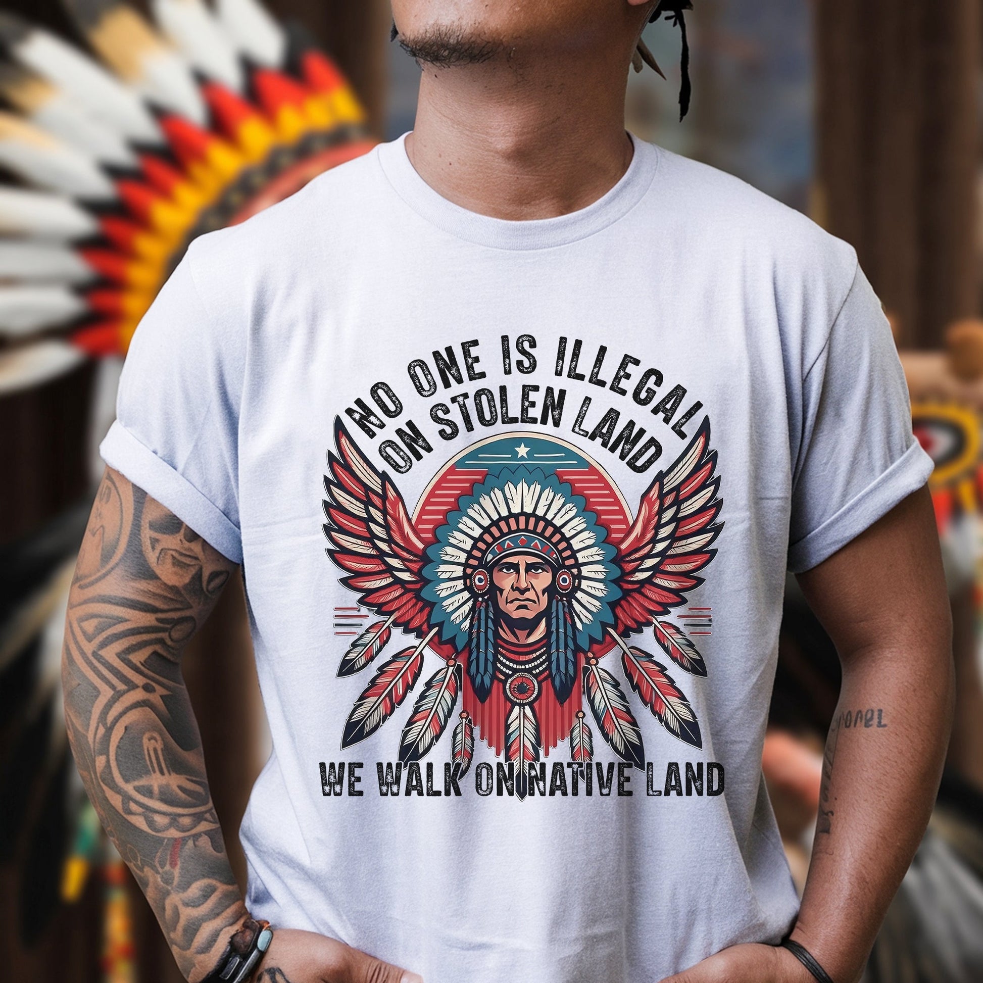No One Is Illegal On Stolen Land Native Chief Headdress Unisex T-Shirt/T-Shirt V-Neck/Hoodie/Sweatshirt