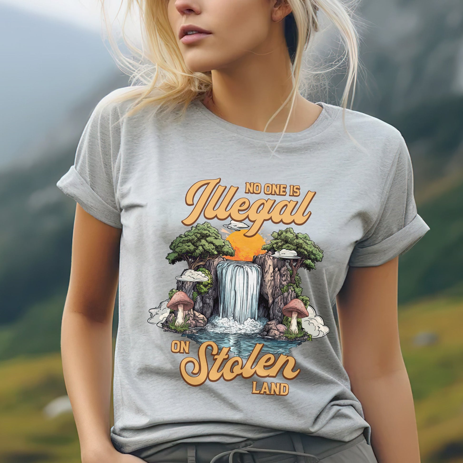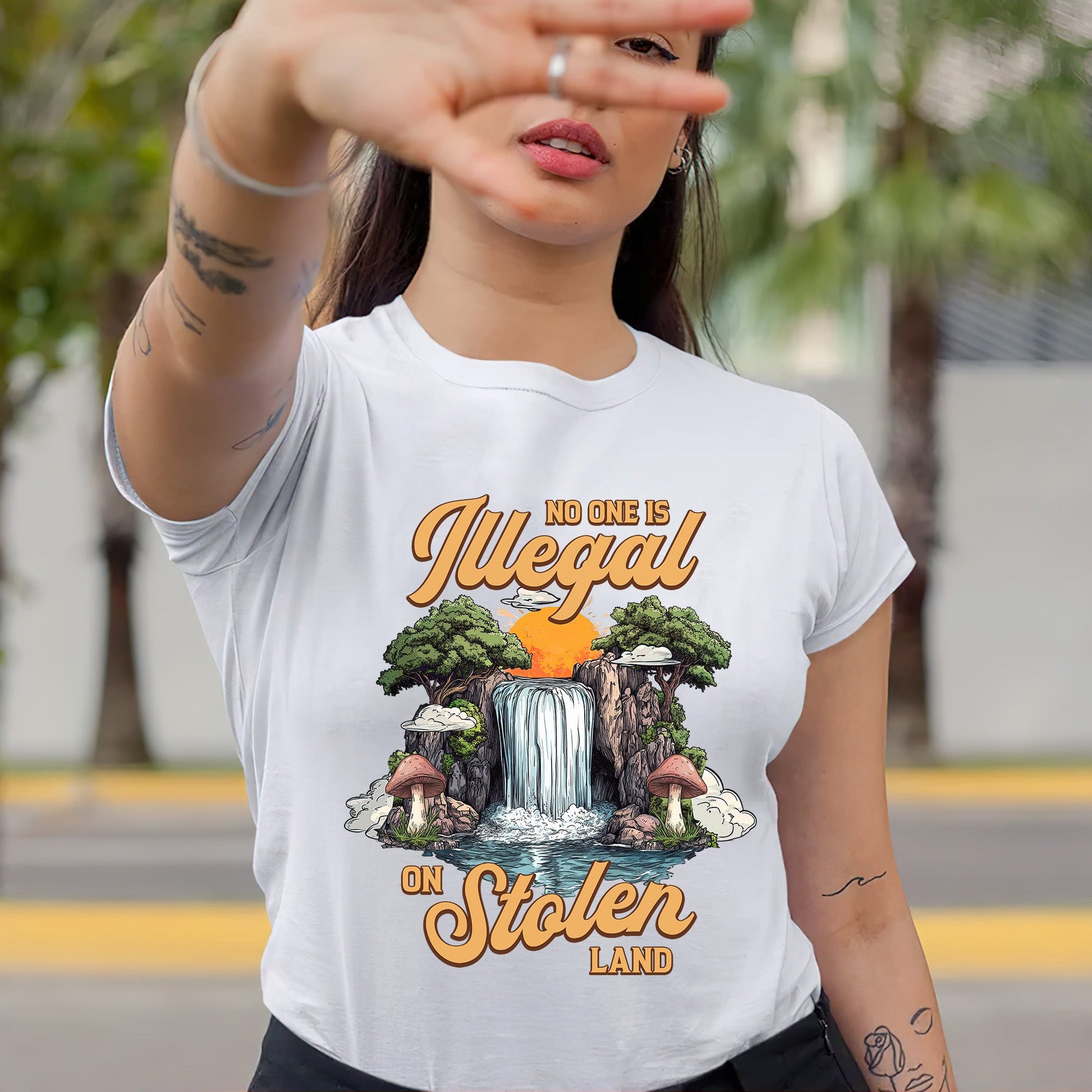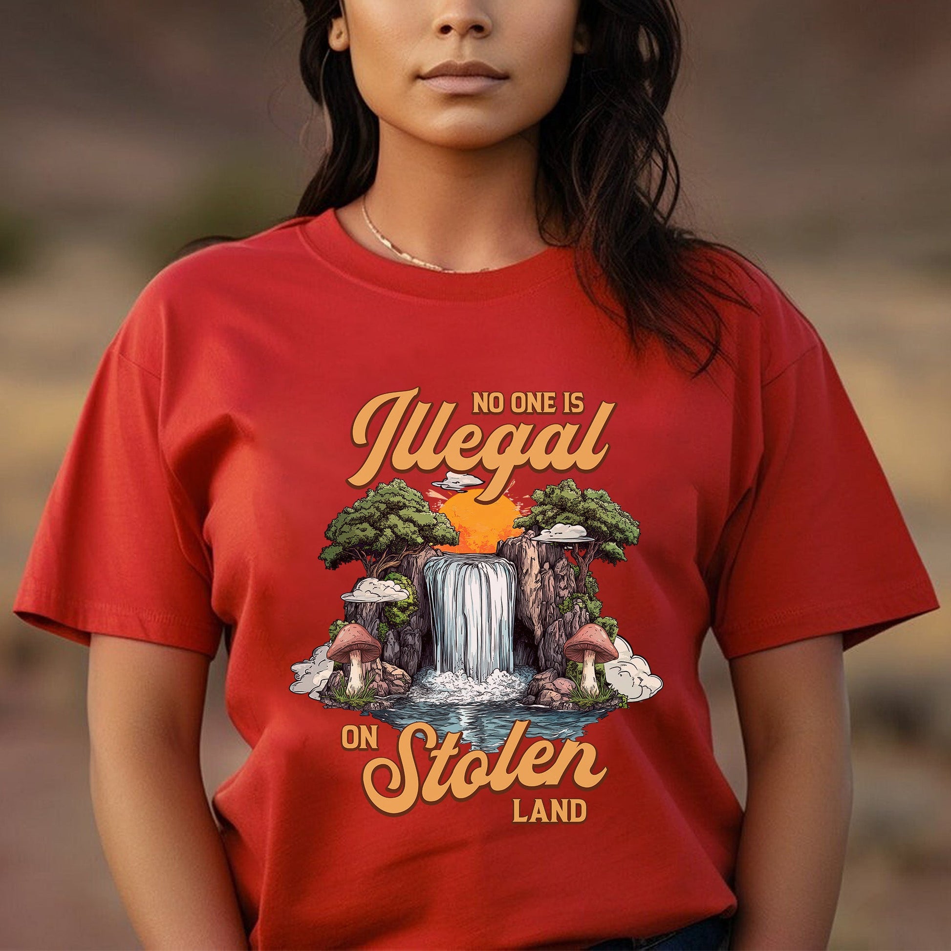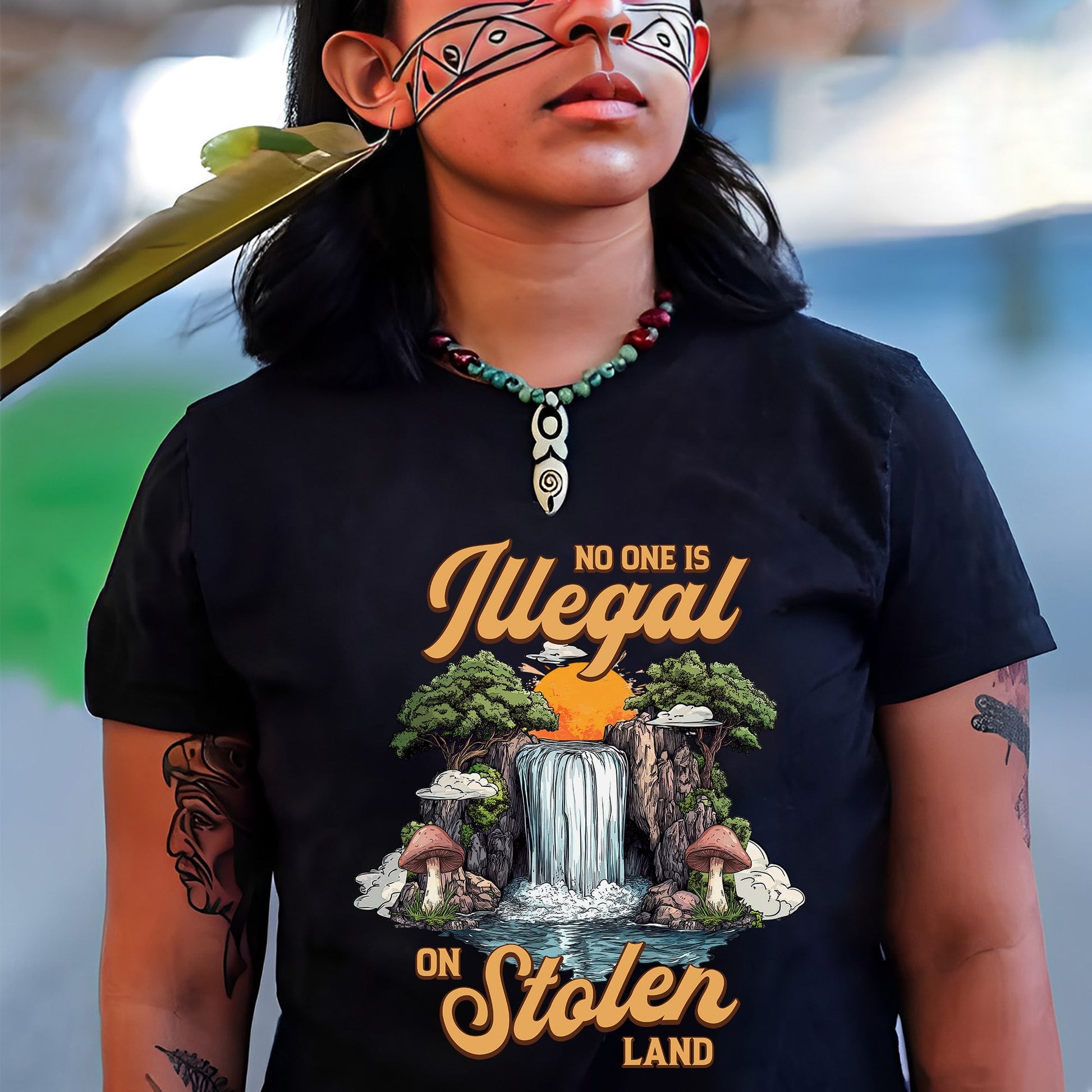 No One Is Illegal On Stolen Land - Waterfall Design Front Print Unisex T-Shirt/T-Shirt V-Neck/Hoodie/Sweatshirt