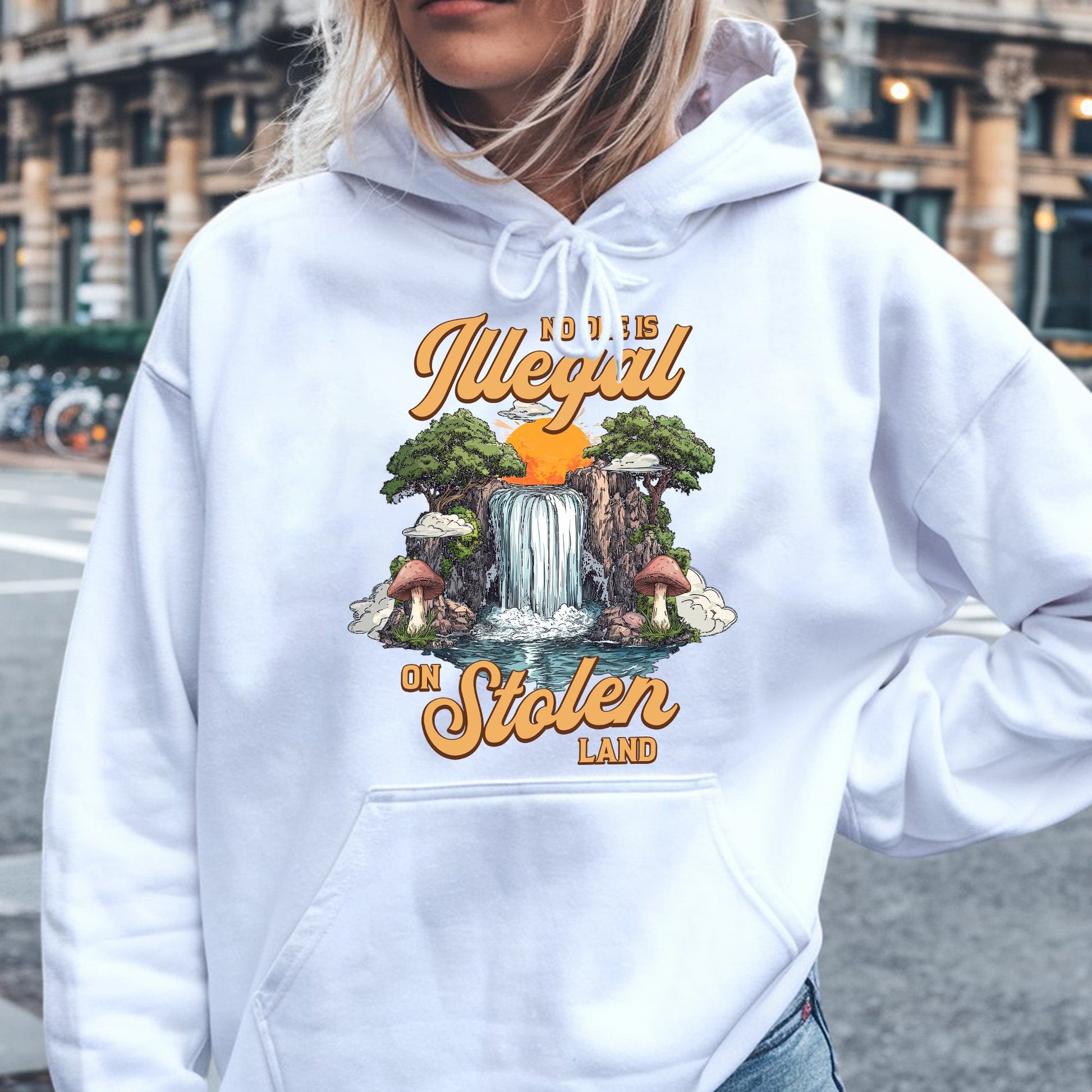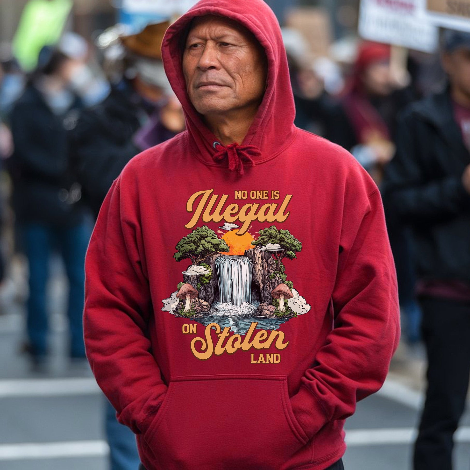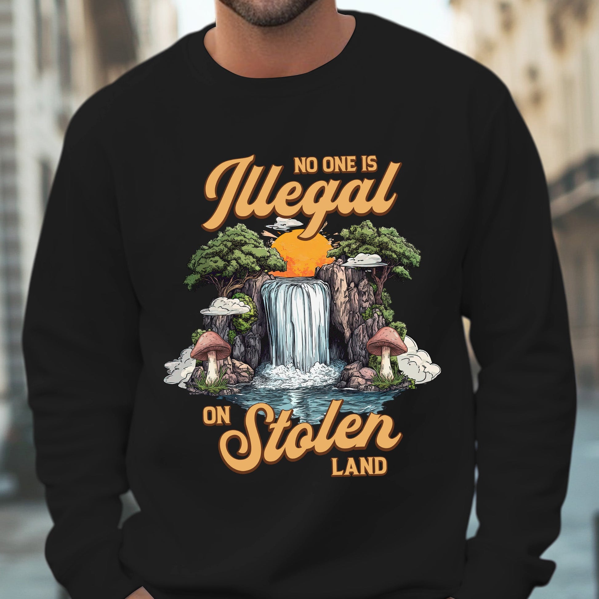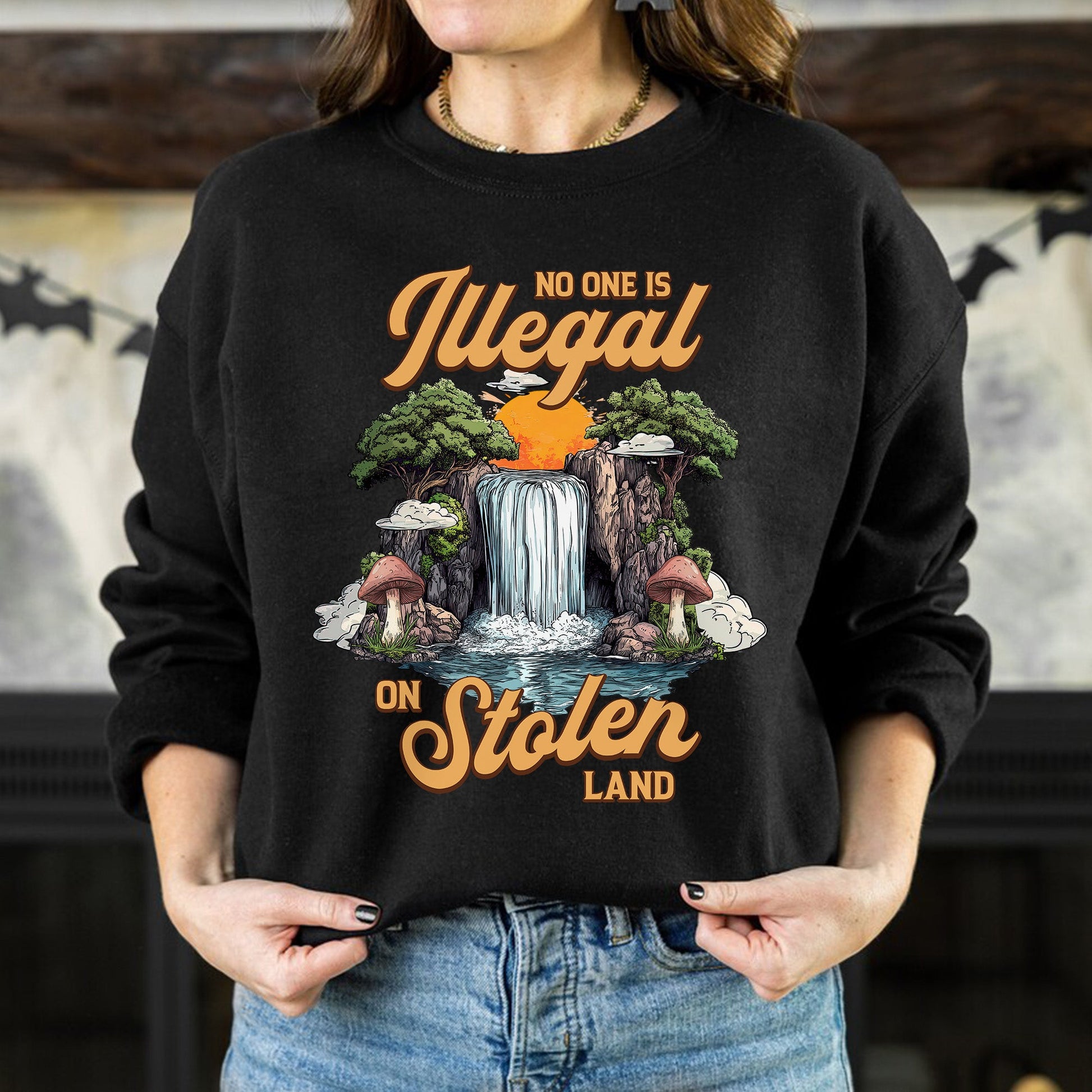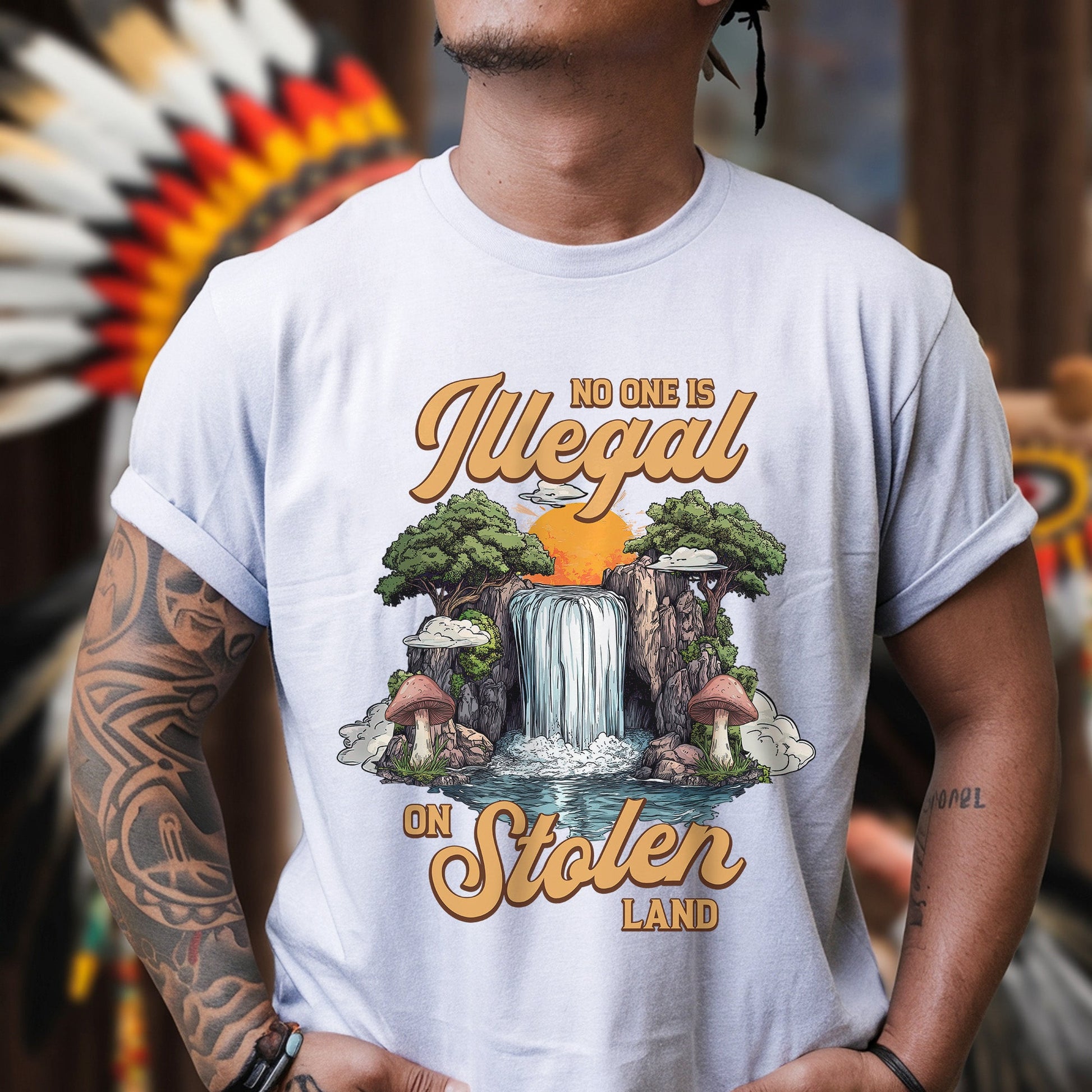 No One Is Illegal On Stolen Land - Waterfall Design Front Print Unisex T-Shirt/T-Shirt V-Neck/Hoodie/Sweatshirt