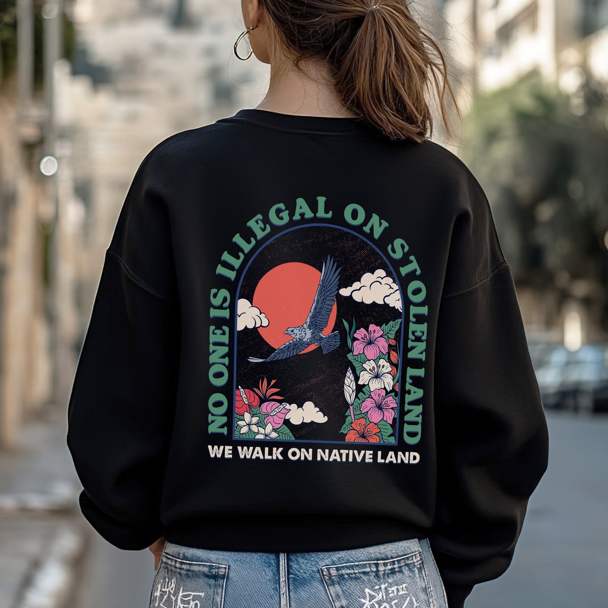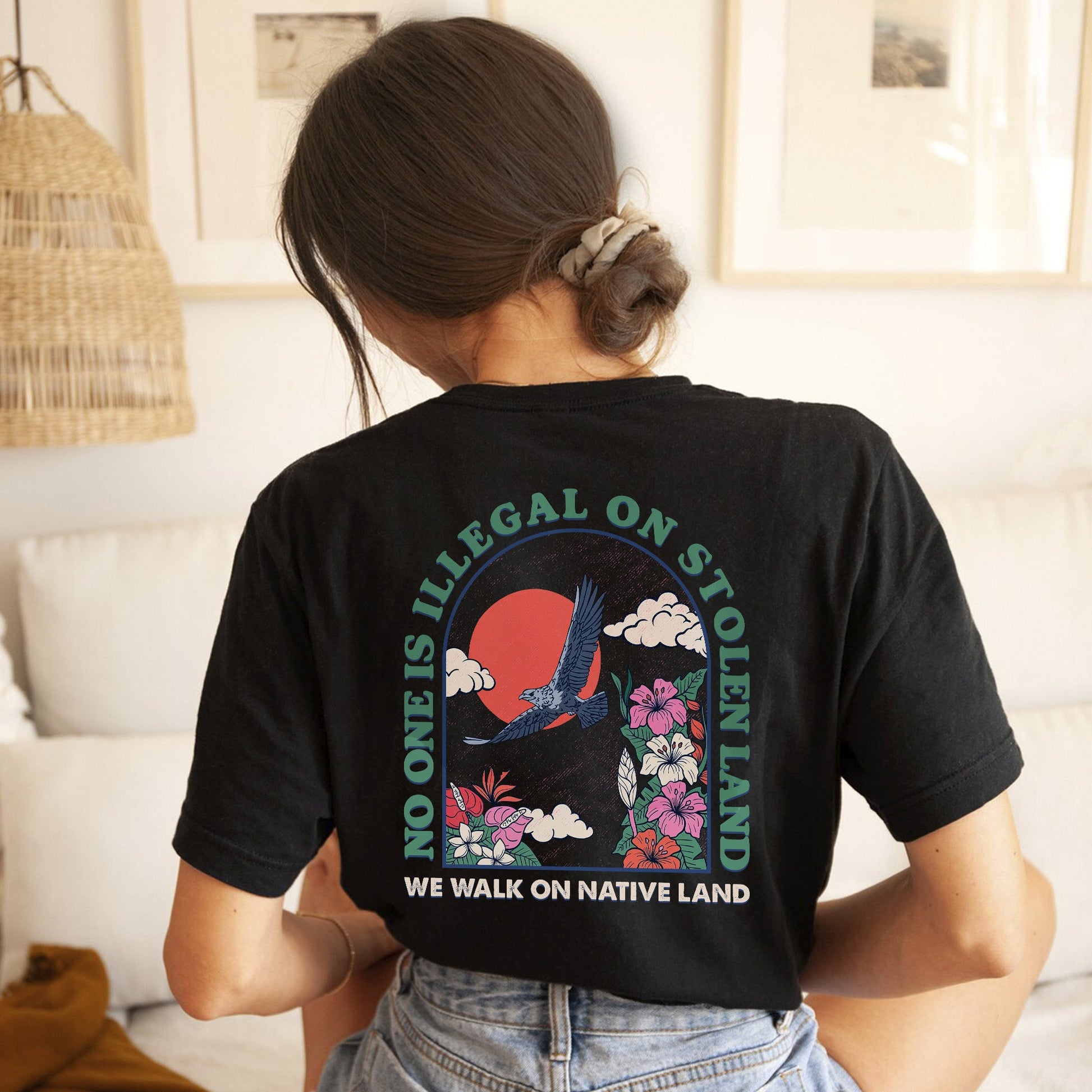 NO ONE IS ILLEGAL ON STOLEN LAND. WE WALK ON NATIVE LAND 19 - Two sides - Unisex T-Shirt/T-Shirt V-Neck/Hoodie/Sweatshirt