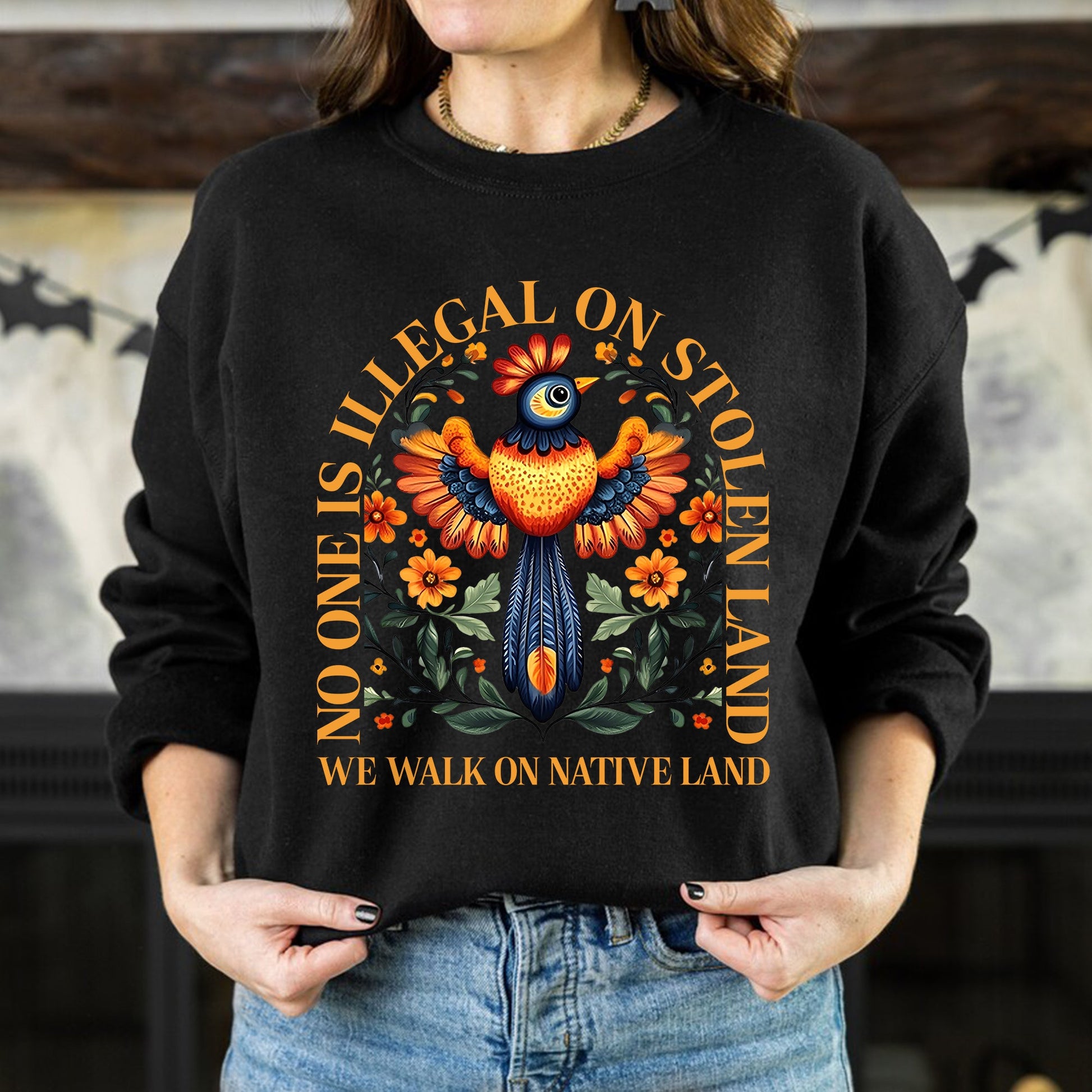 NO ONE IS ILLEGAL ON STOLEN LAND. WE WALK ON NATIVE LAND - One sides