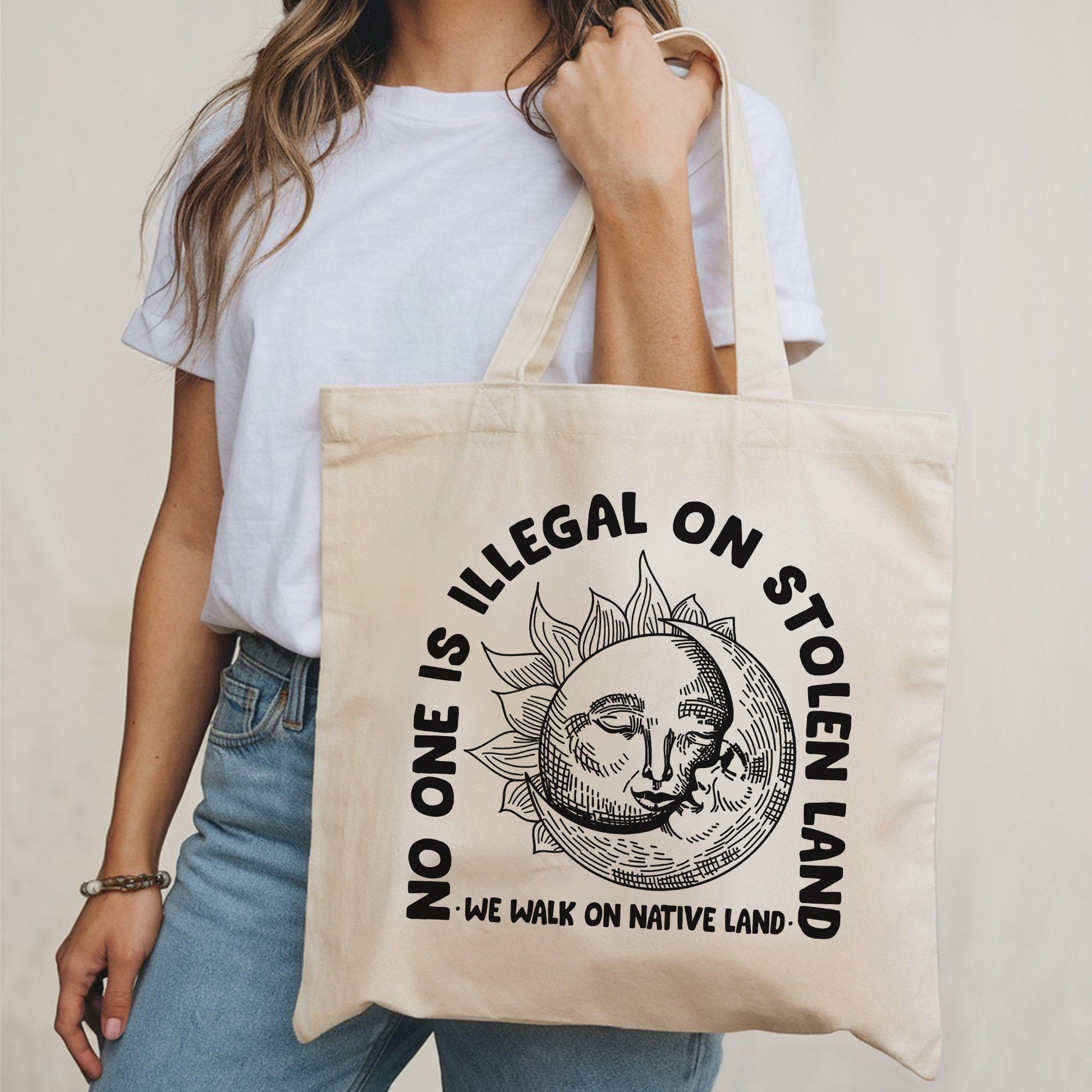 NO ONE IS ILLEGAL ON STOLEN LAND. WE WALK ON NATIVE LAND - Tote Bag S18