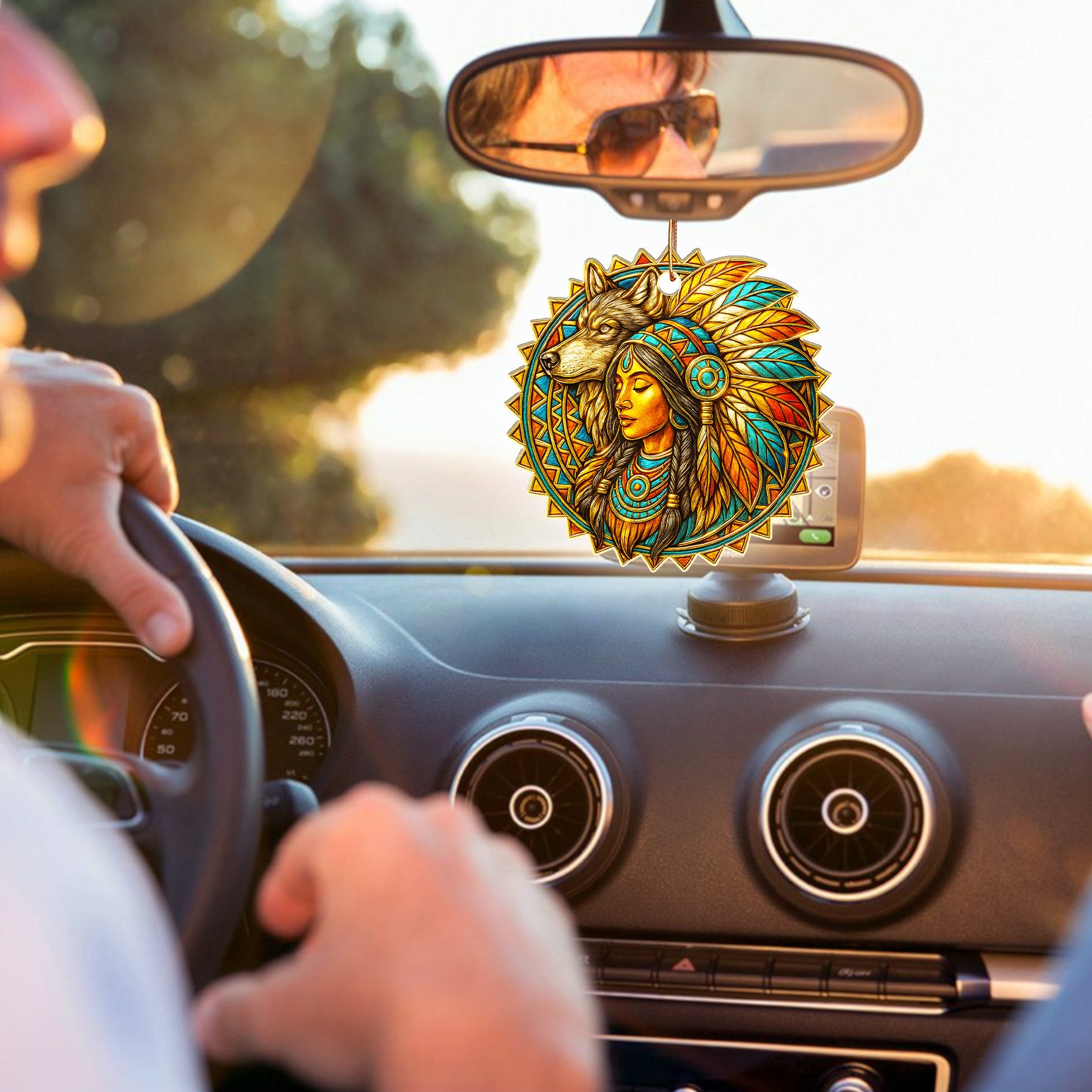 Spirit of the Wolf β Native Woman Ornament Acrylic Symbolizing Strength, Wisdom, and the Power of Connection