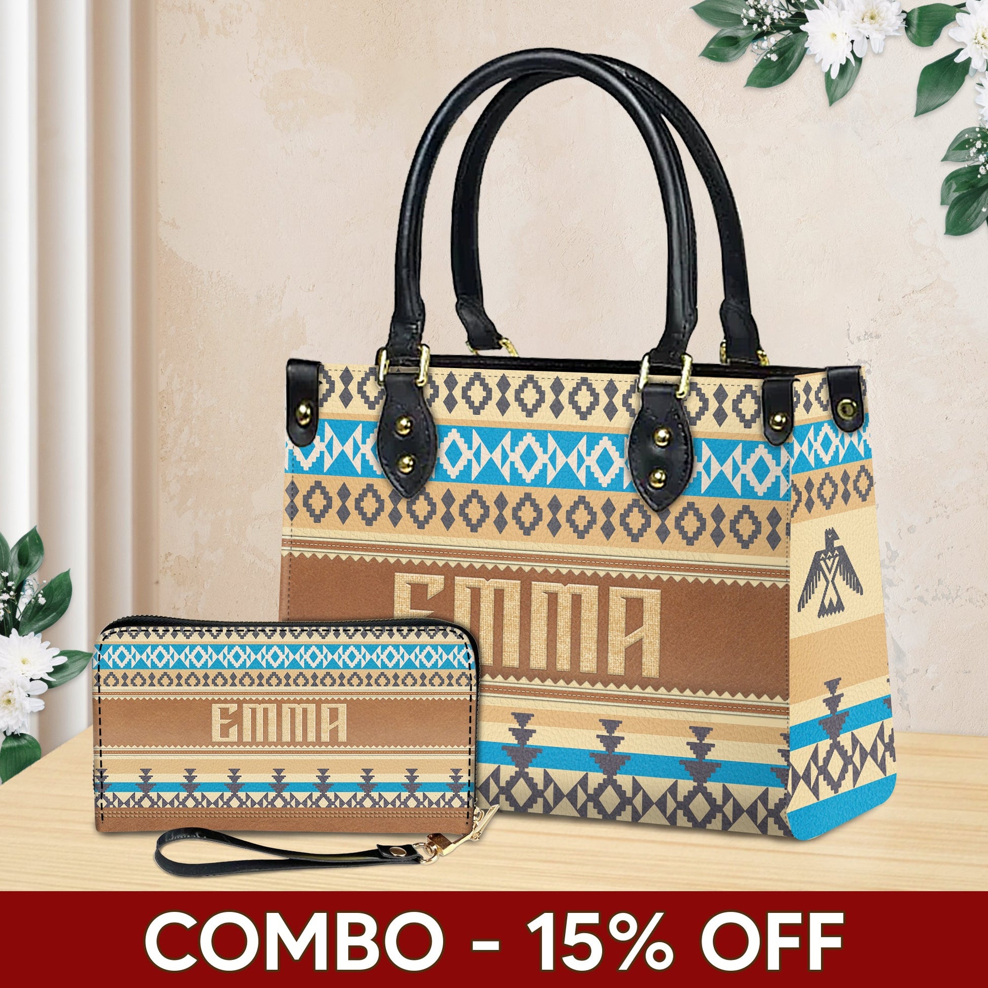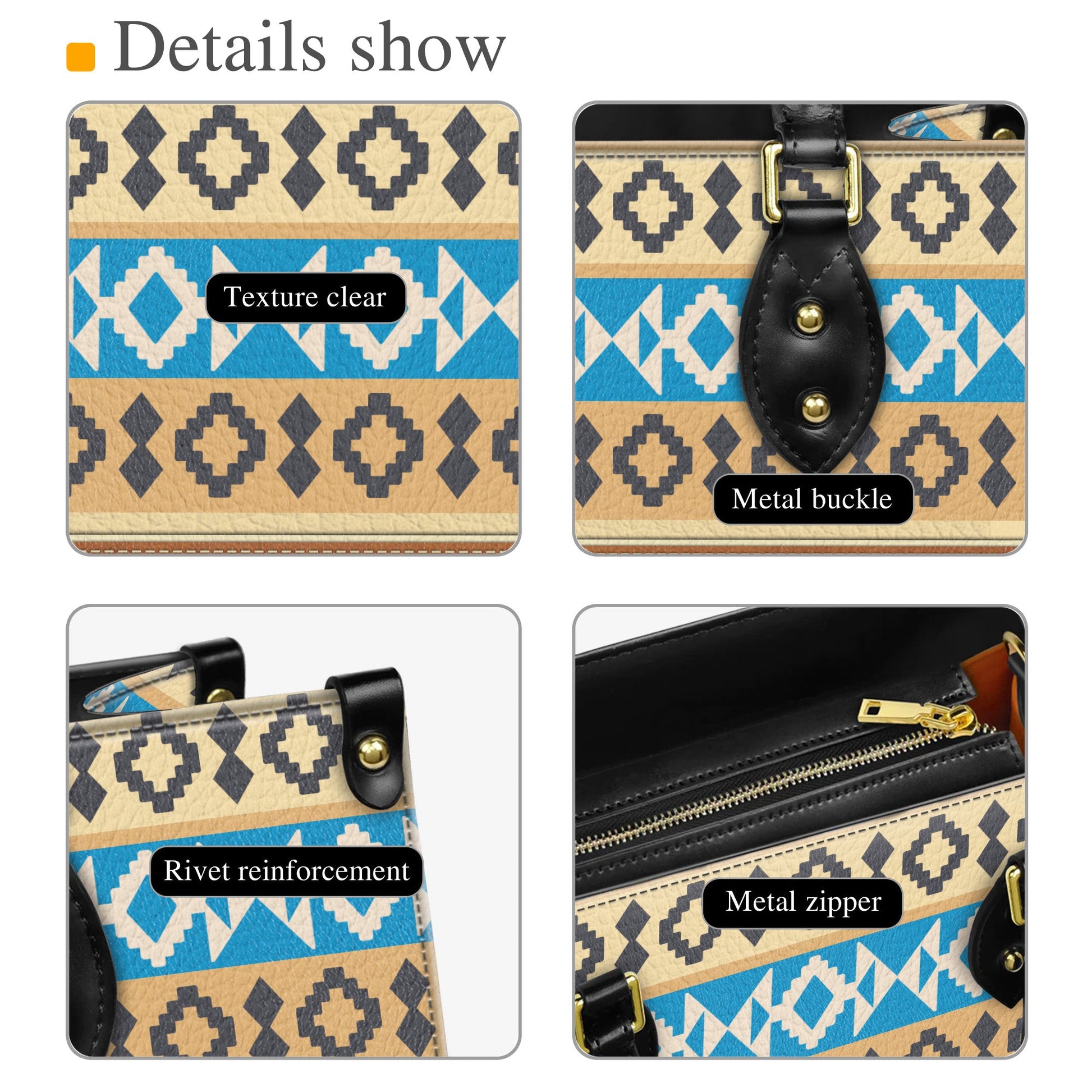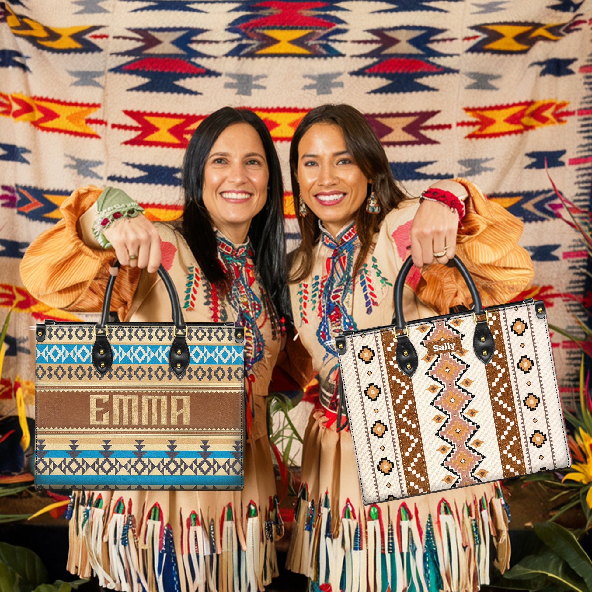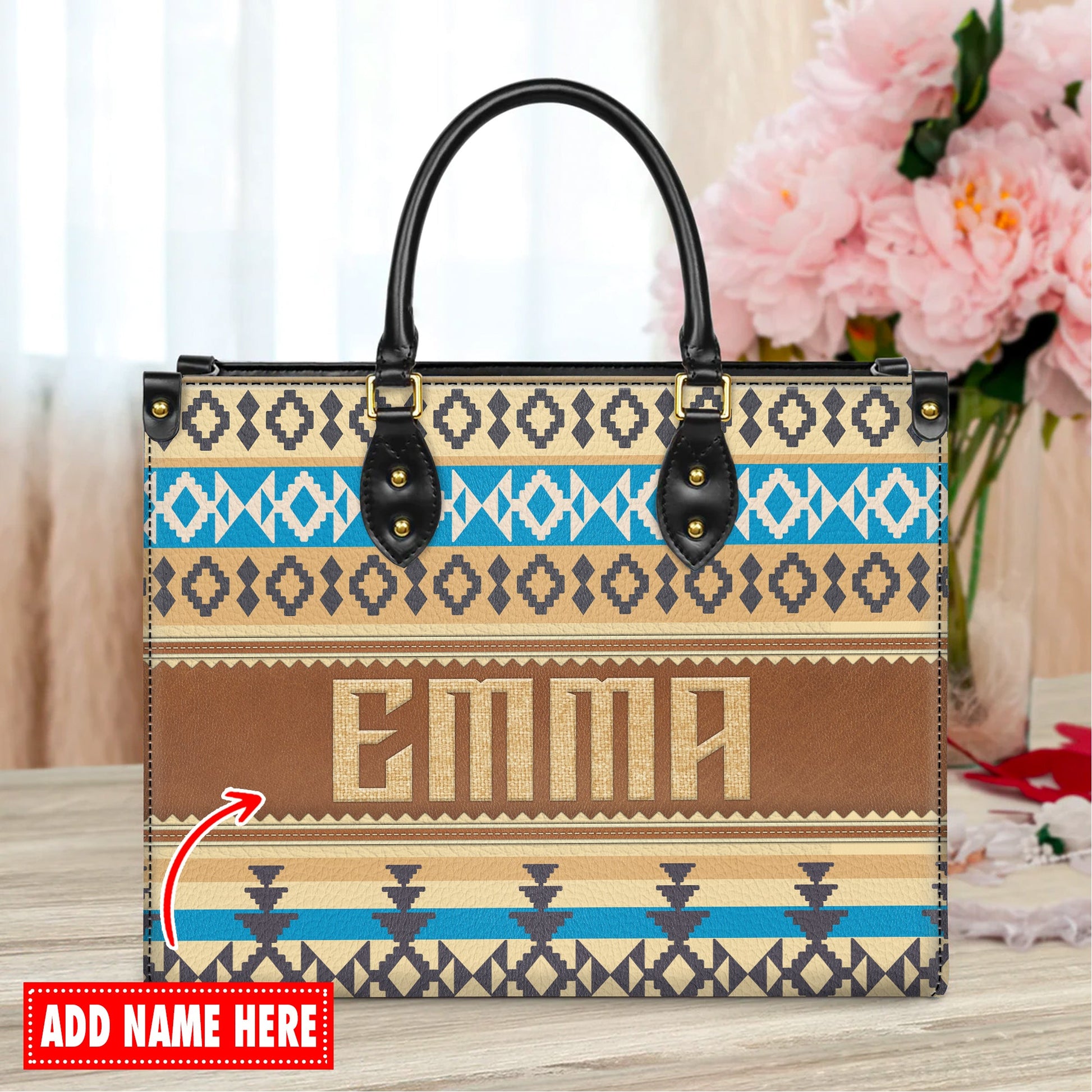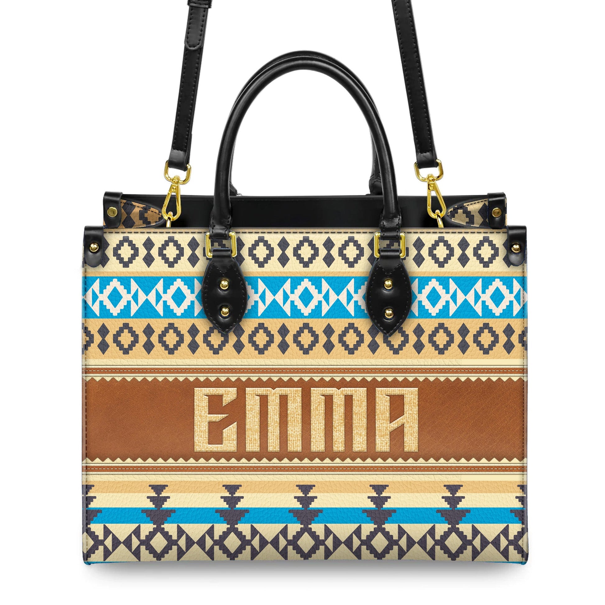 Personalized Leather Handbag for Women - Design Patten Boho Aztec Style LB03