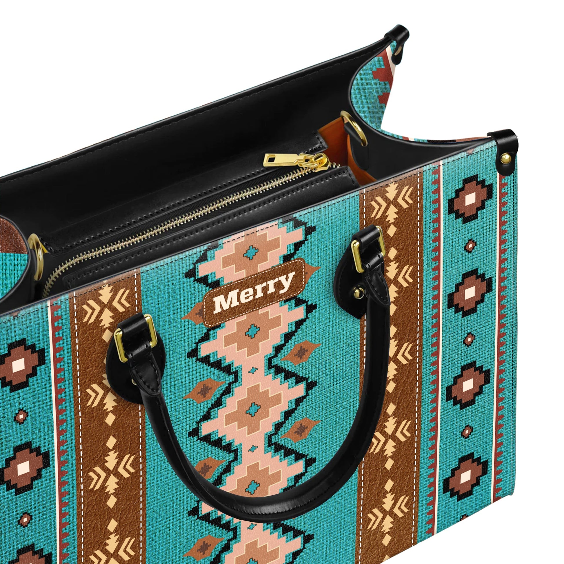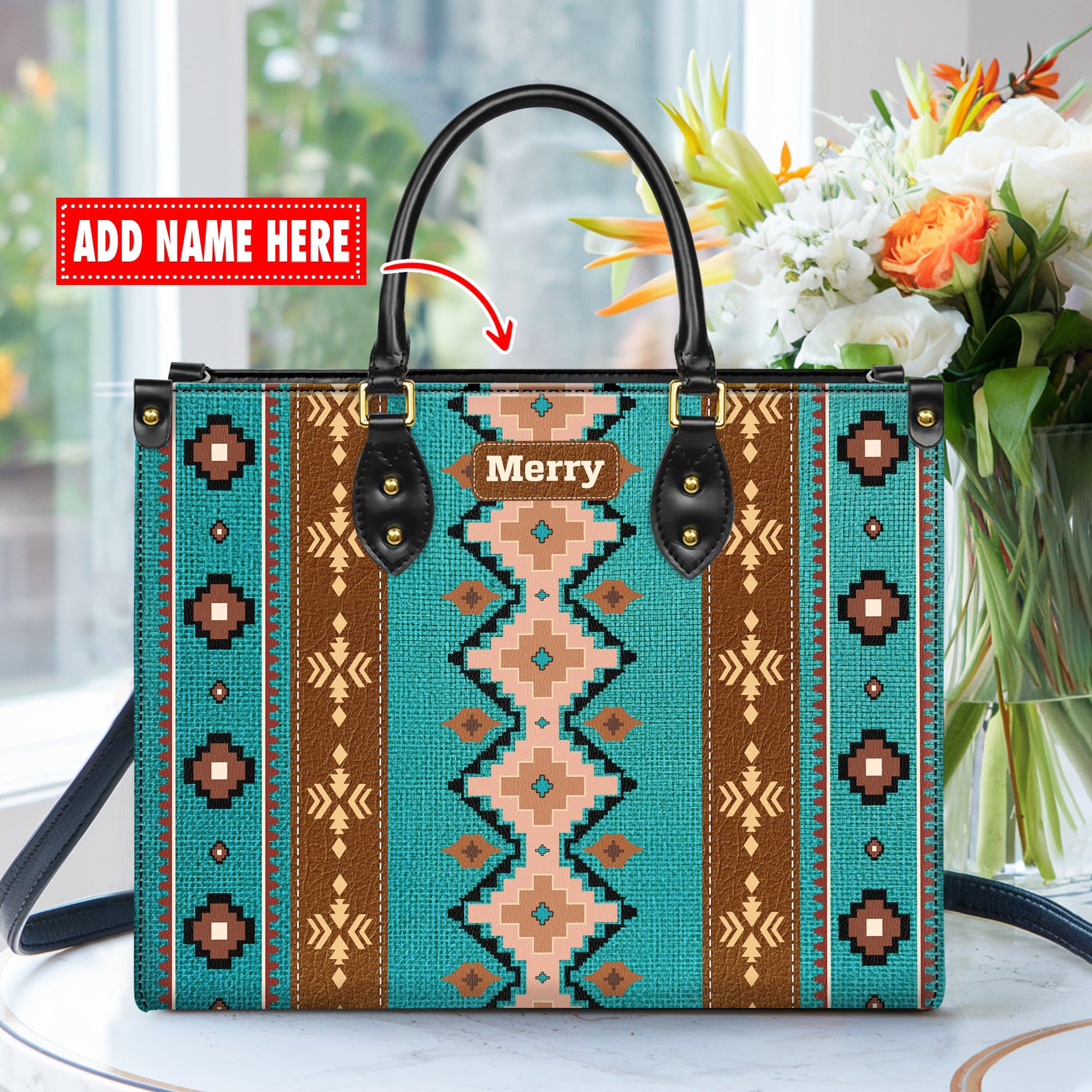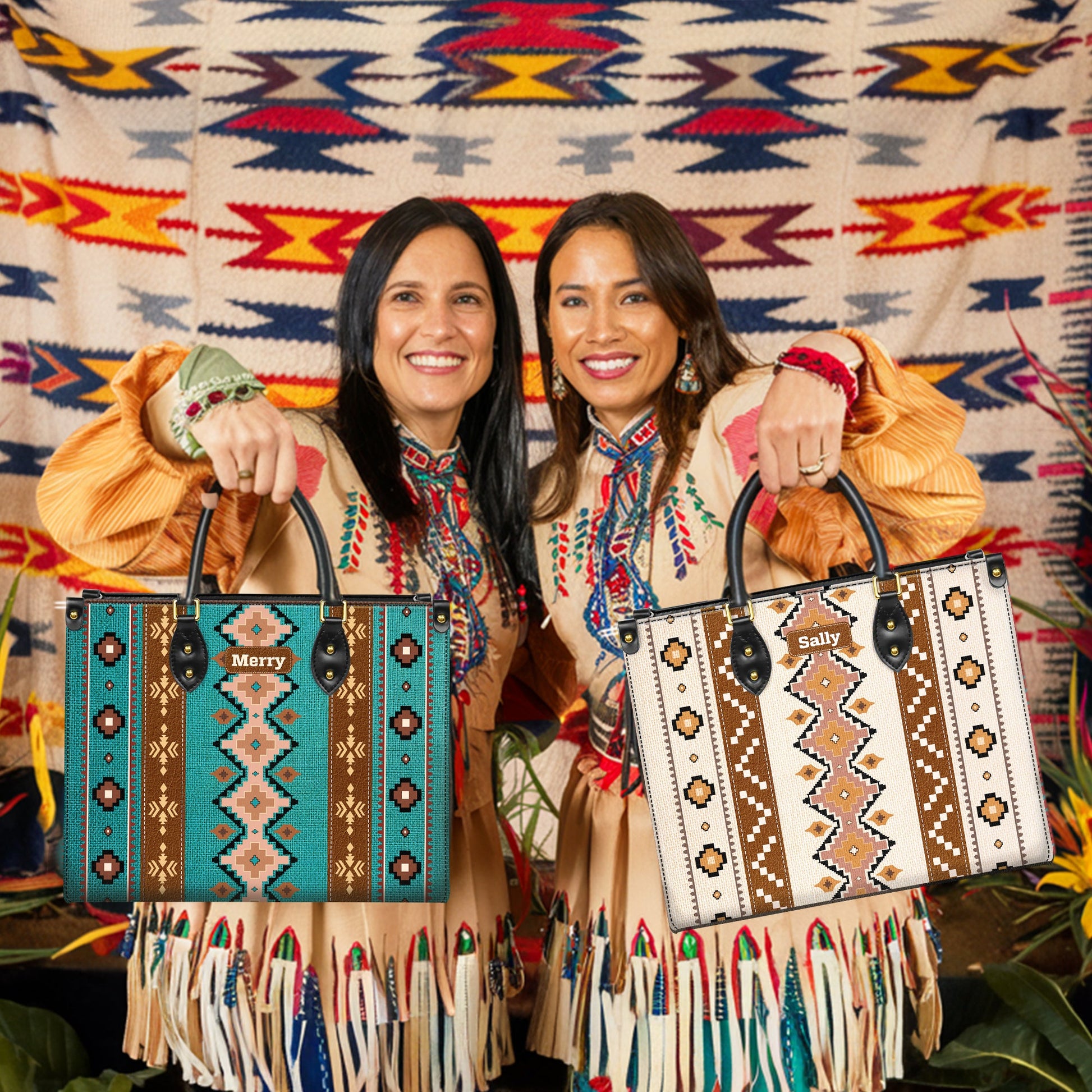 Personalized Leather Handbag for Women - Design Patten Boho Aztec Style LB07
